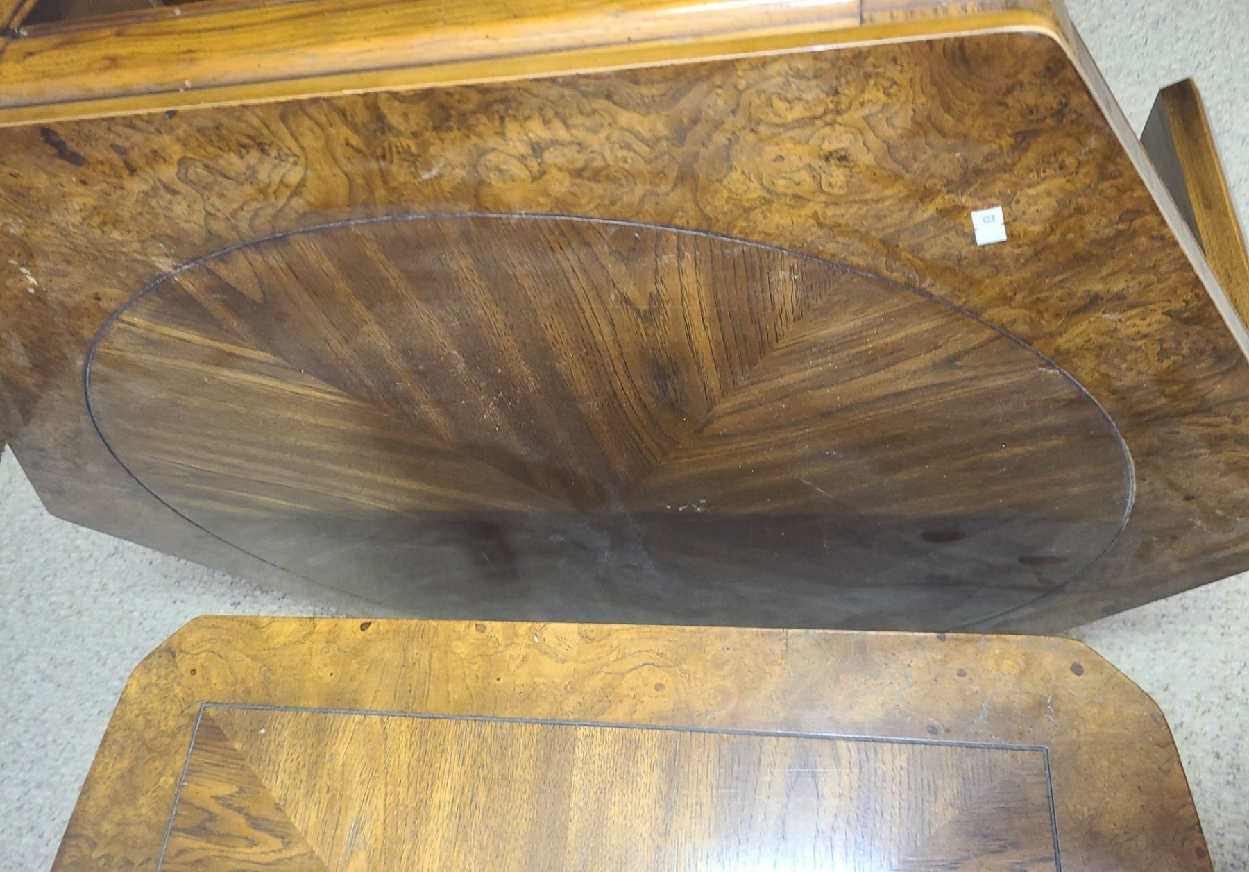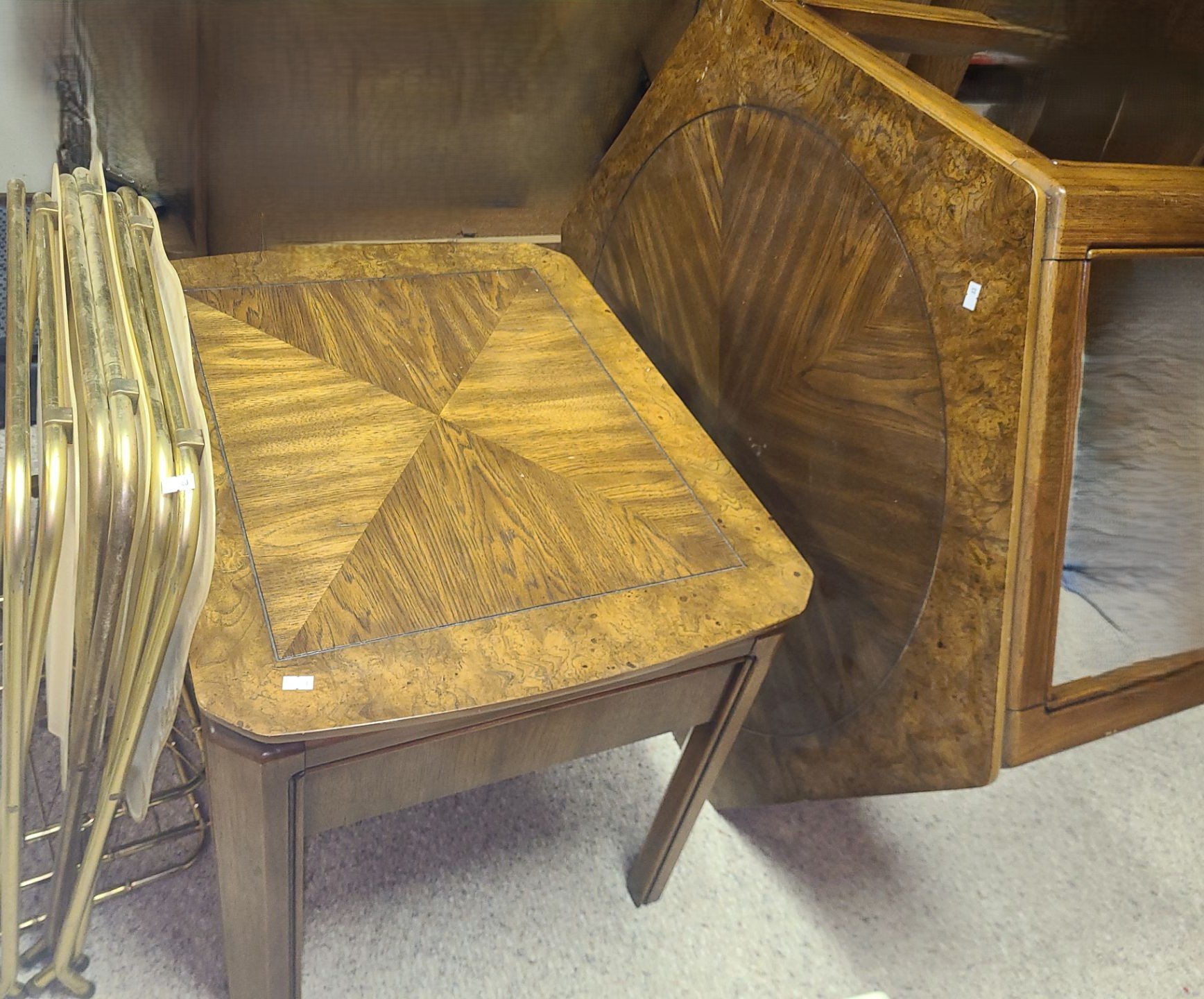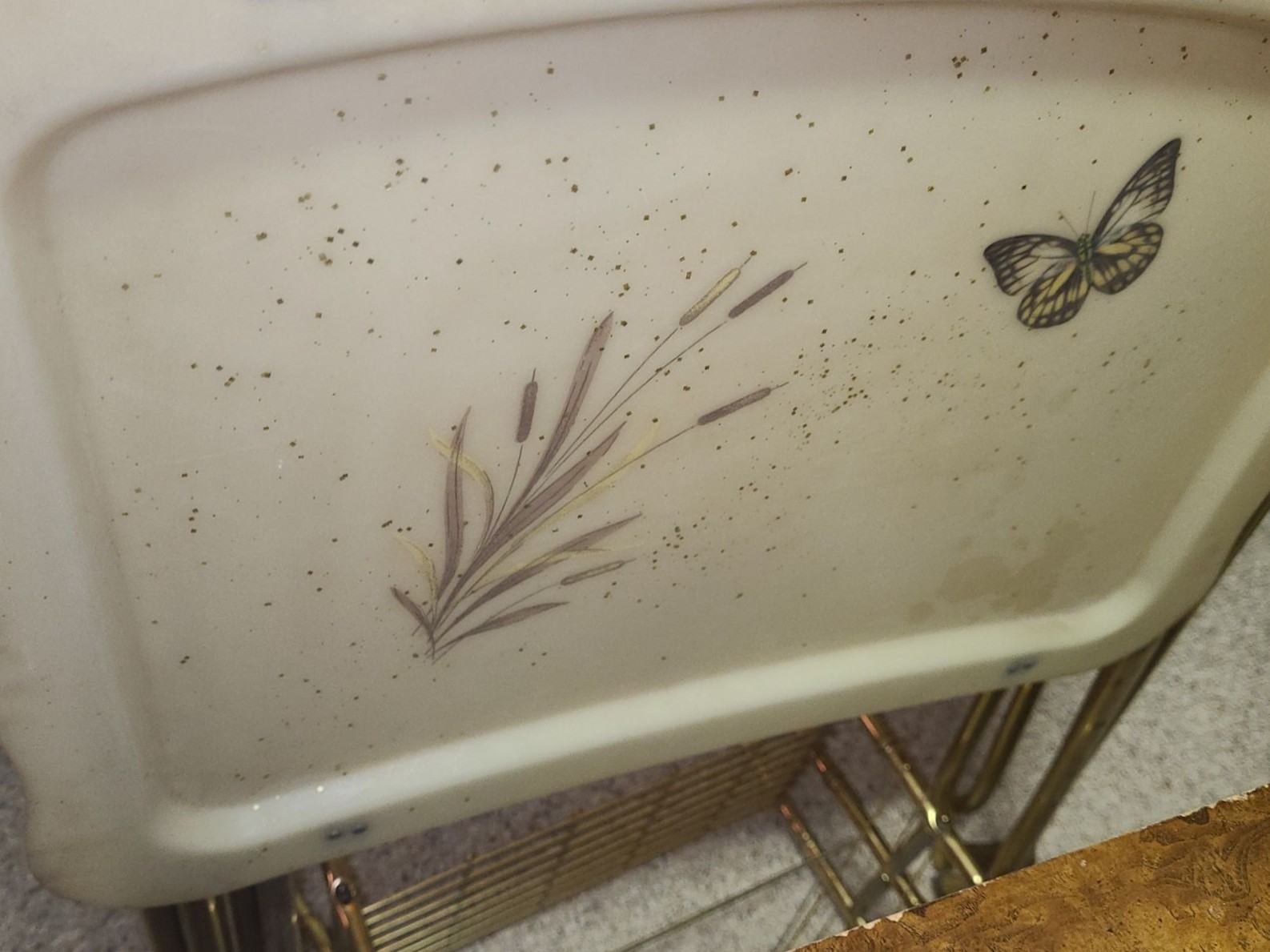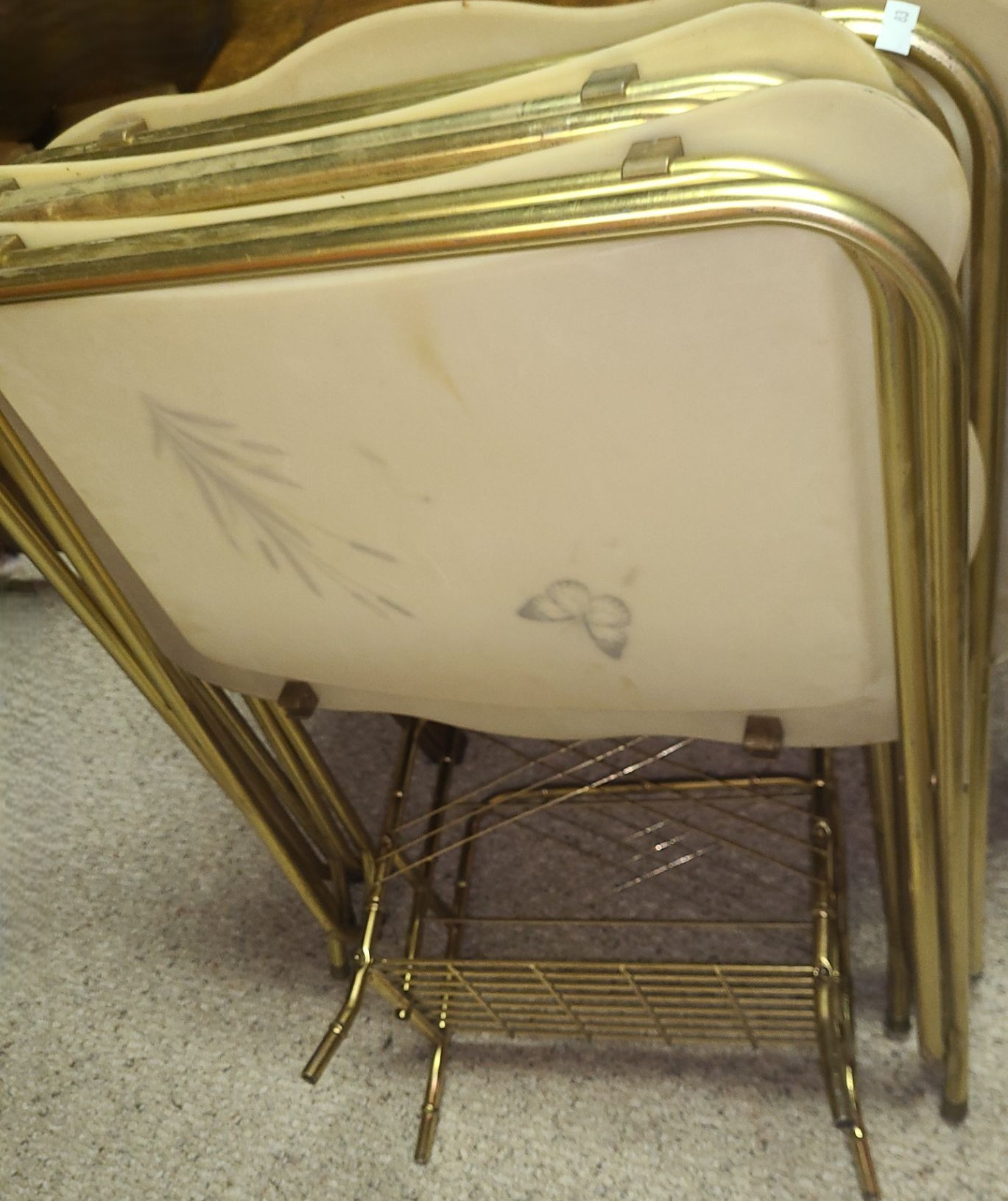Tables: Side: 22 W, 27 D, 22 T , Coffee 36" Diameter Top, 15.5 T, Set of Vintage TV Trays