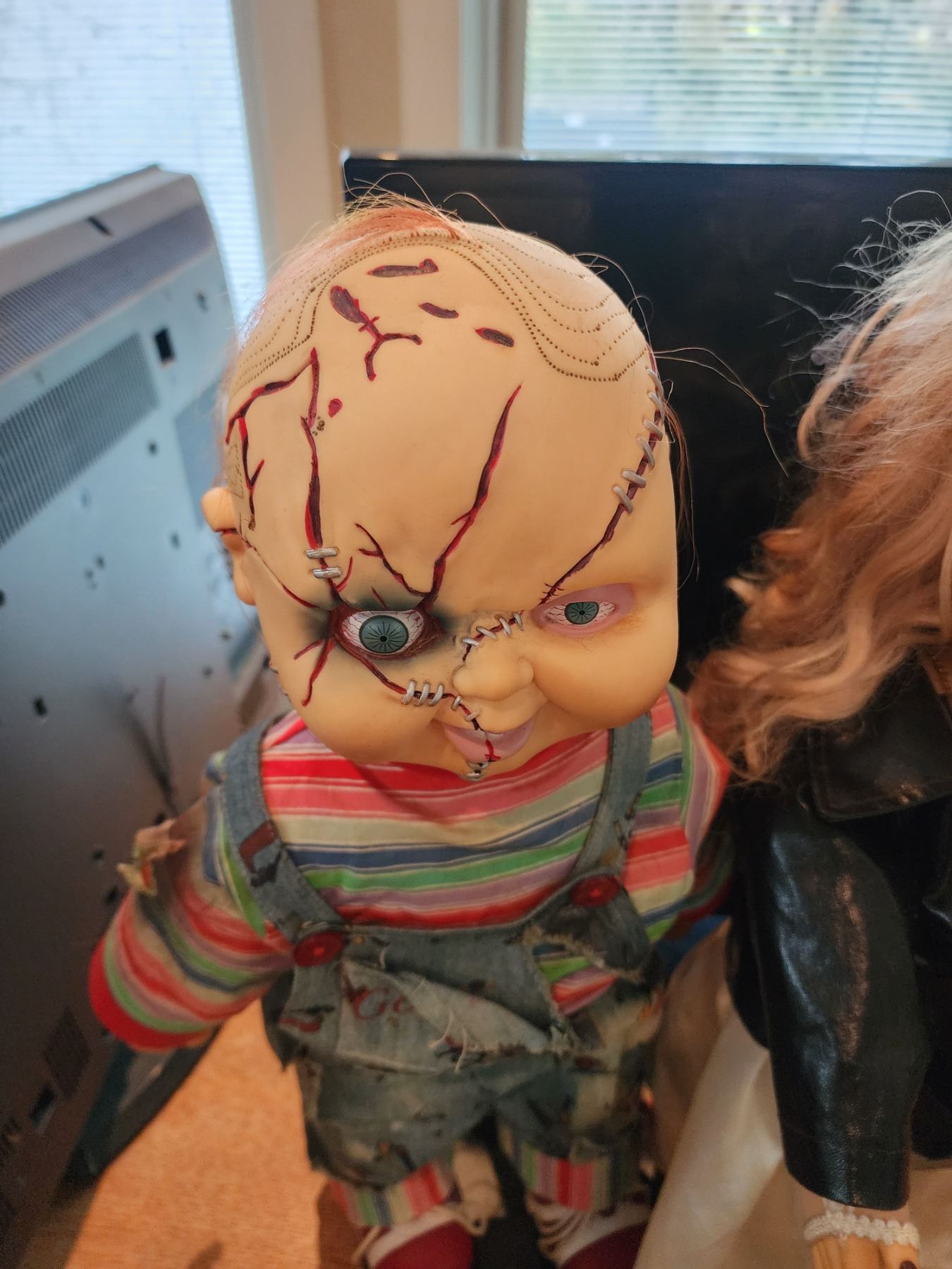 Talking Chuckie & Tiffany Dolls on Stands (2  tall)