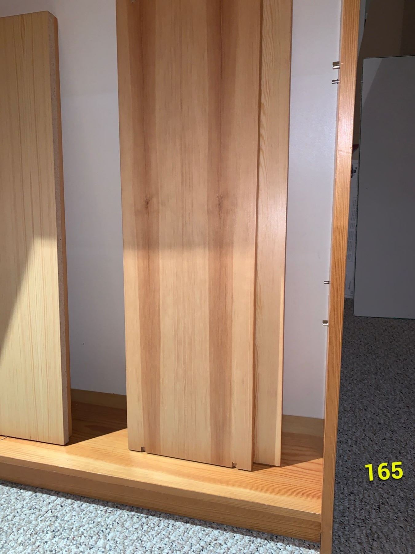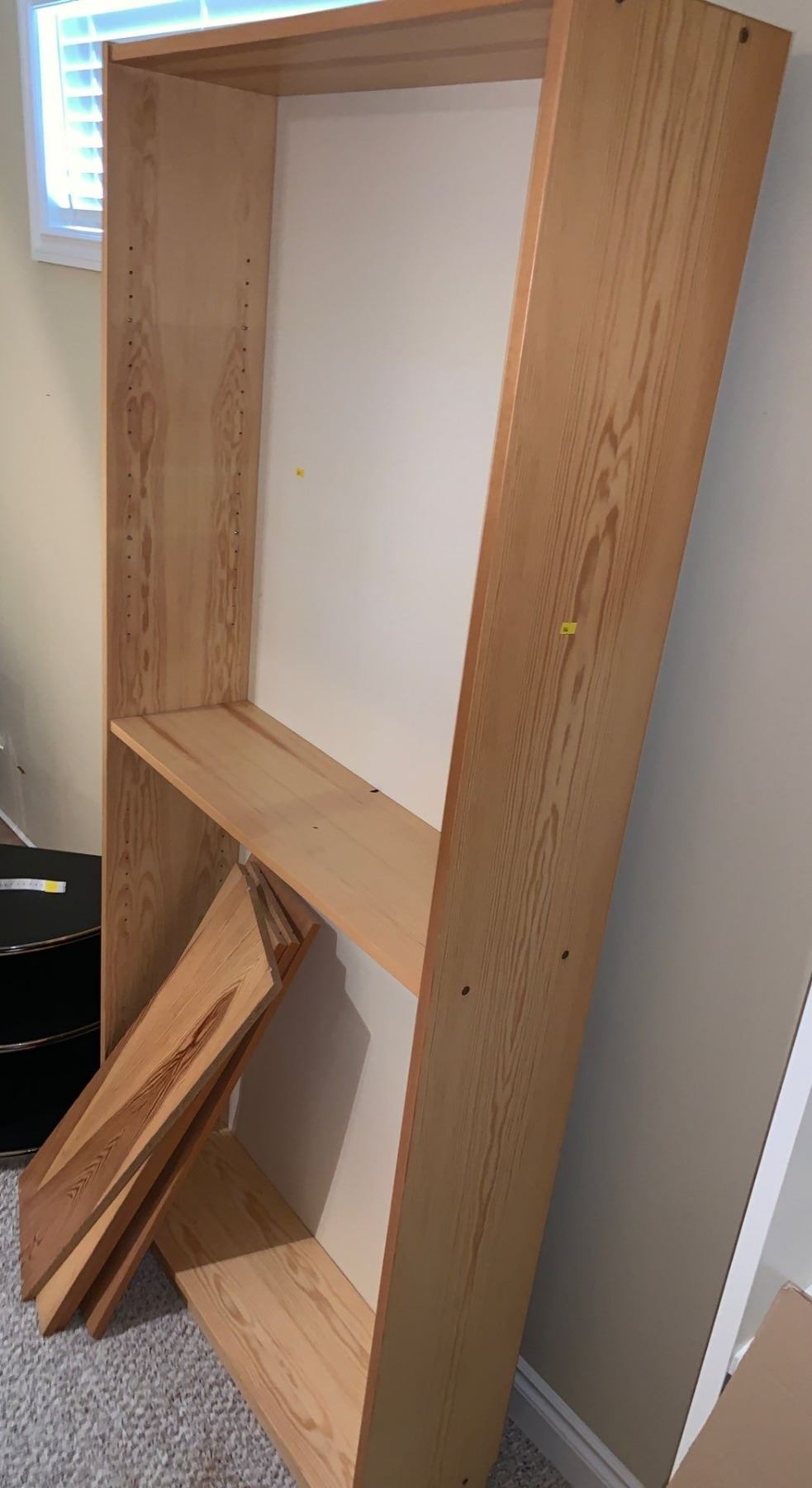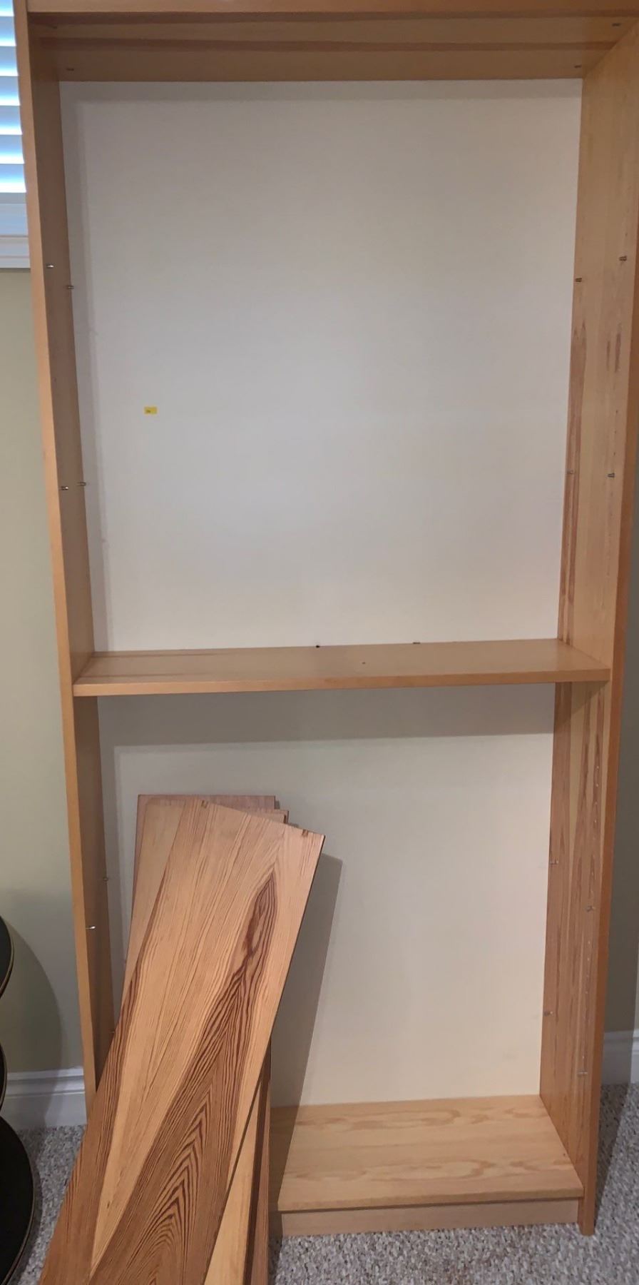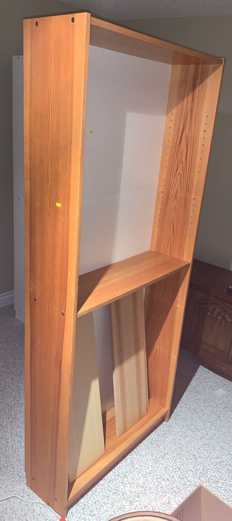 Tall Wooden shelving unit; has 4 wooden slabs; 36W; 11D; 80T