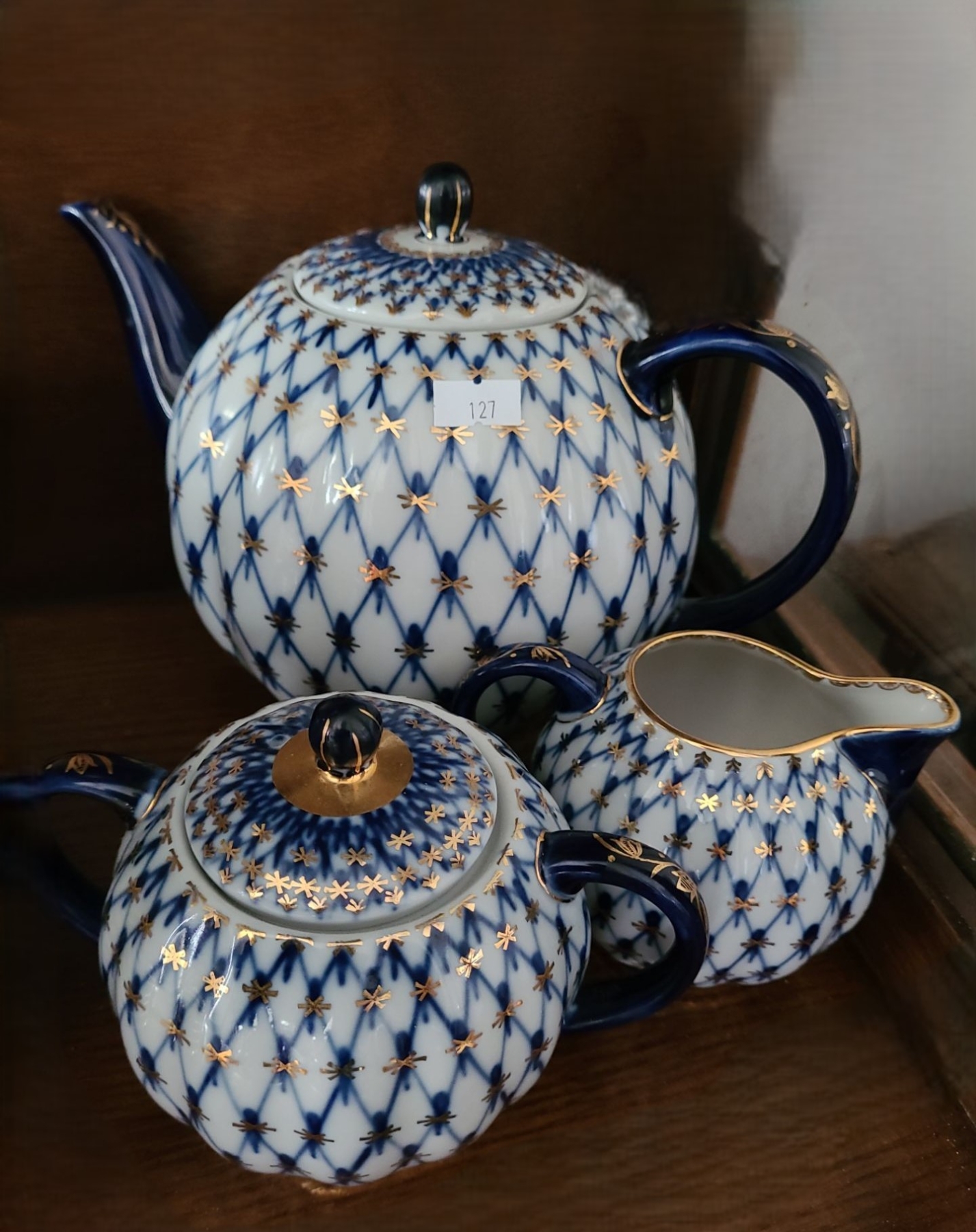 Teapot 7 T Made in Russia w/ Cream and Sugar Servers