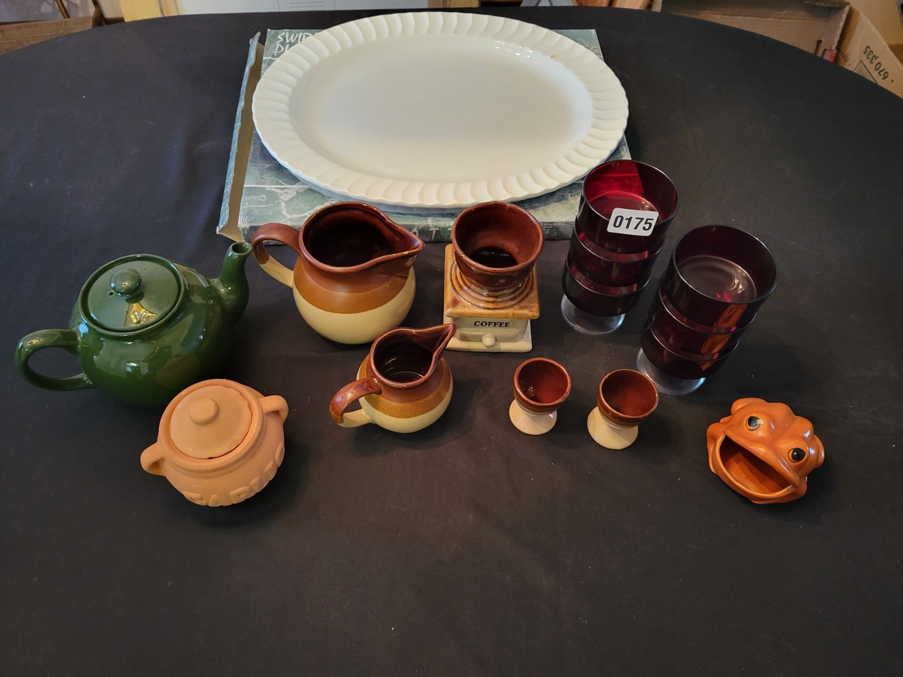 Teapot - Platter - Egg Cups - Red Cups - Frog Sponge Holder