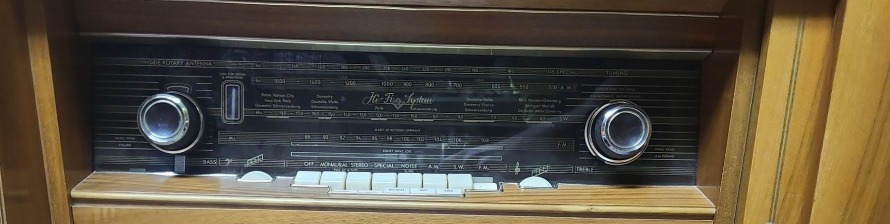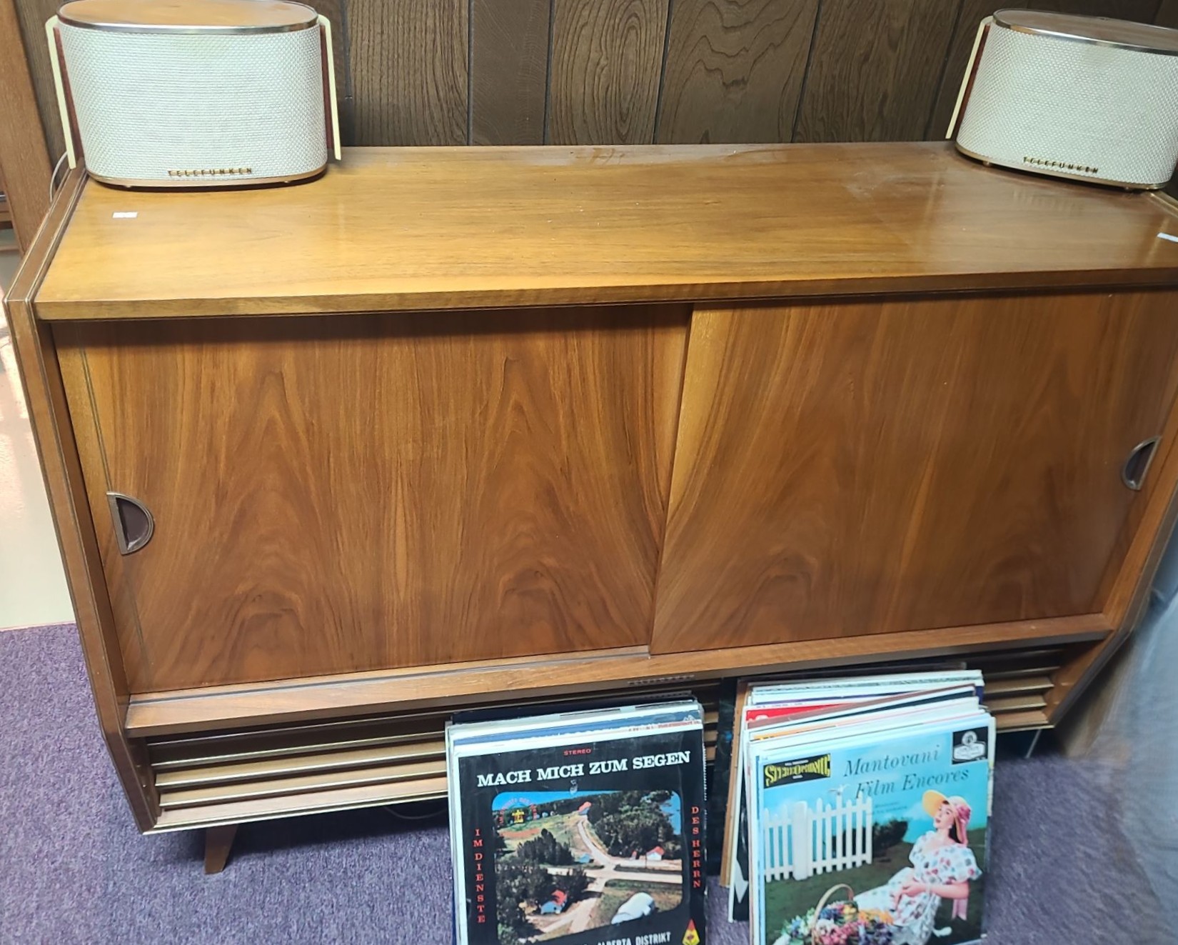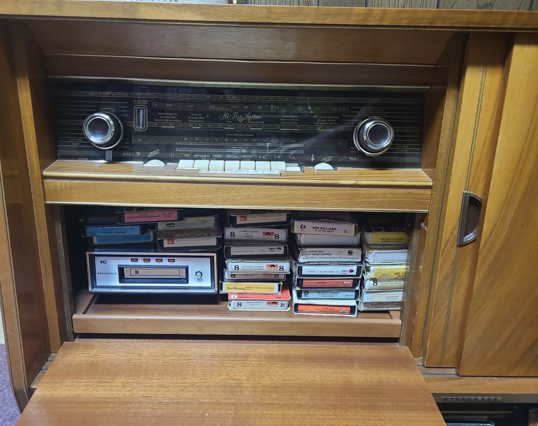 Telefunken Radio/ Record Player Cabinet 49.5 W, 17.5 D, 34 T w/ Speakers, Panasonic 8 Track Player