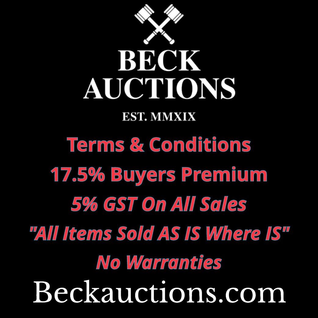 Please contact the house with any questions at (825)777-6666. Beck Auctions Inc.