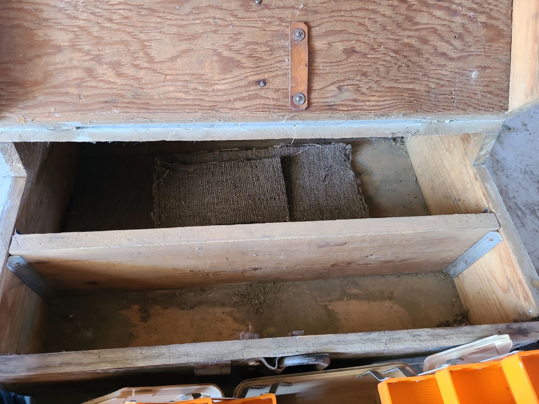 Terra Men's sz 8 Steel Toed Boots. Antique Wood Storage Box 24w, 16 l , 9h, Shoe Rack & more
