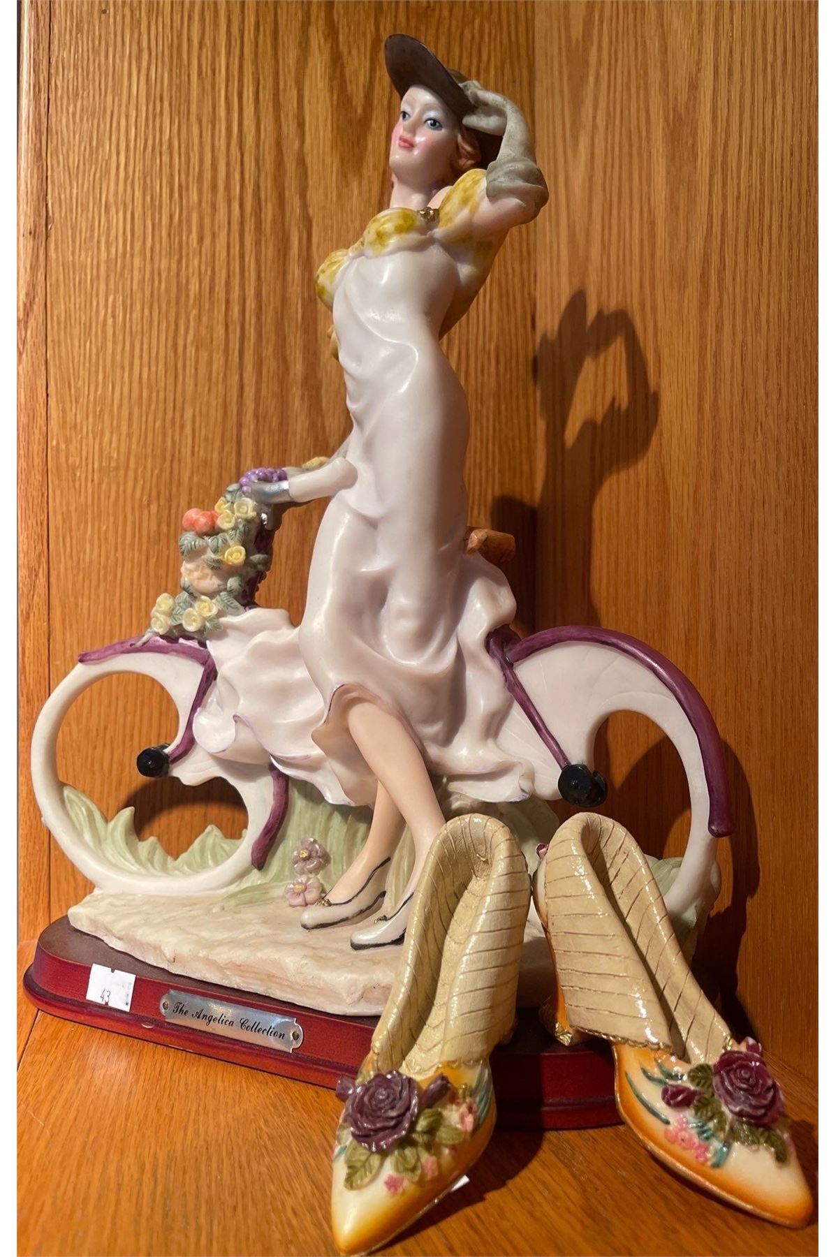 The Angelica Collection  Lady Walking Her Bicycle 18T w/ Ceramic High Heeled Shoes