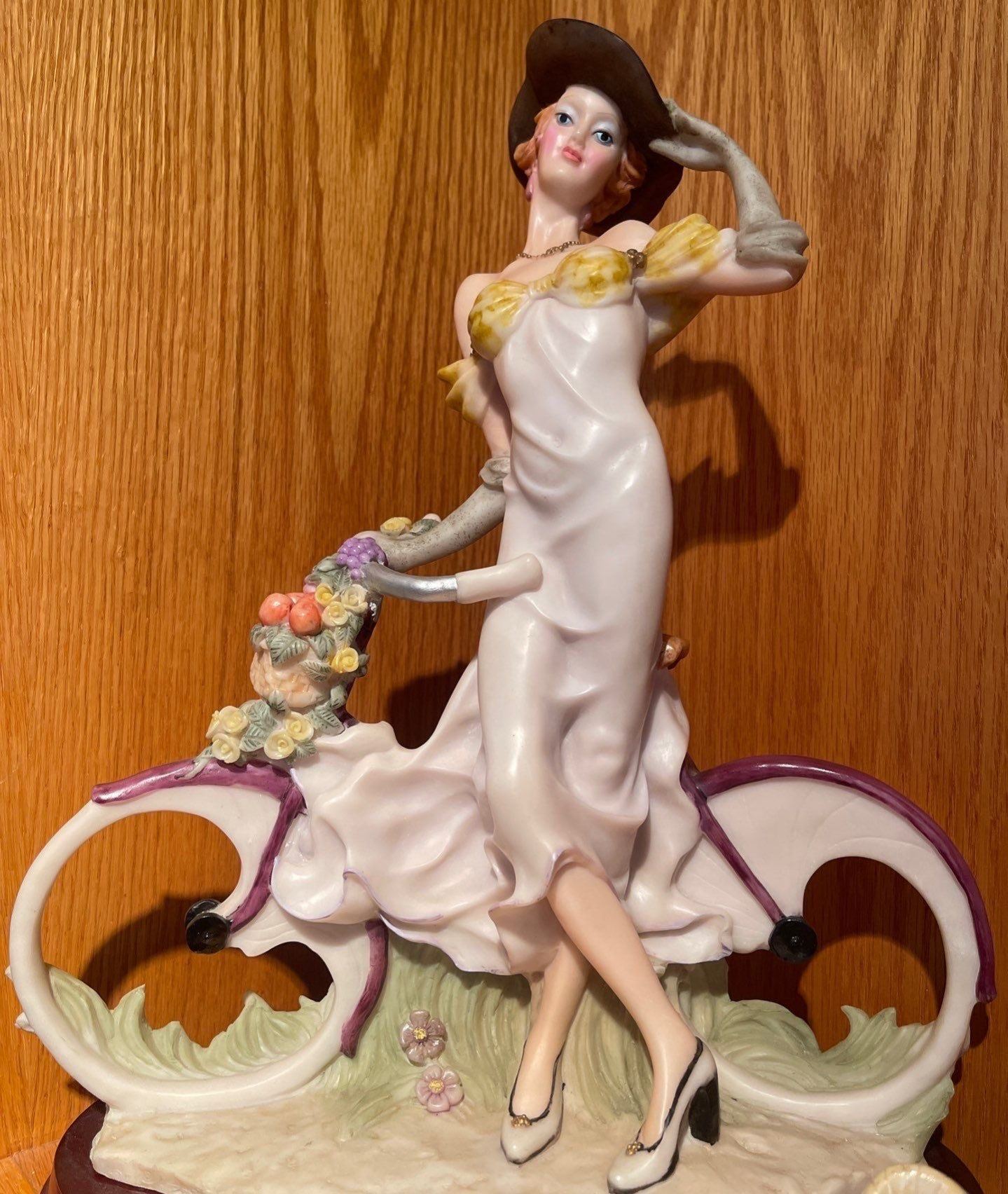 "The Angelica Collection" Lady Walking Her Bicycle 18T w/ Ceramic High Heeled Shoes