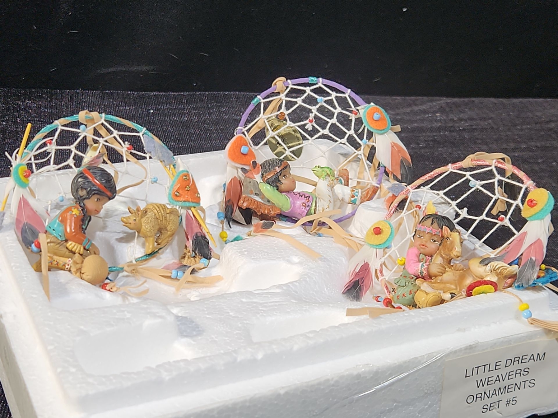 A charming selection from The Ashton-Drake Galleries’ “Little Dream Weavers” ornament series, featuring finely crafted collectible figures known for their delicate detail and warm, nostalgic design. These ornaments are beautifully finished with the quality Ashton-Drake is recognized for, making them appealing additions for collectors of limited-edition keepsakes. A lovely estate grouping ideal for display or completing an existing collection.
