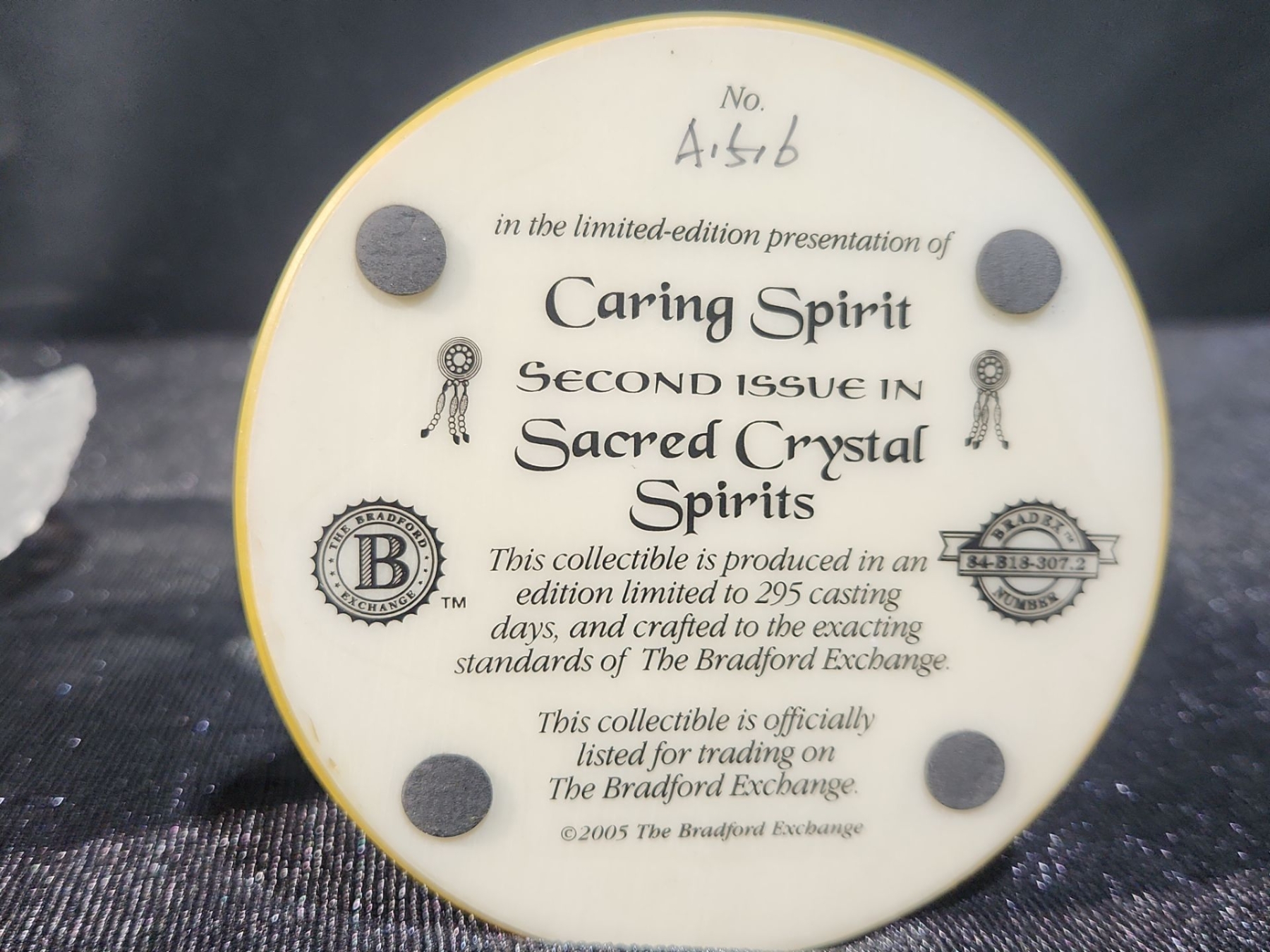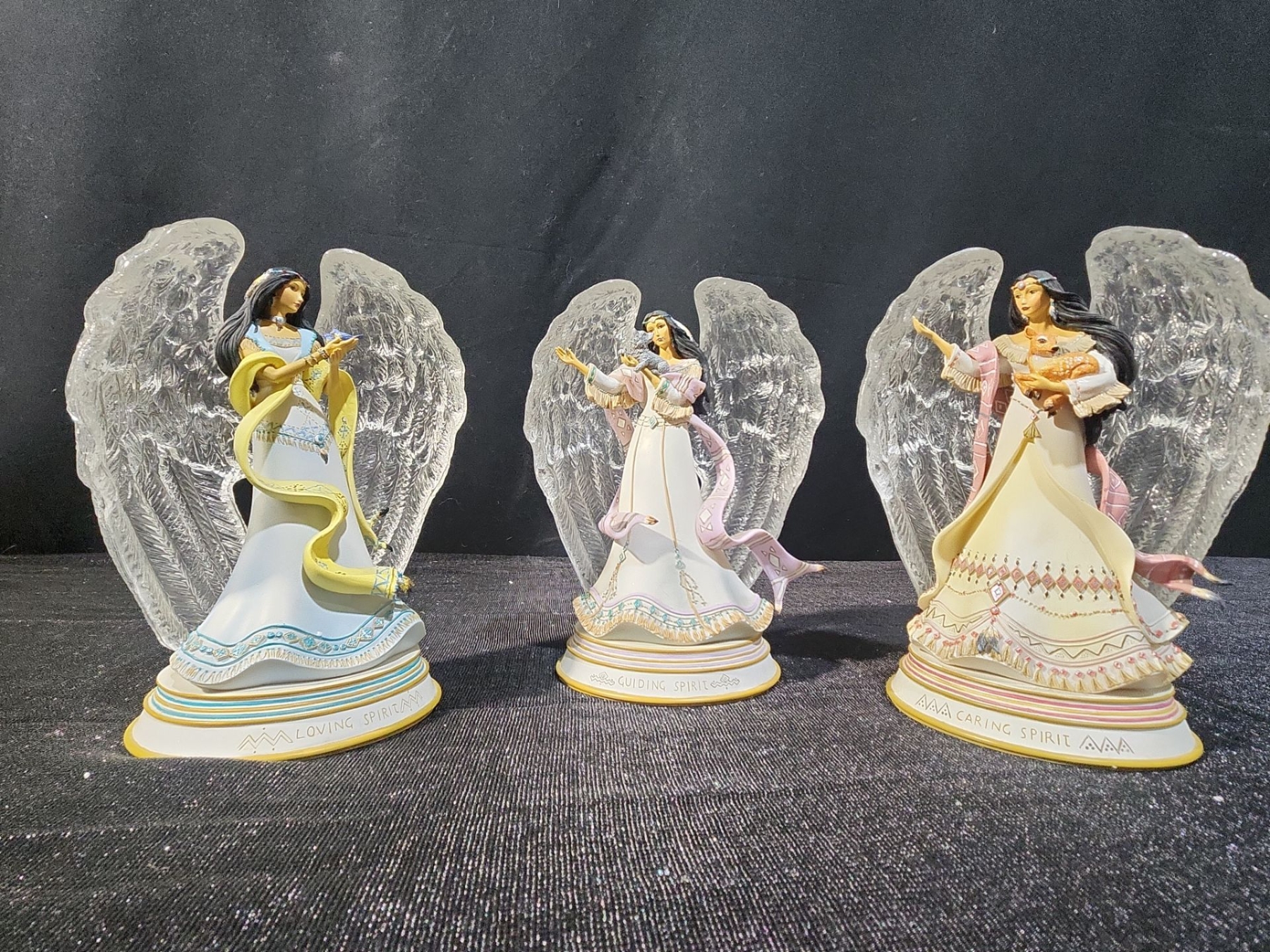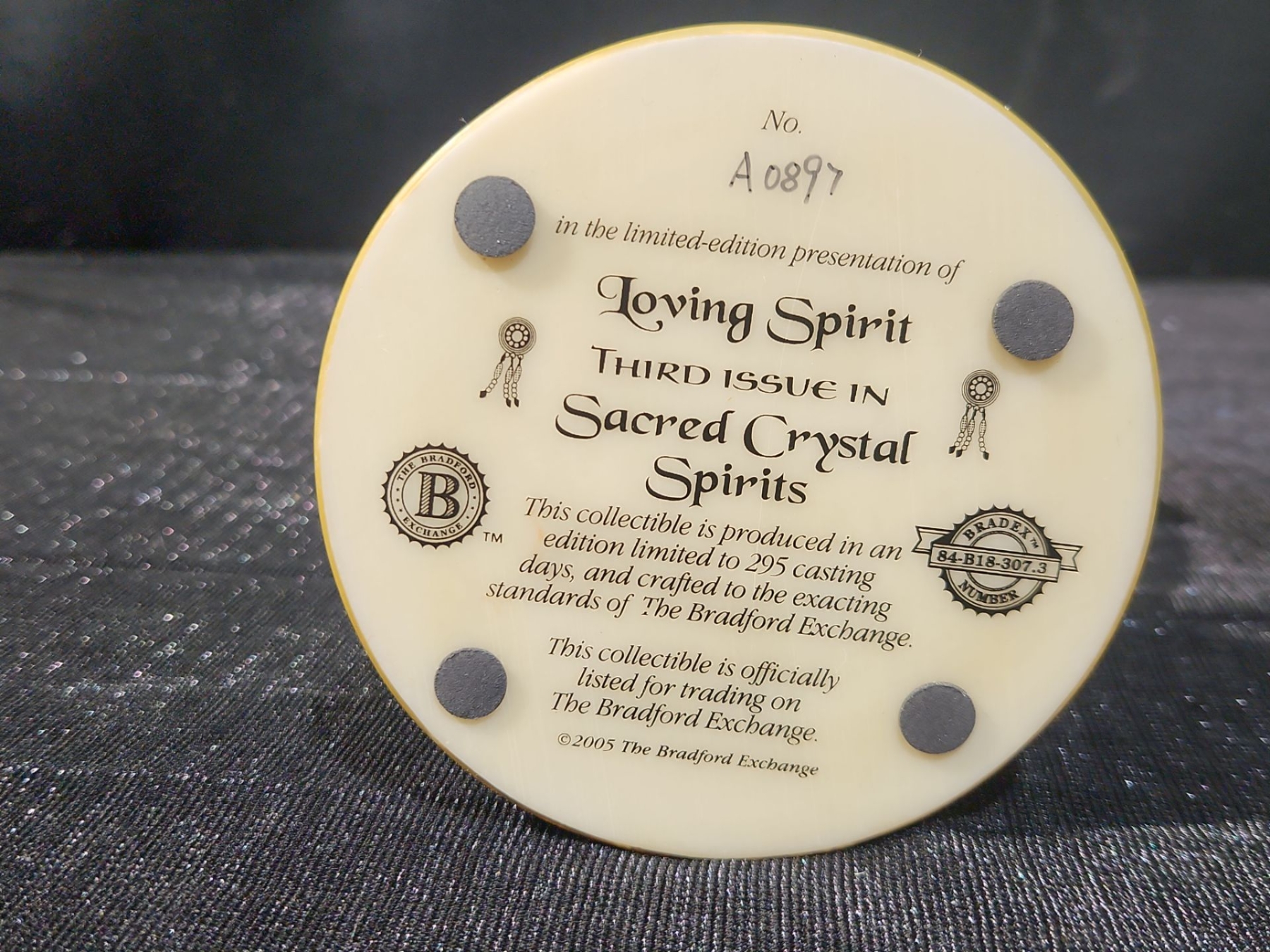 3 items up for grabs in this lot. We have 3 angels; Loving Spirit ,Guiding Spirit and Caring Spirit from the Sacred Crystal Spirits collection. A beautifully crafted selection from The Bradford Exchange’s “Sacred Crystal Spirits” angel series. These elegant figurines feature finely detailed sculpting, soft flowing robes, and inset crystal accents that enhance their spiritual and decorative appeal. Known for their serene expressions and quality workmanship, this collection offers excellent display value for collectors of angelic or inspirational-themed décor.