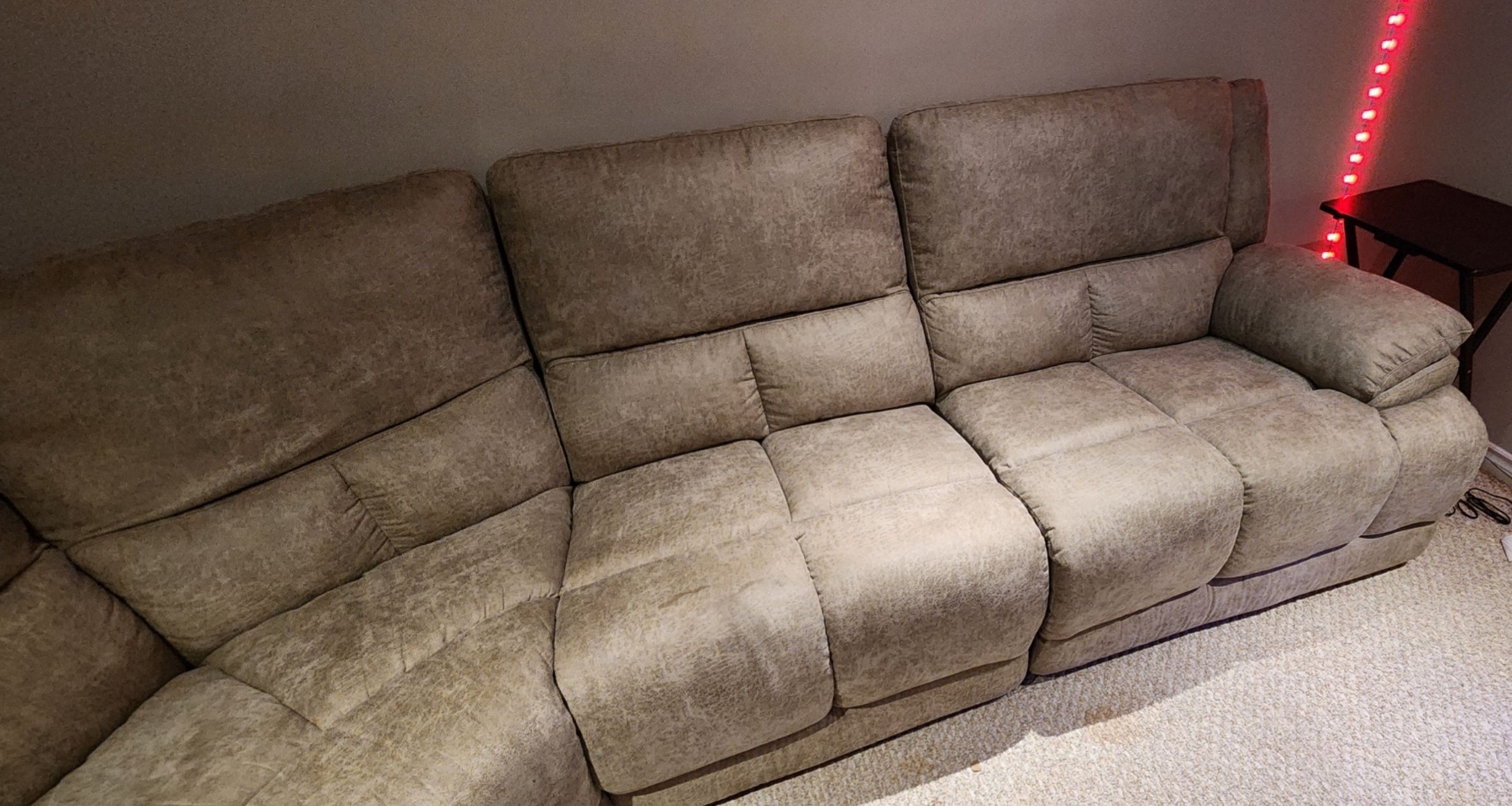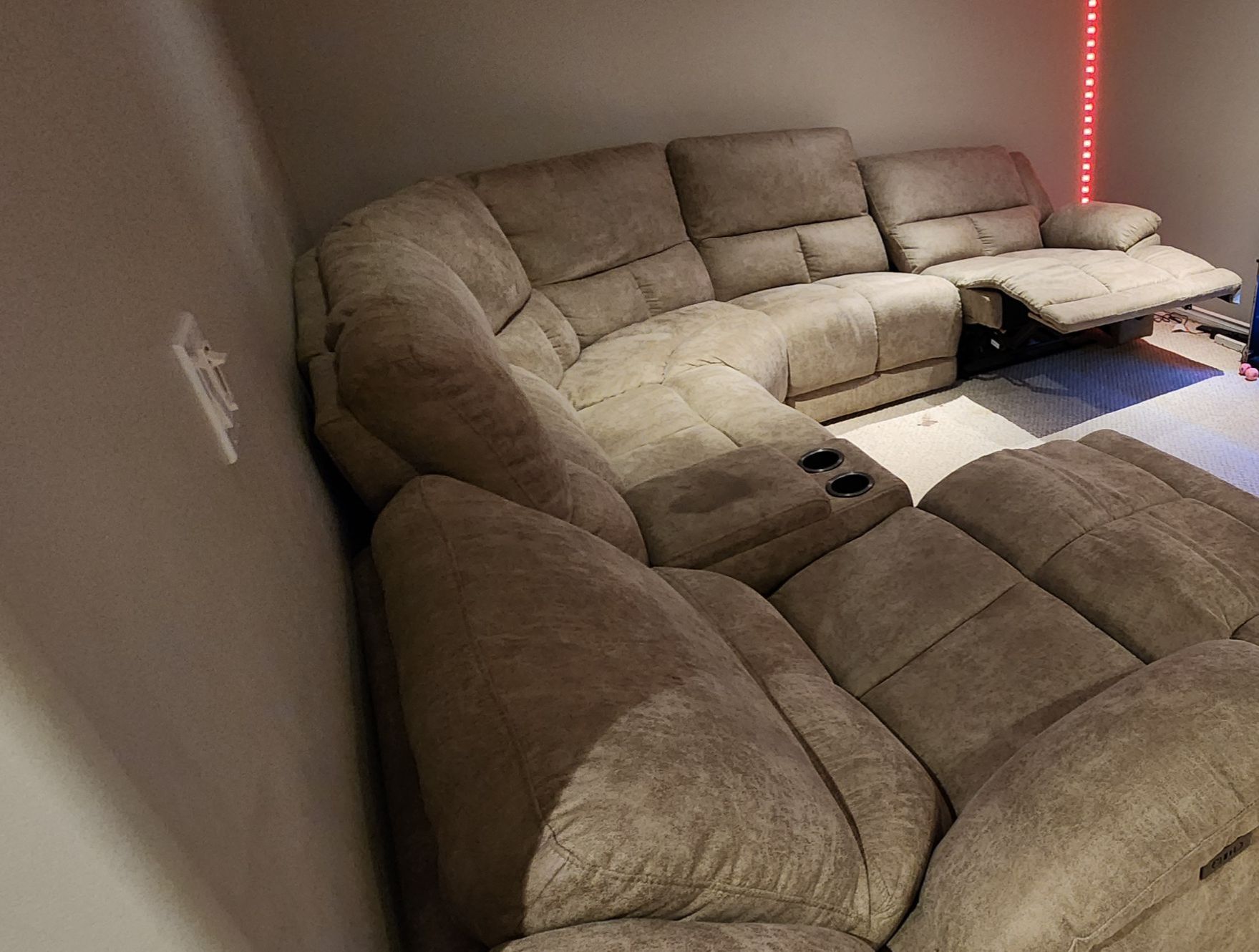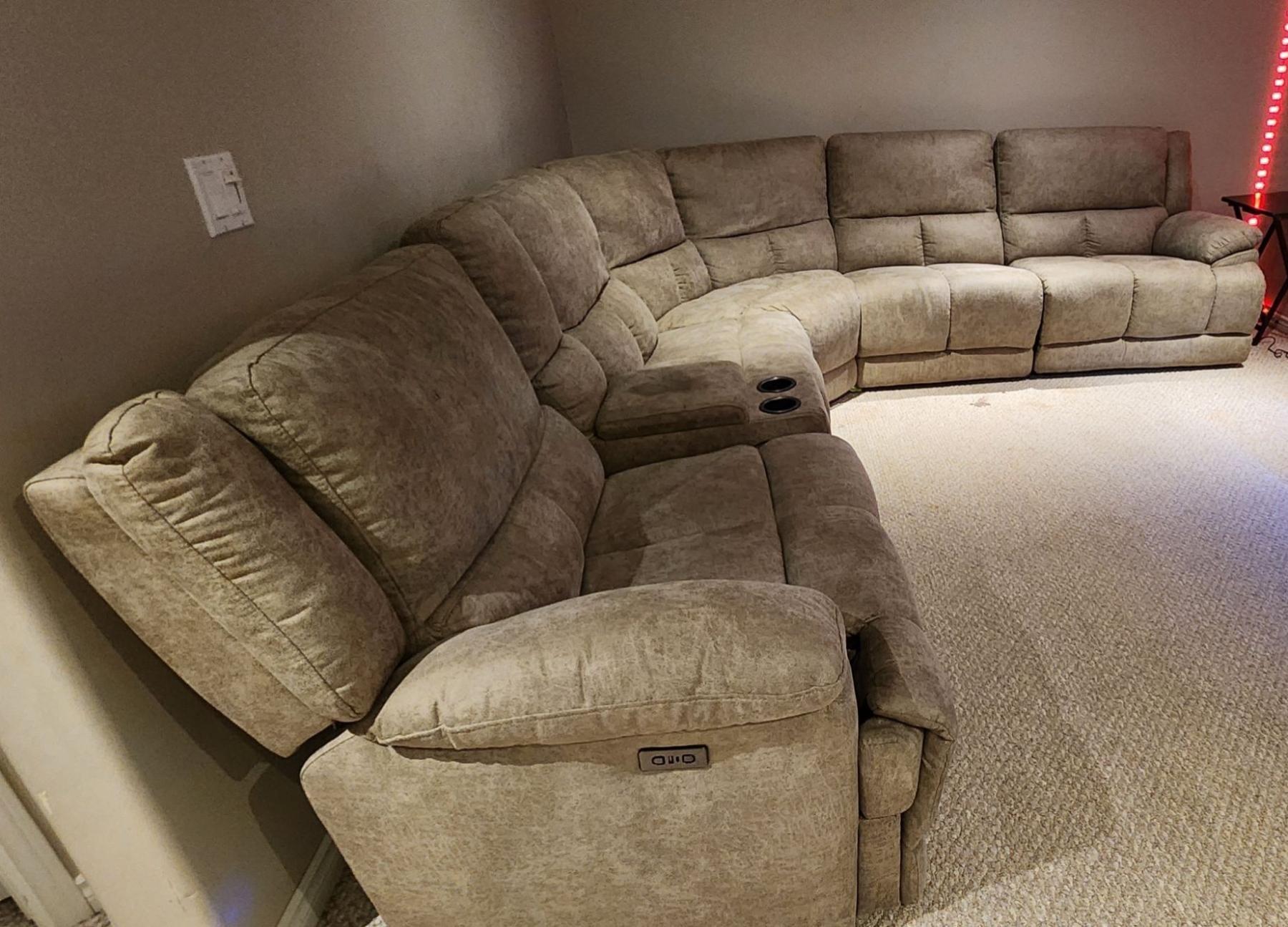 A central console with cup holders and hidden storage adds practicality, making it ideal for movie nights or everyday use.