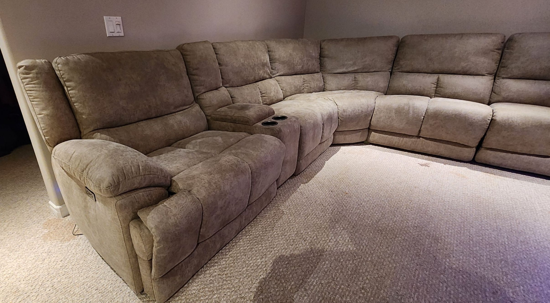 The Luke 6-Piece Sectional from The Brick is a large-scale, theatre-style seating solution designed for comfort, functionality, and modern living.