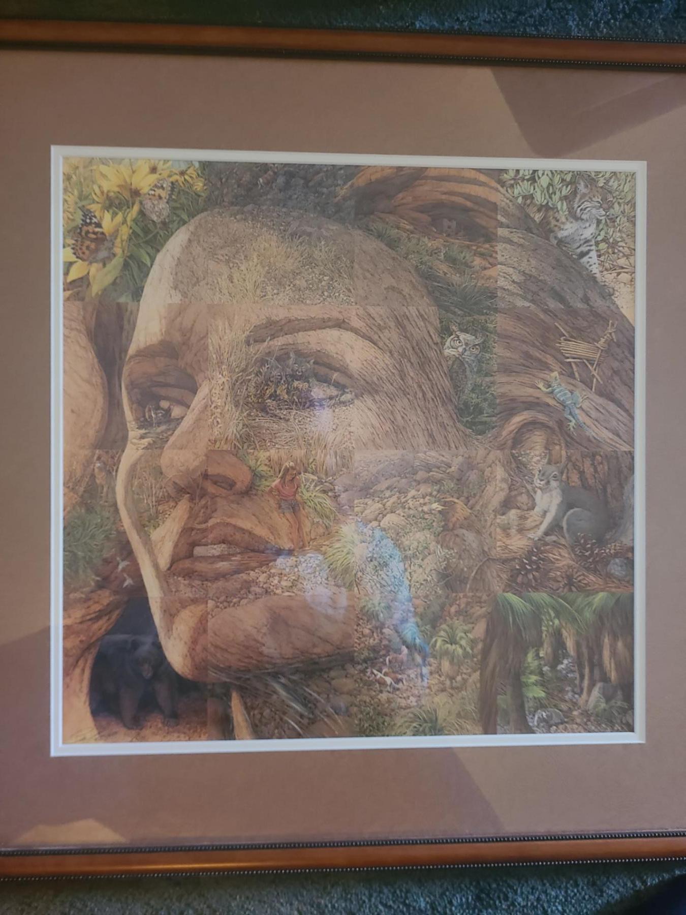"The Earth is My Mother" Framed Print under Glass 9771/12500 with Book by Bev Doolittle (26"L, 26"W)