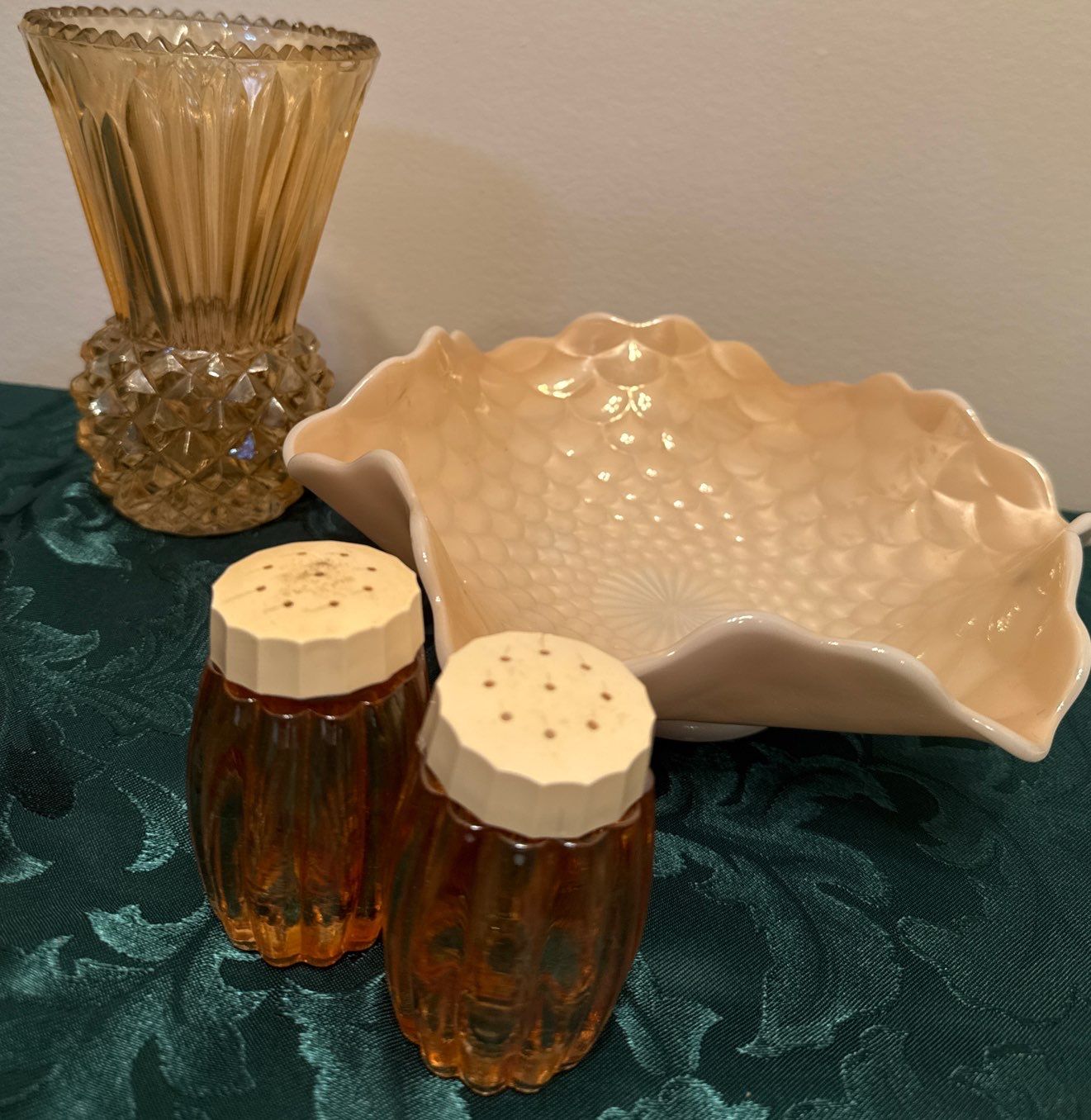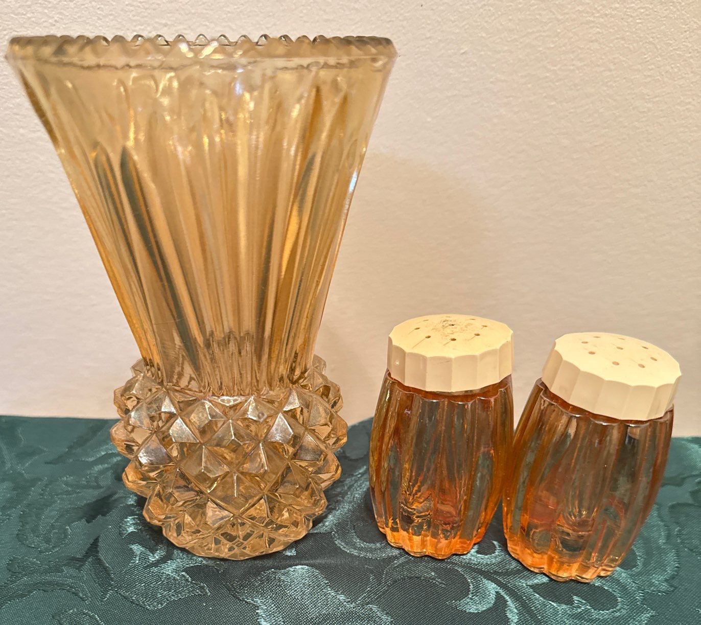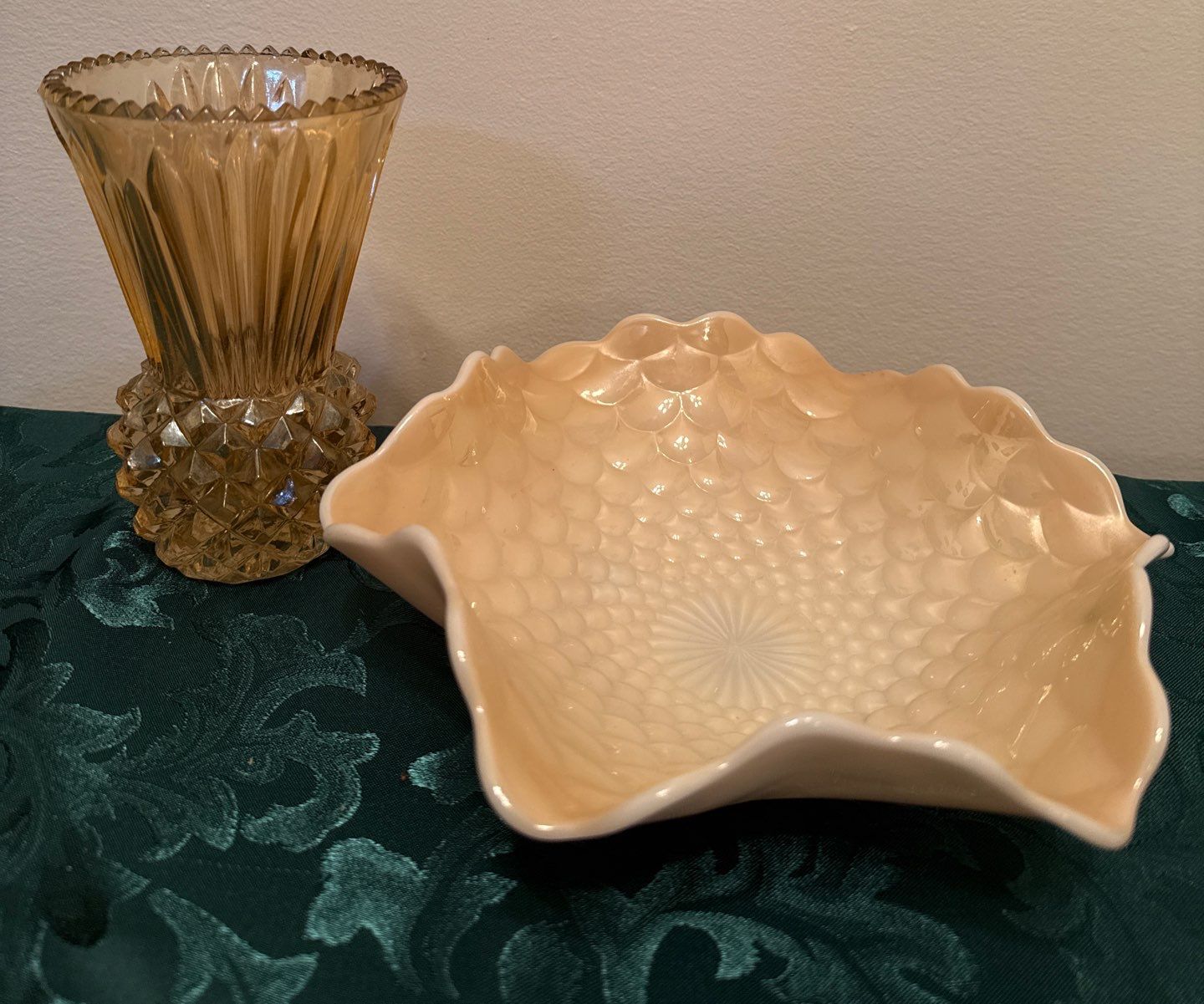 Thistle Vase & Ruffle Bowl Marigold Carnival Glass Westmore & Co