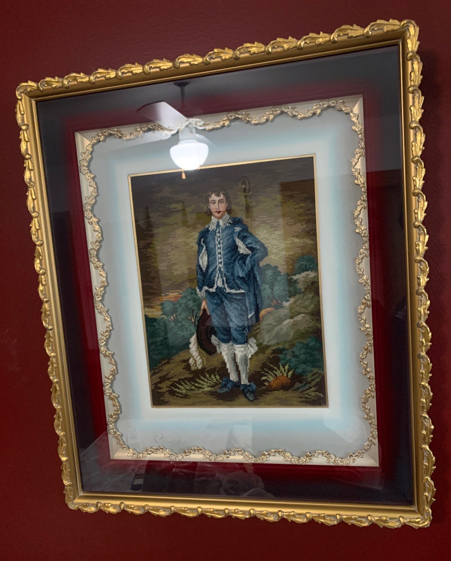 Thomas Gainsborough Meticulously Stitched Needlepoint Boy Blue w/ Gold Beveled Frame 18x23