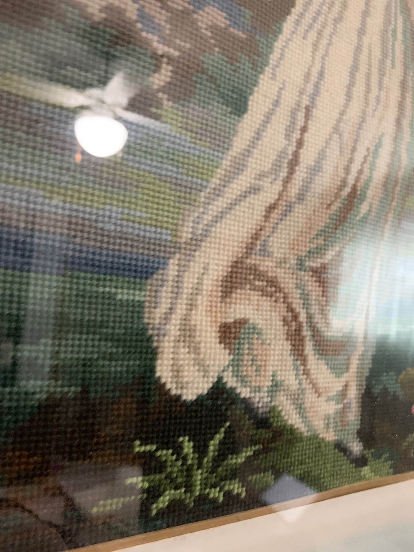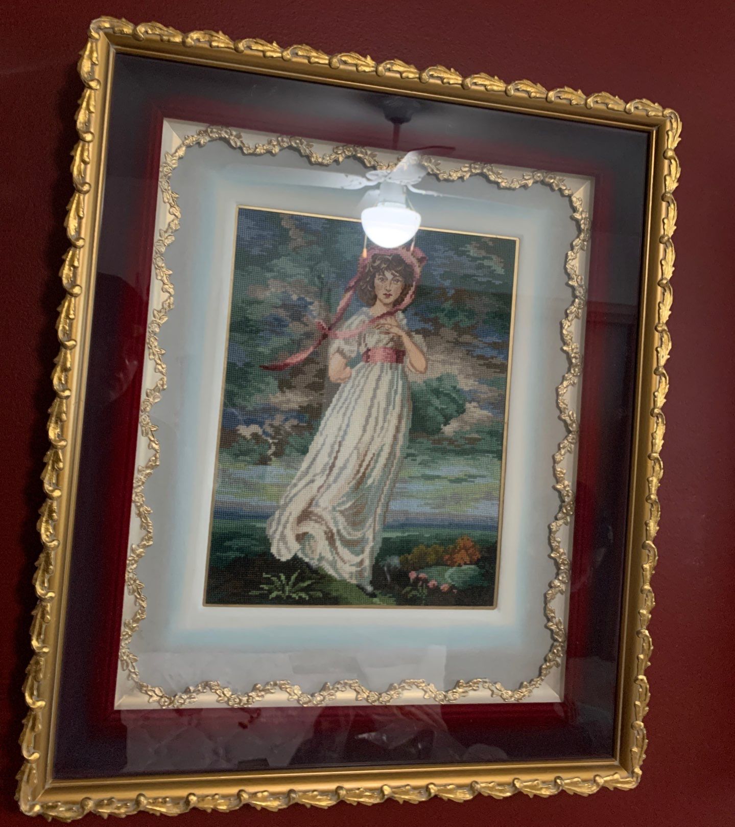 Thomas Gainsborough Meticulously Stitched Needlepoint Pinkie Art w/ Gold Beveled Frame 18x23