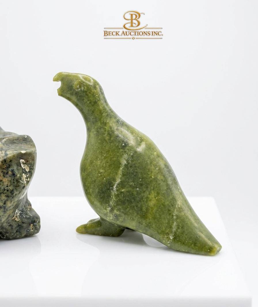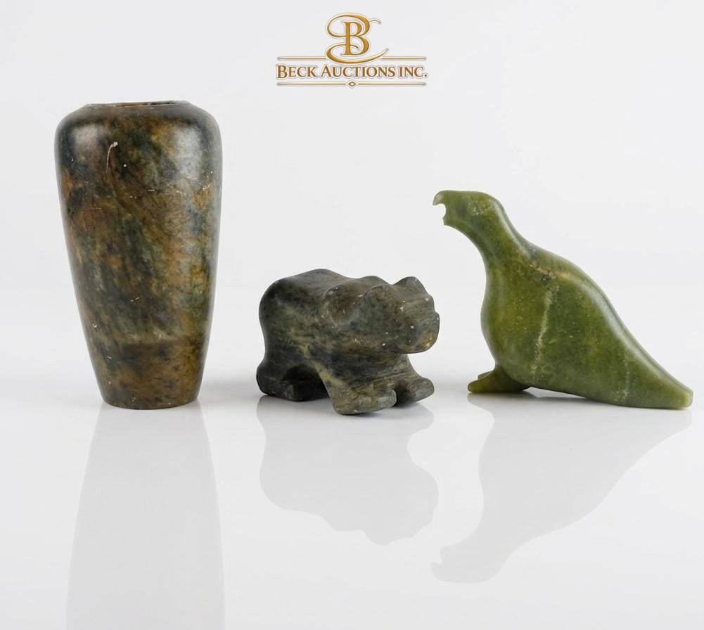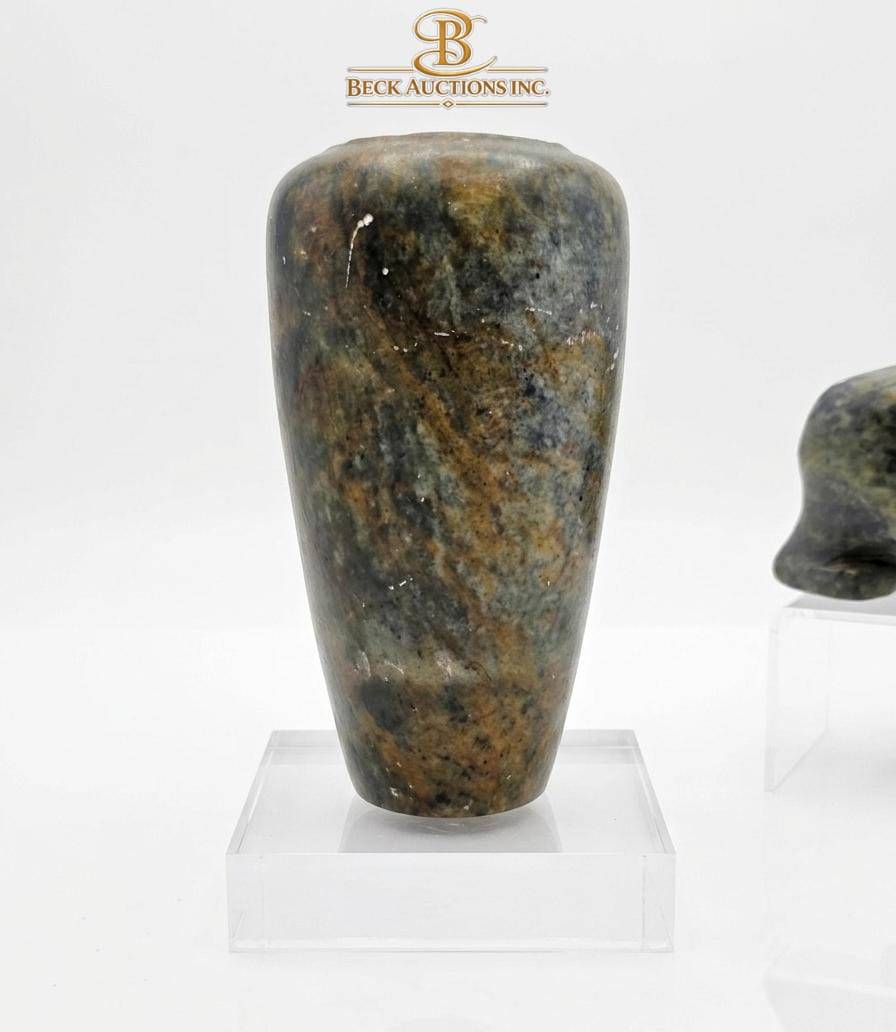 This trio of hand-carved stone figurines offers a diverse representation of nature and artistry. The set includes a bird (, a bear and a vertical vase 8 Inches Height Each figure is crafted from polished stone, showcasing unique textures and shades of earthy hues. Ideal for collectors or as a display, they bring a natural and artistic element to any setting.