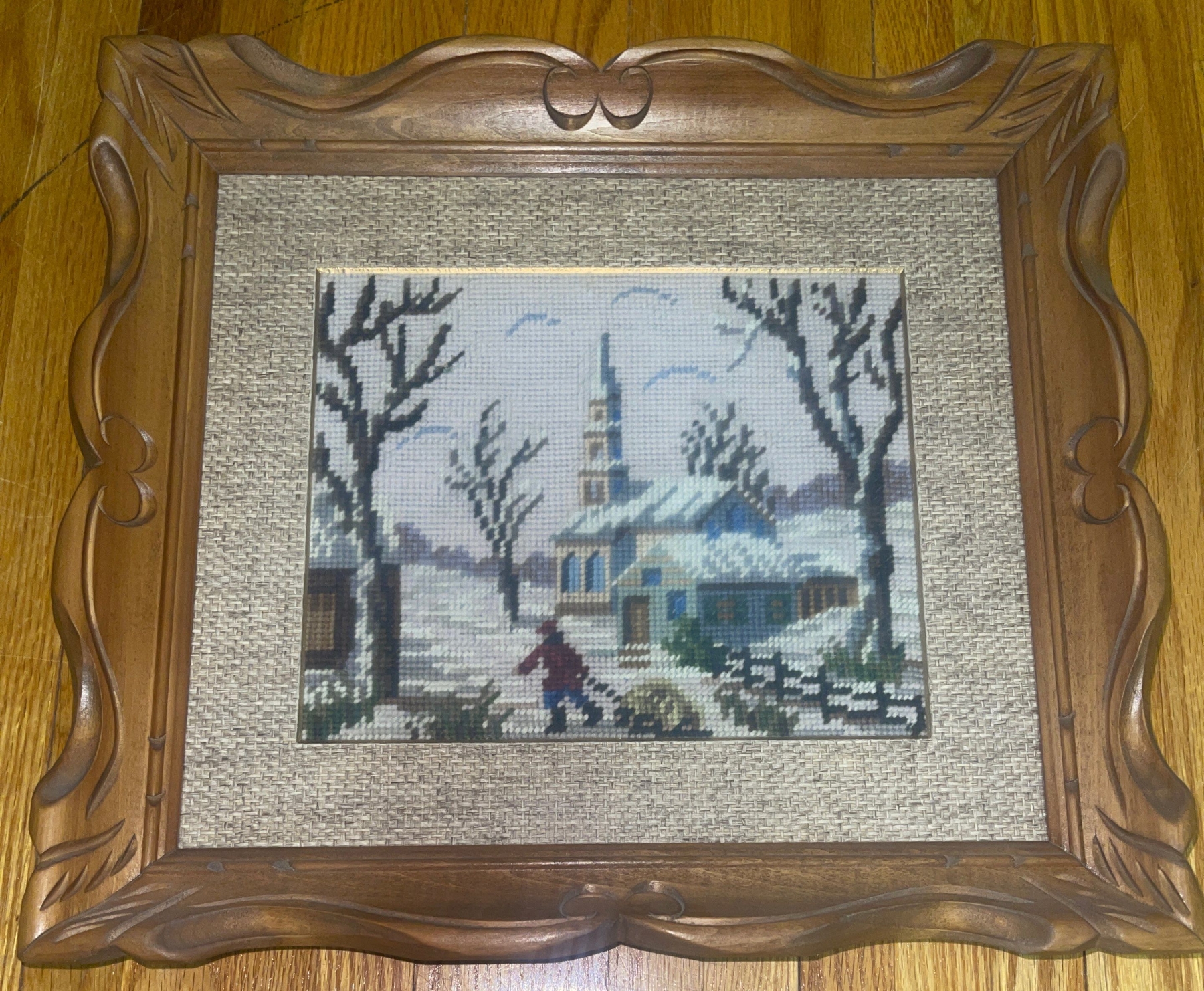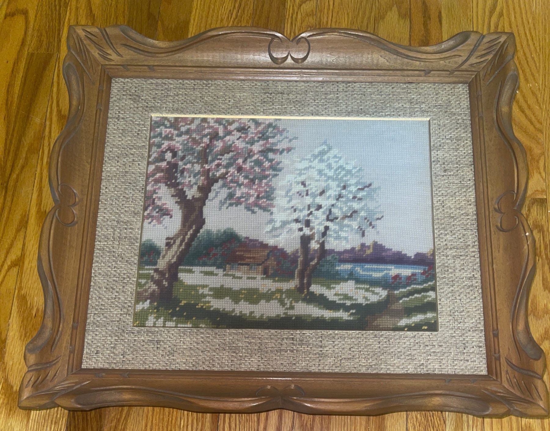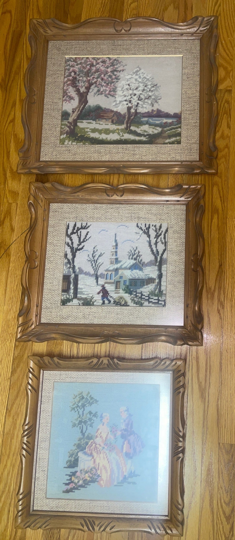 Three Handmade Needle Point Framed Art 16"x 21"tall