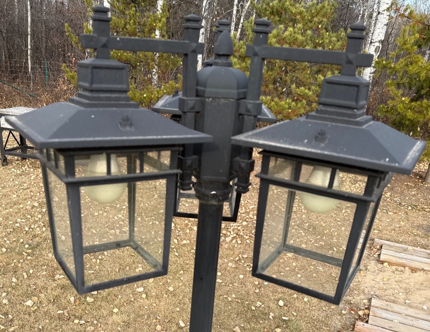 Three Headed Outdoor Lamp Post Durable Black Aluminum- Light Your Way Home
