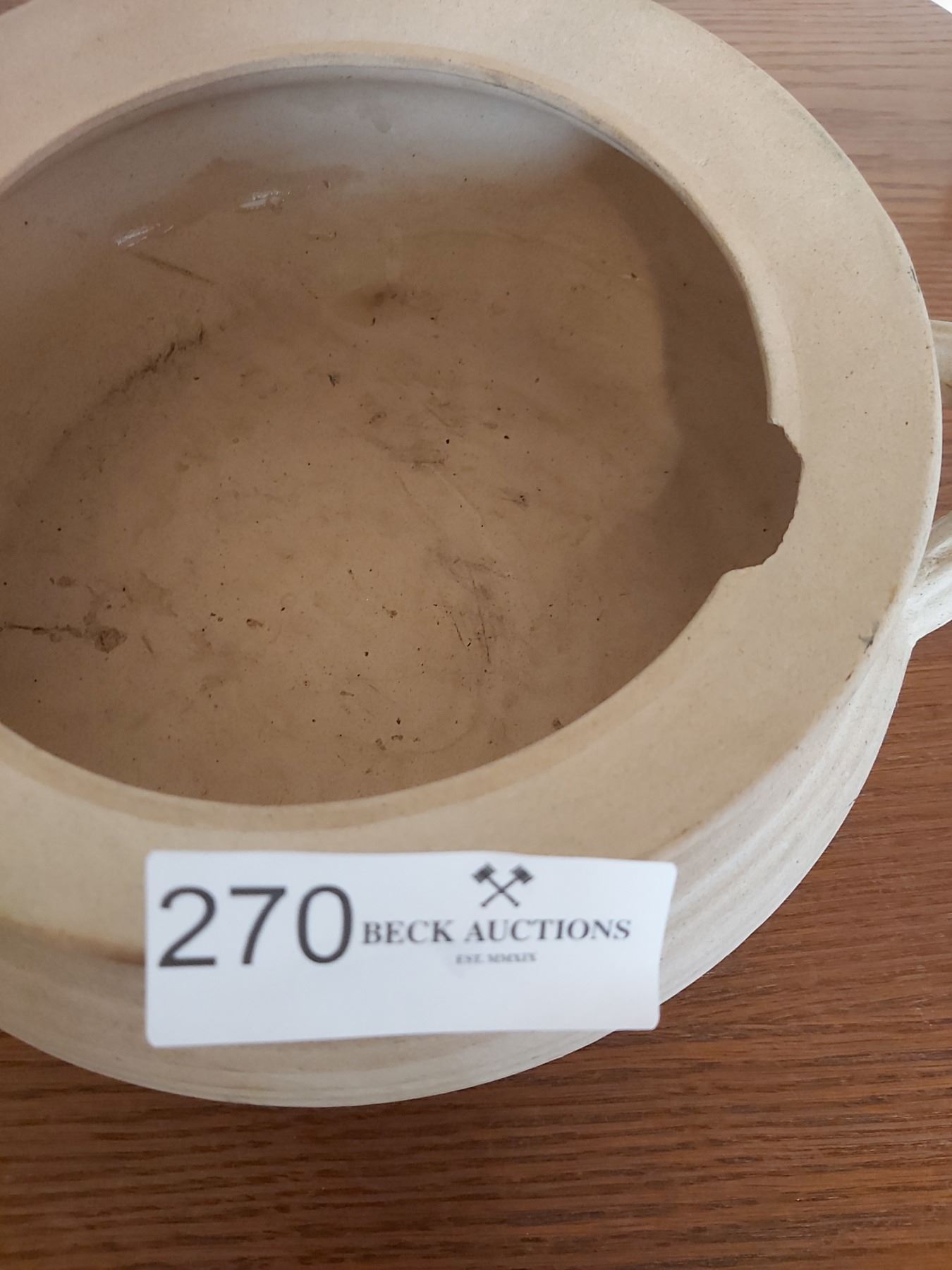 Clay pot has small chip.