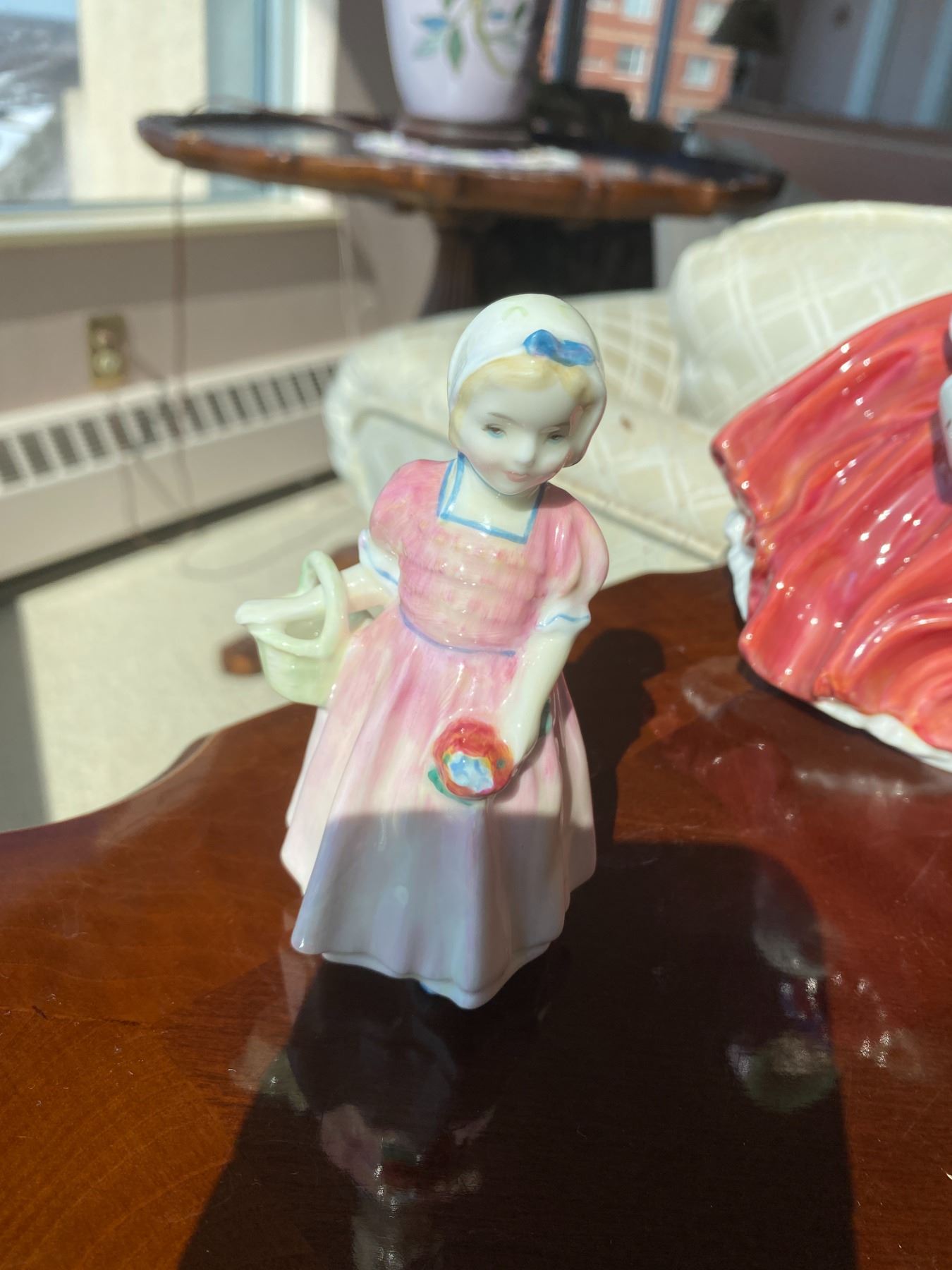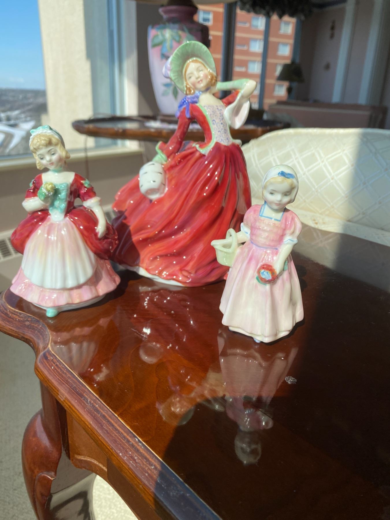 Three Royal Doulton Figurine's "Autumn Breezes" HN1934/ "Tinklebell" HN1677"/ "Vallerie" HN2107.
