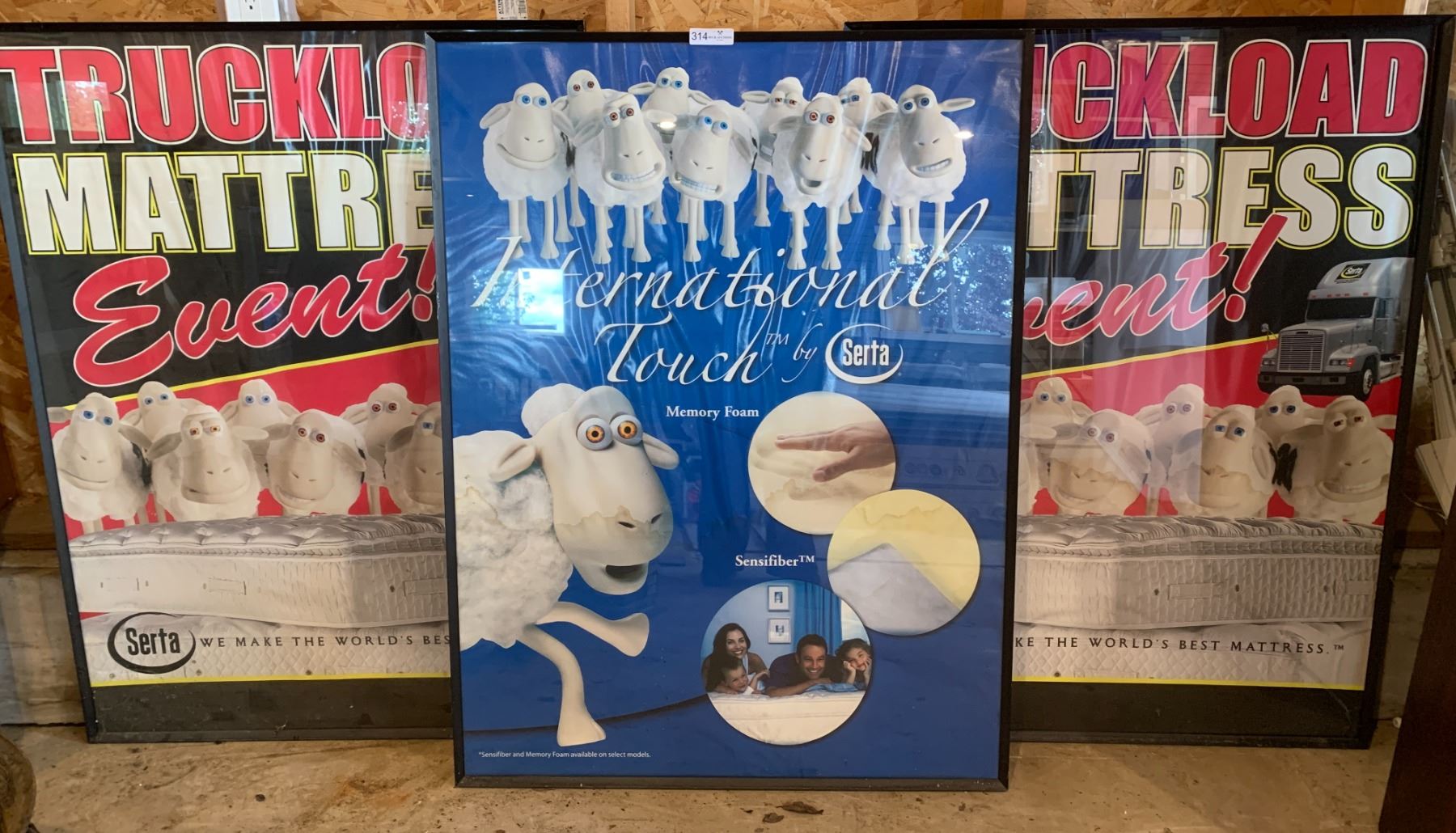Three Serta Commercial Mattress Advertising Poster 40" Long X 36" Wide One Has Broken Glass