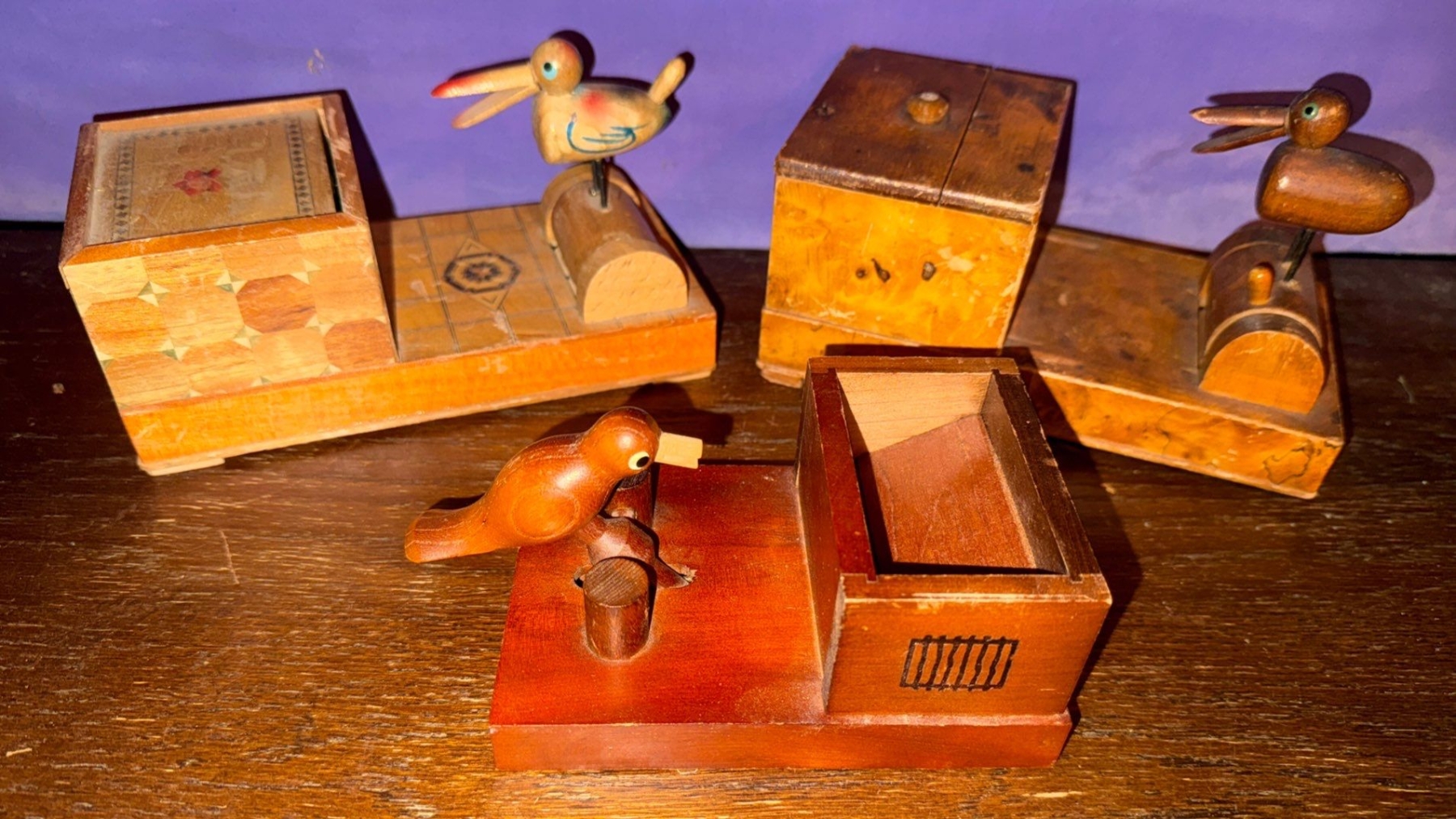 Vintage Mechanical Wooden Bird Cigarette Dispensers (1940's Era)