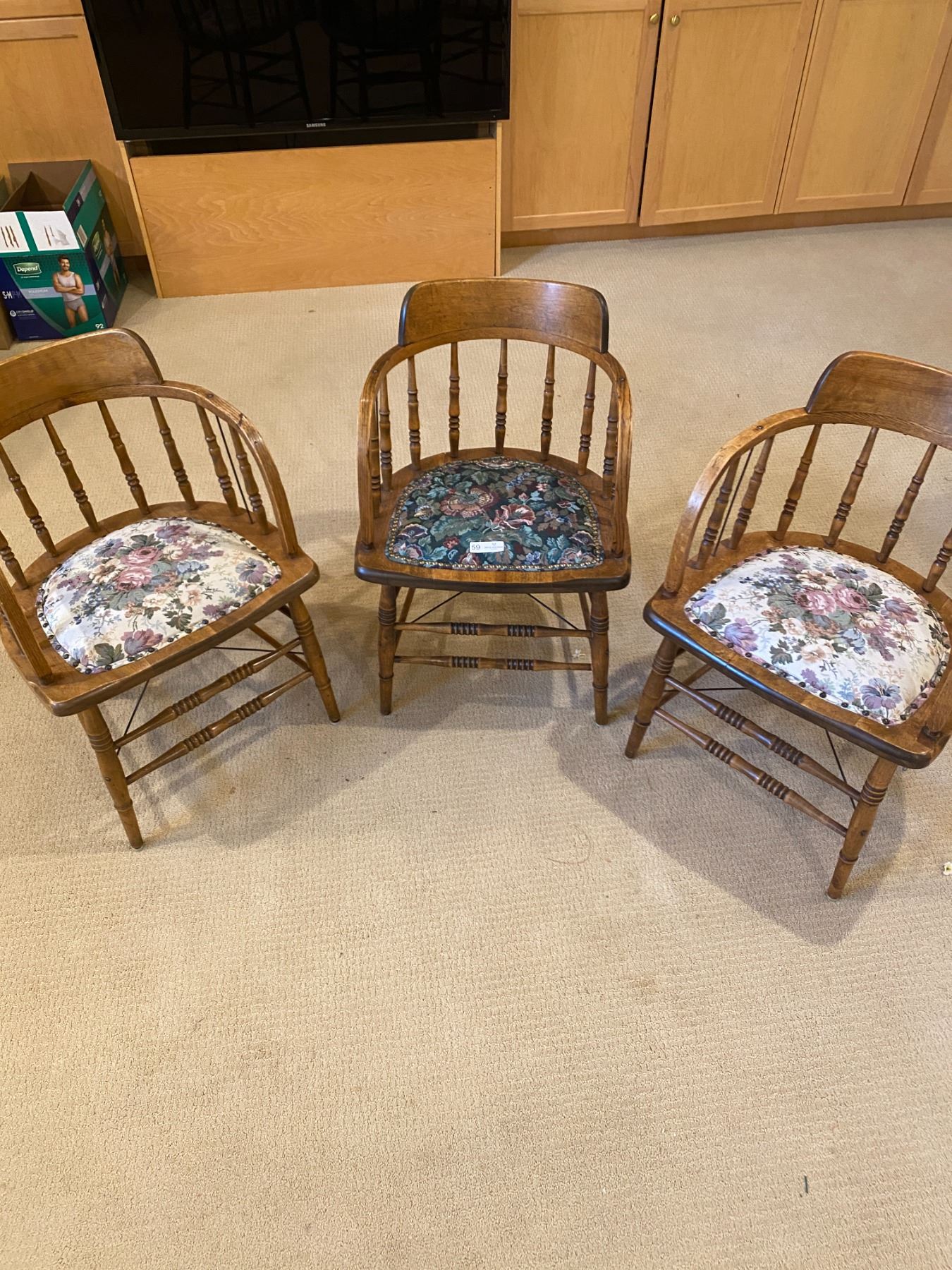 Three Vintage Round Backed Wooden Chairs
