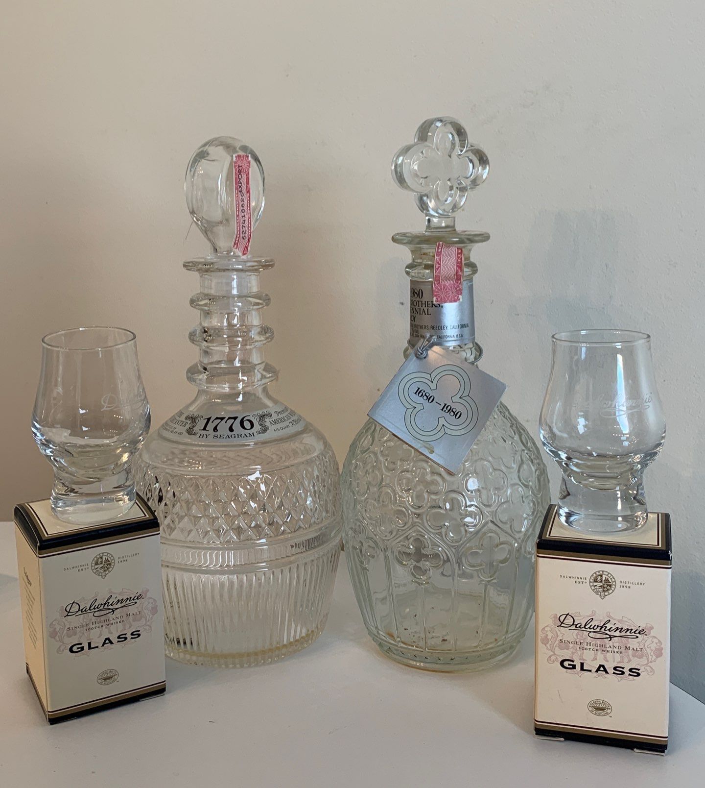 Tiffany Liquor Decantors w/ Two Dalwhinnie Sifter Glasses