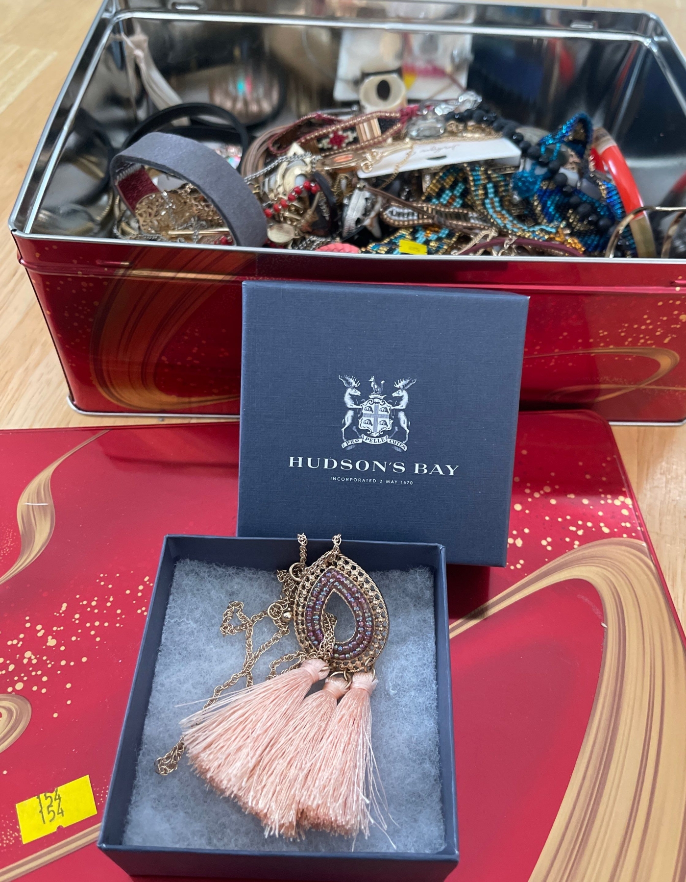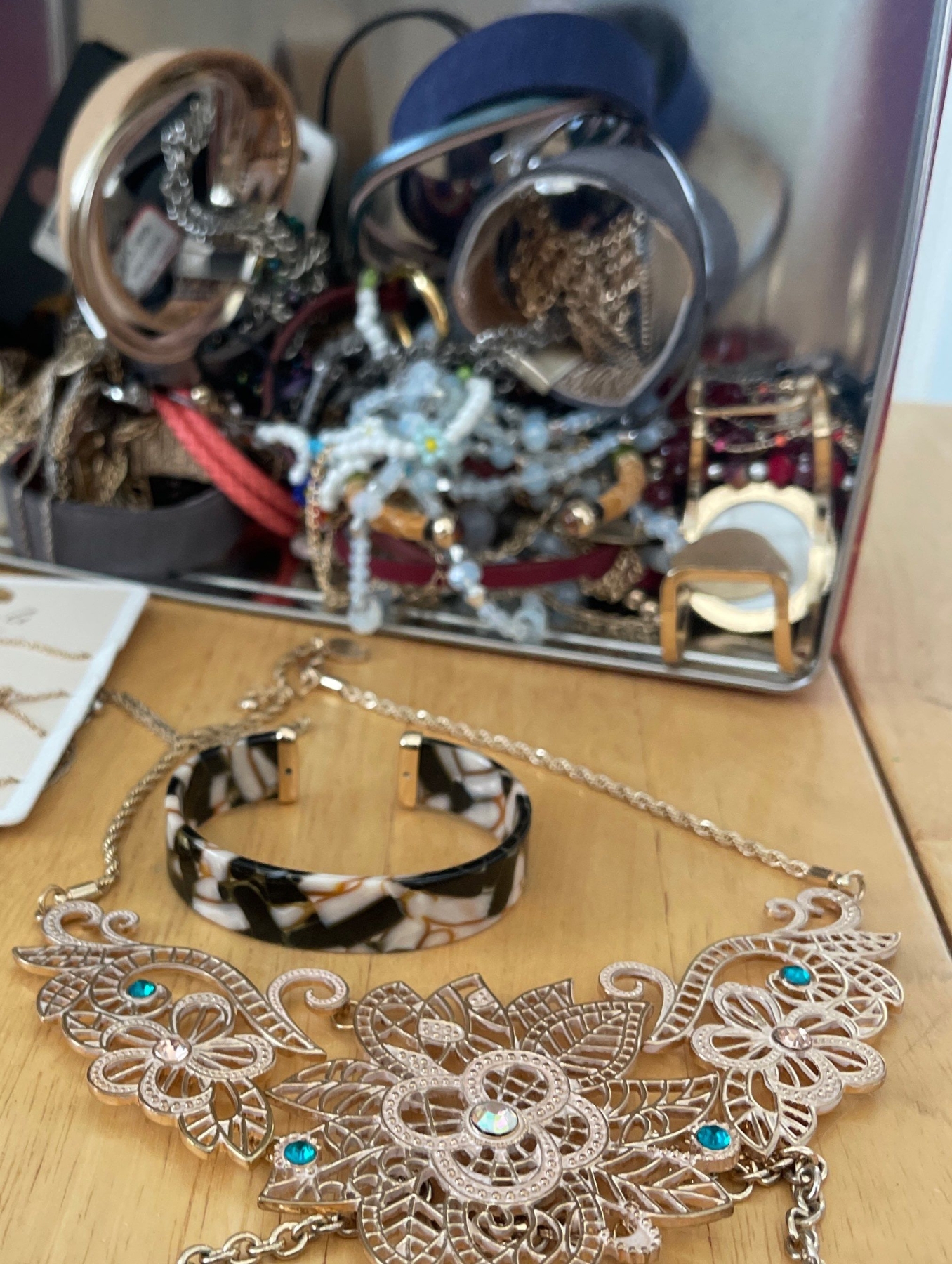 Tin Full Of Costume & Fashion Jewelry  Necklace, Ring, Bracelets, & More