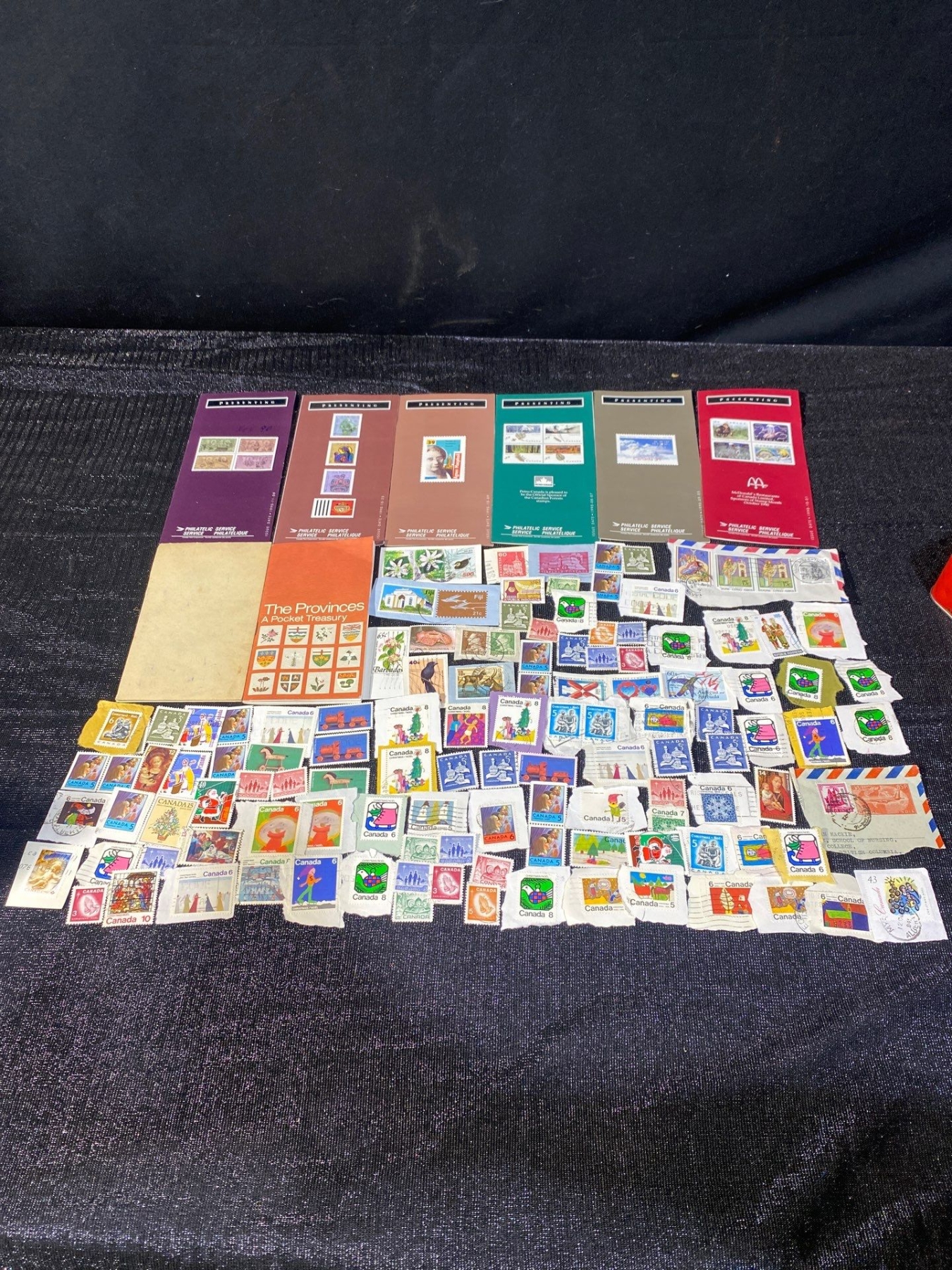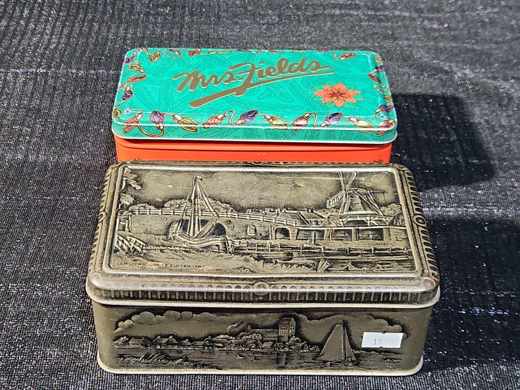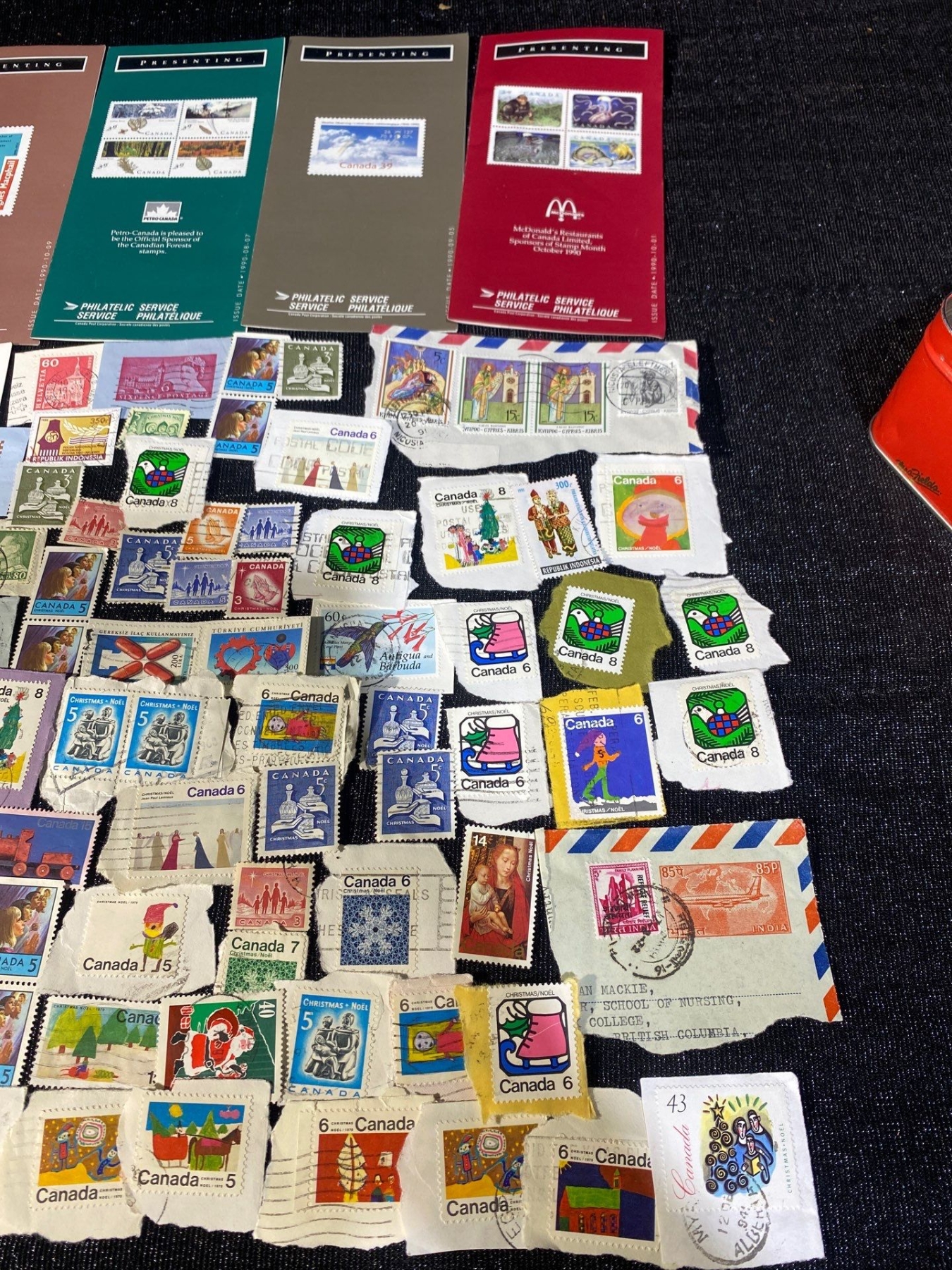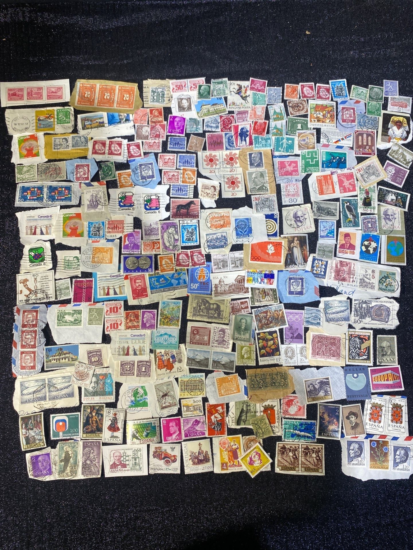 A pair of tins filled with an eclectic assortment of vintage world postage stamps from various countries and eras. Includes a mix of used and unused examples with diverse themes, colours, and cancellations. Estate-sourced and unsorted, offering excellent discovery potential for collectors and resellers.