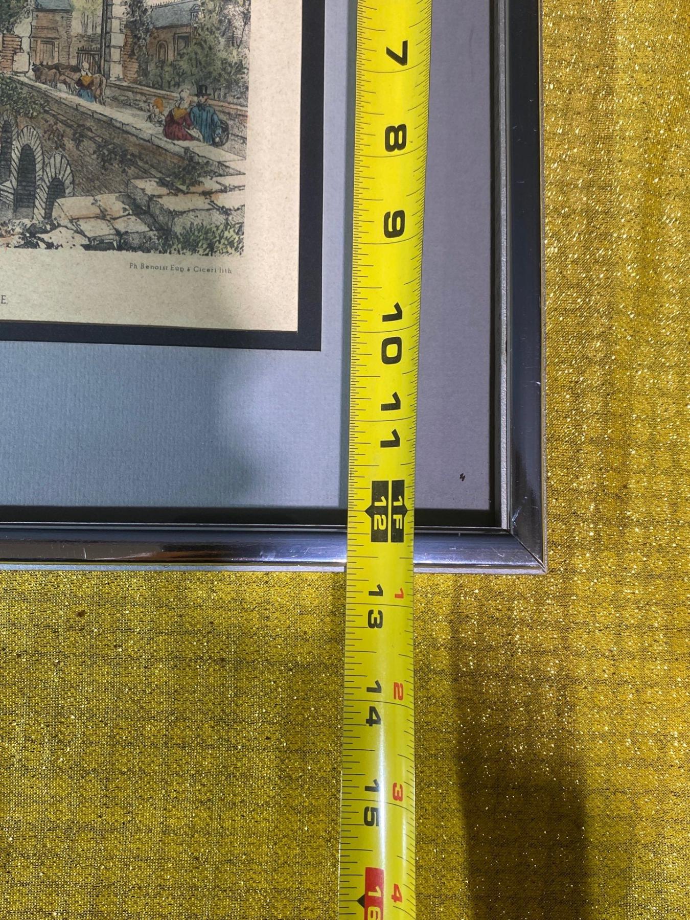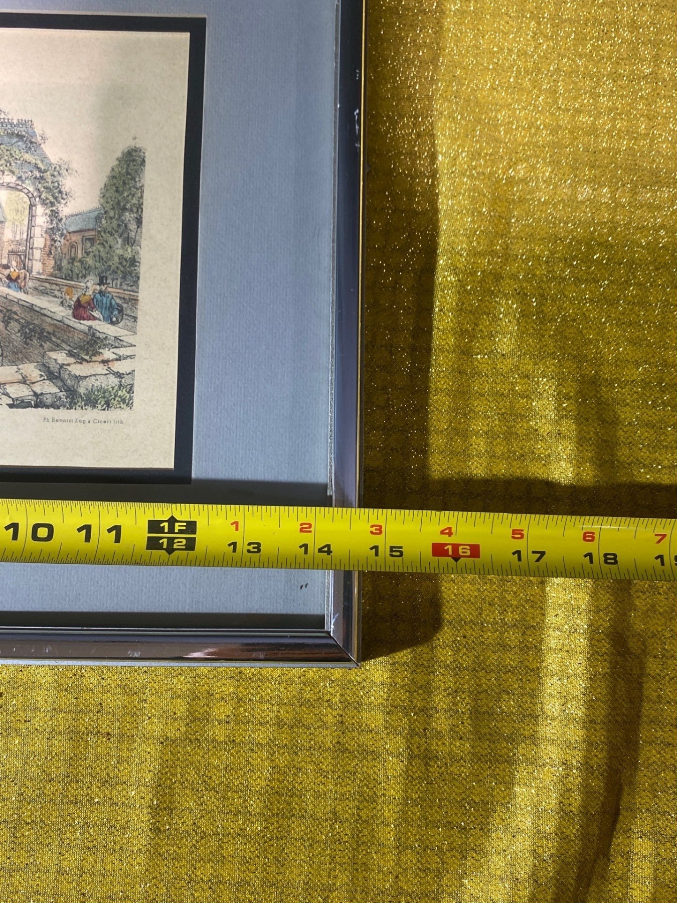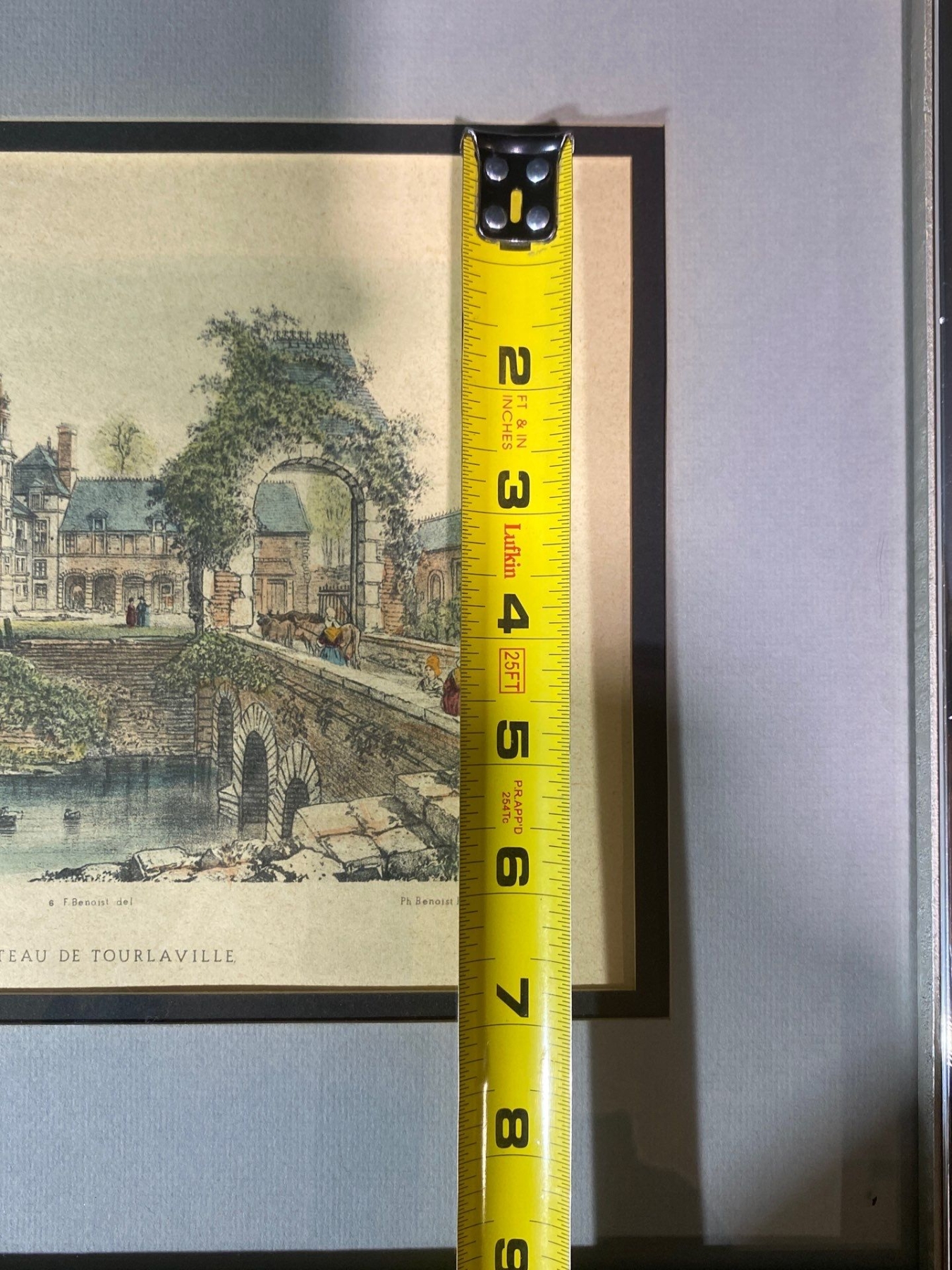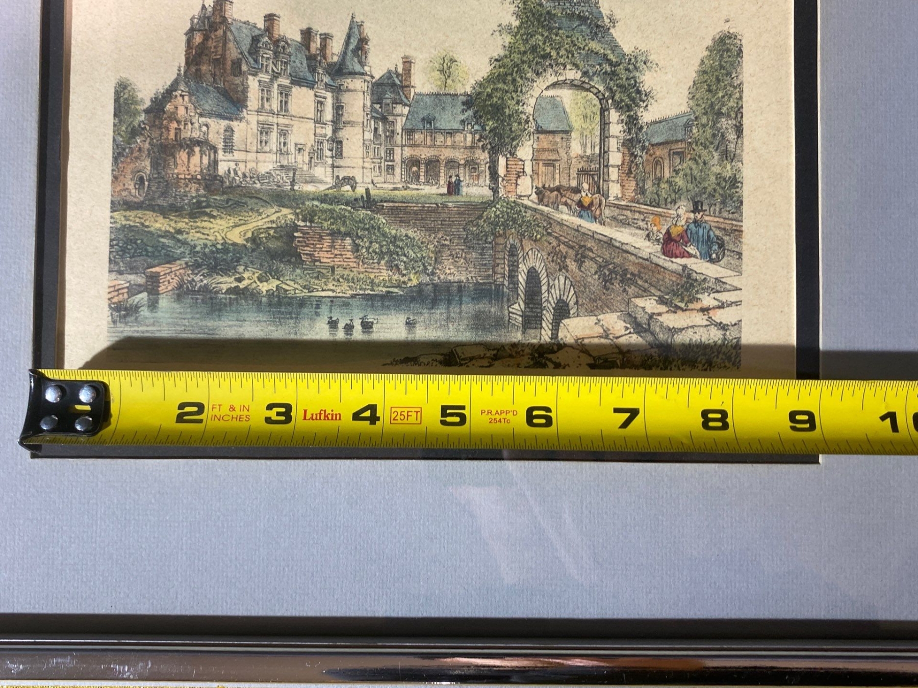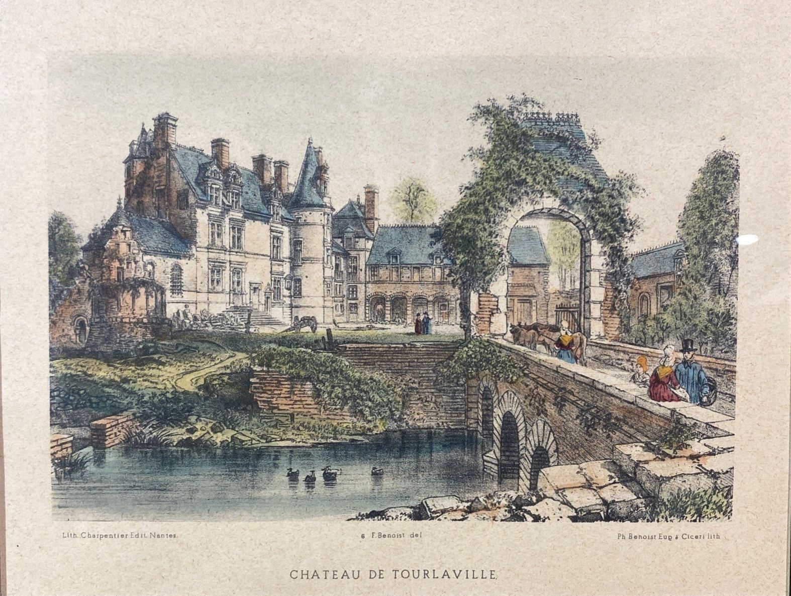 This tinted lithograph, “Chateau de Tourlaville”, captures the timeless charm of a historic French estate with delicate color washes and fine lithographic detail. The serene landscape and elegant architecture are beautifully rendered, making it a striking piece for collectors of European prints or lovers of French heritage.