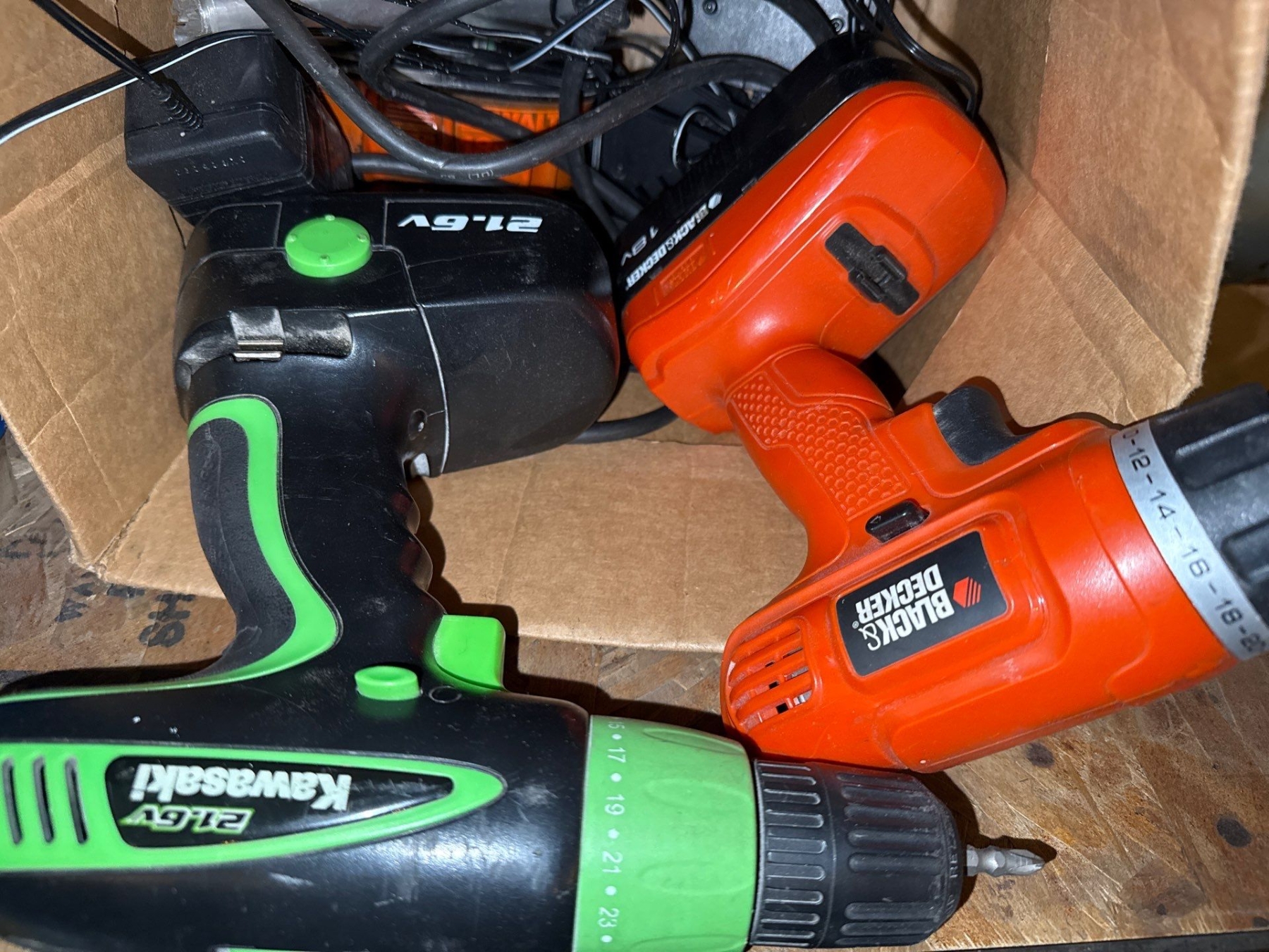 Tool Collection - Drills (Kawasaki 21.6V, Black & Decker GC1800), Spin Saw, Jig Saw, More