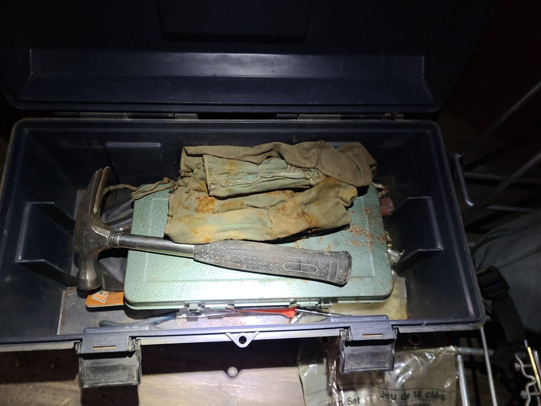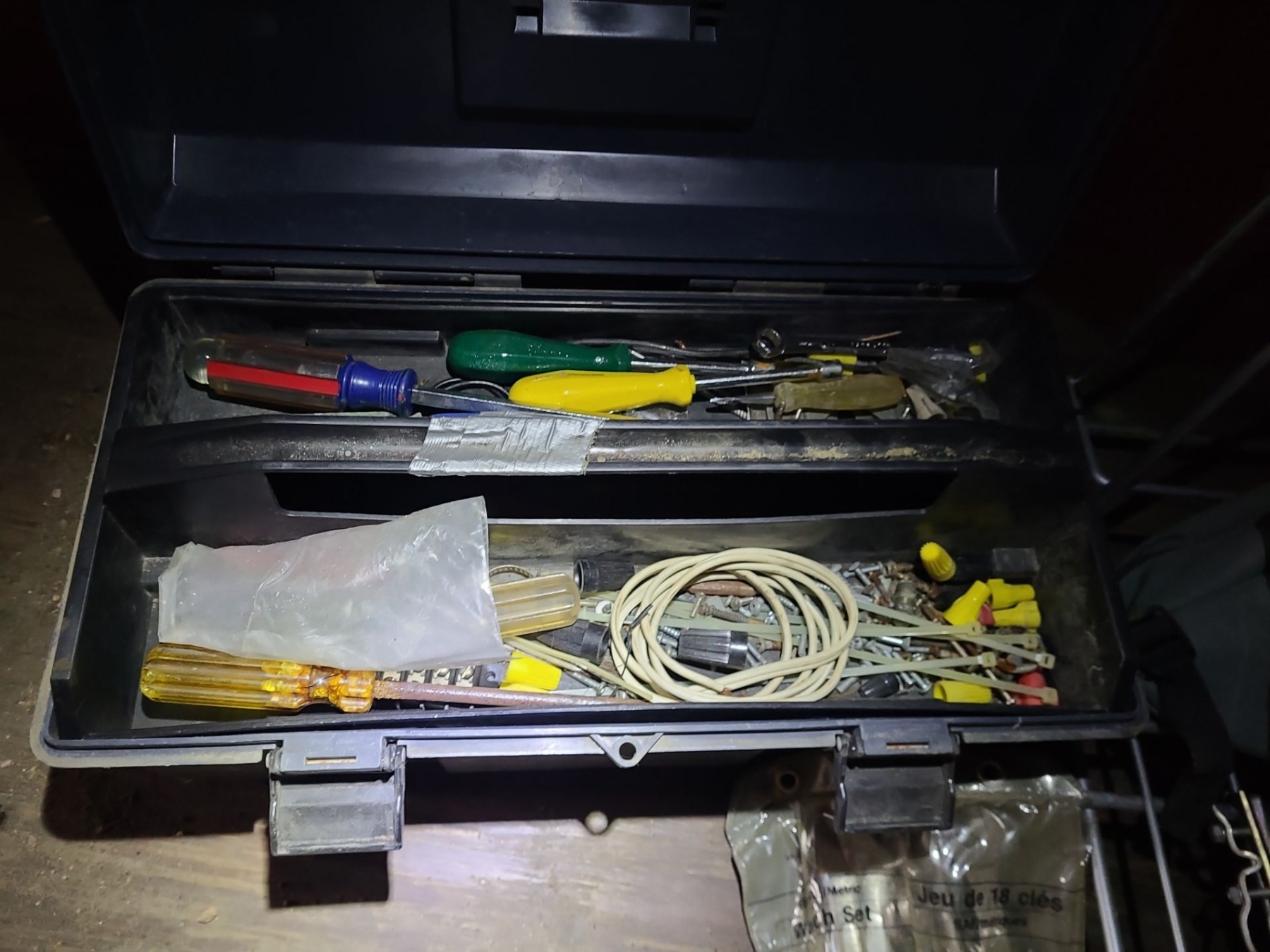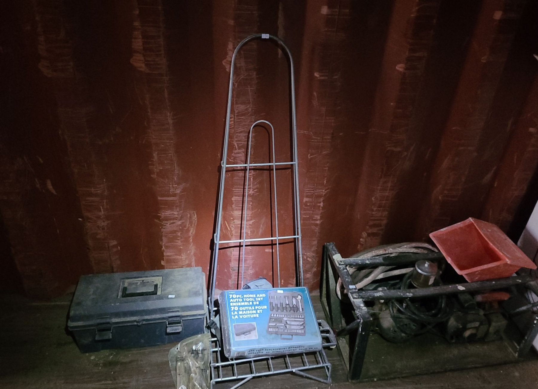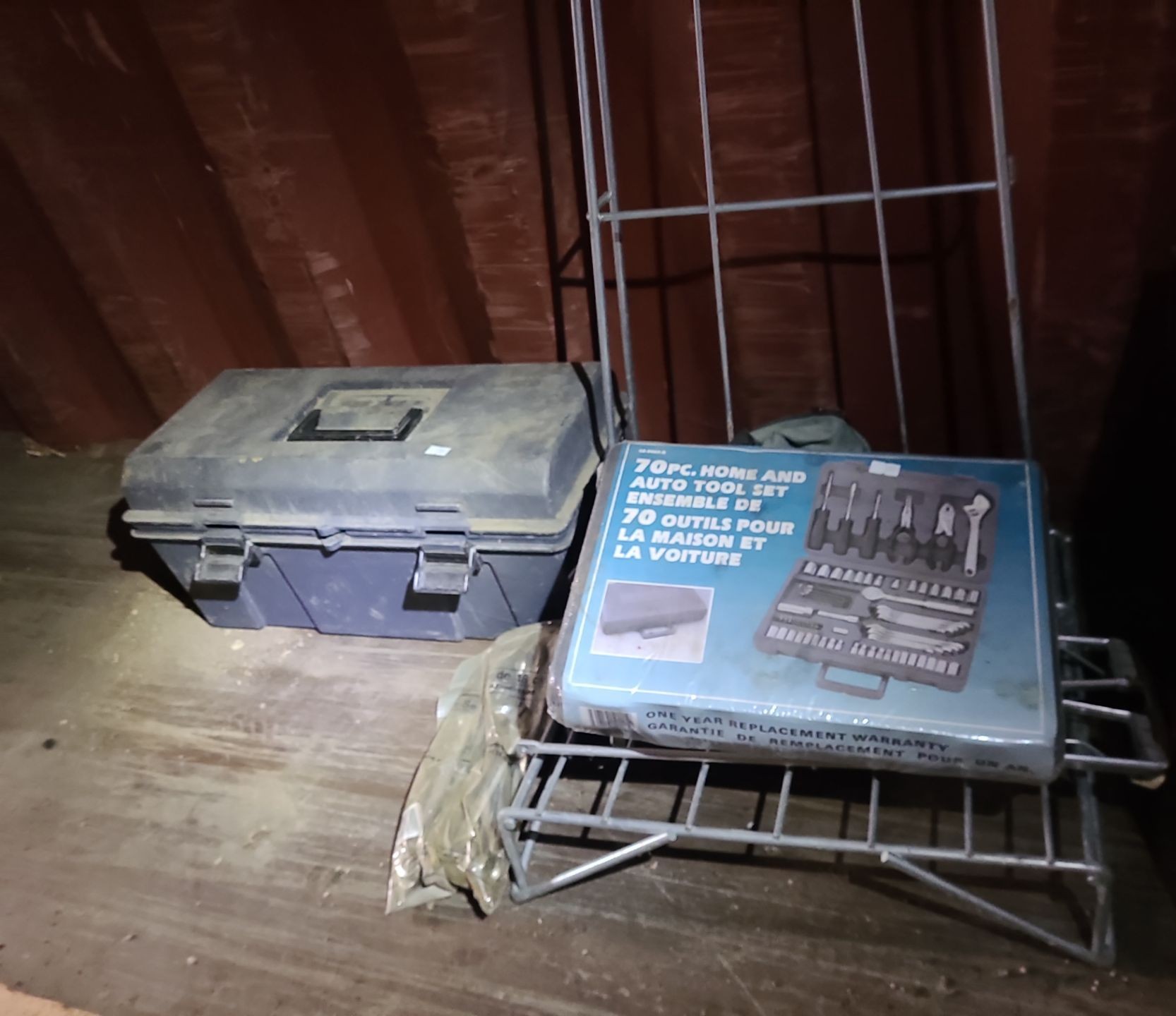 Toolbox 18 W, 9 D, 9 T w/ Contents, 70 Piece Tool Set, Prestolite-Leland Motor 16 W, 28 D, 14 T