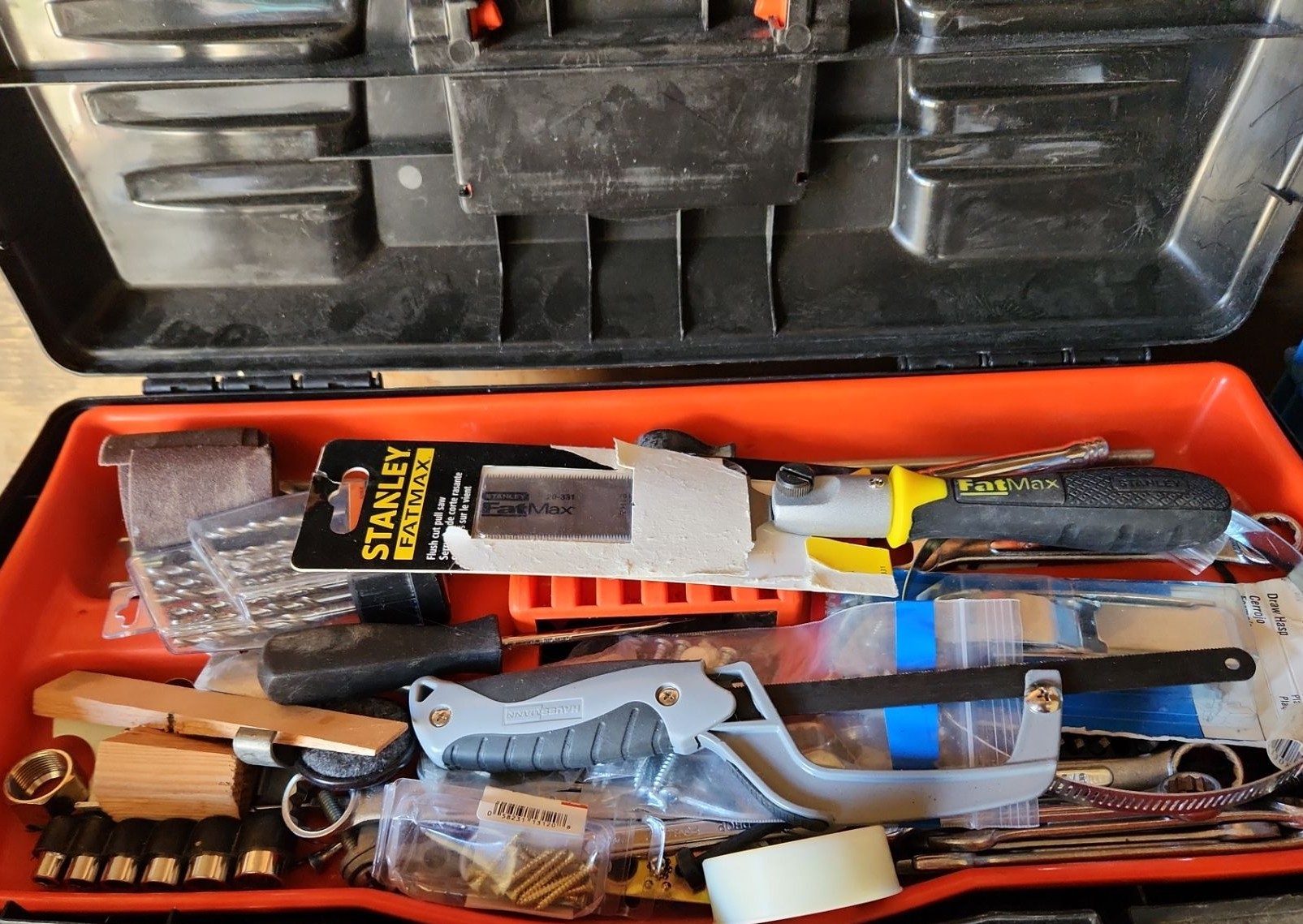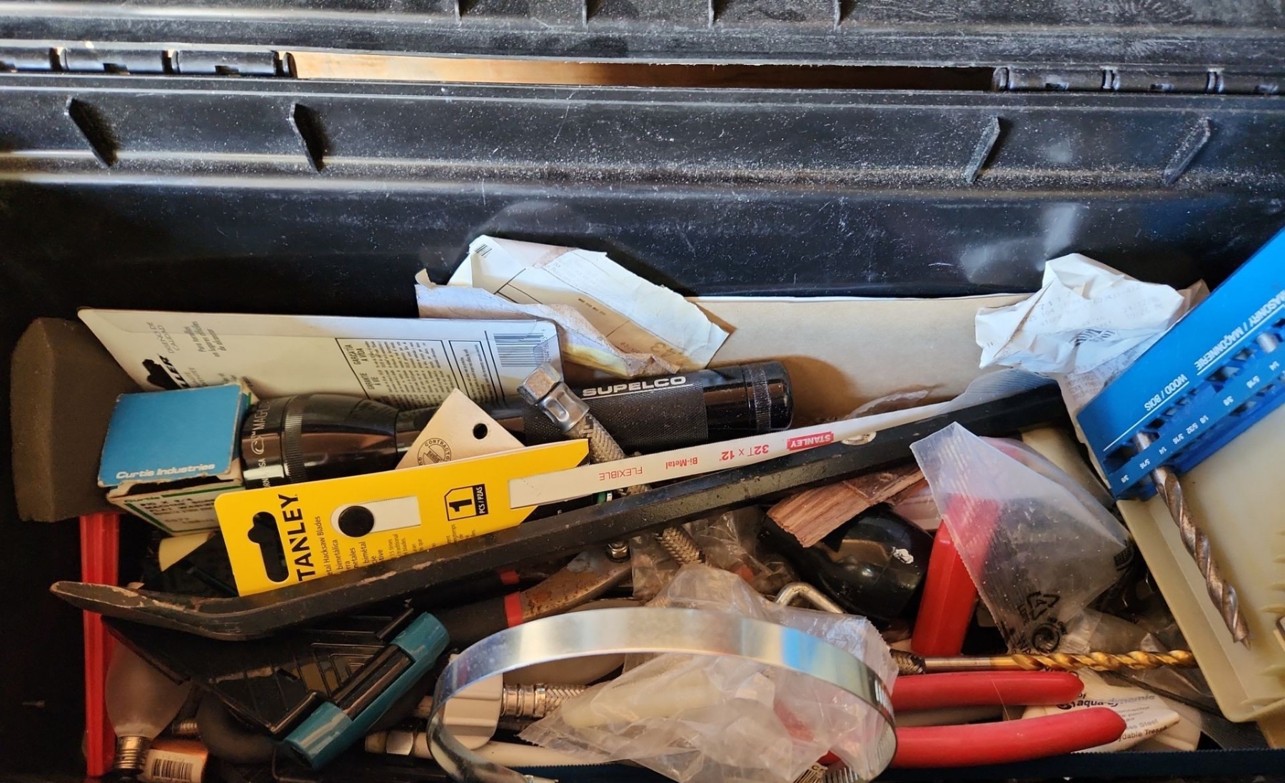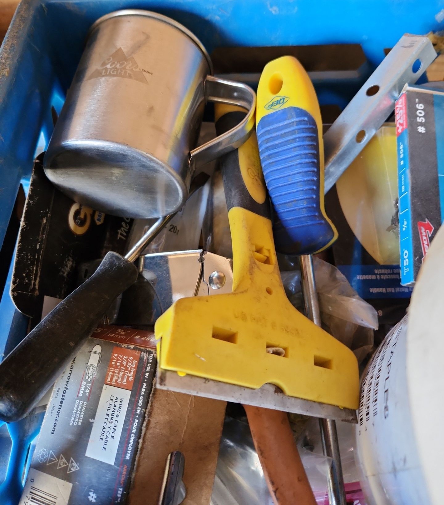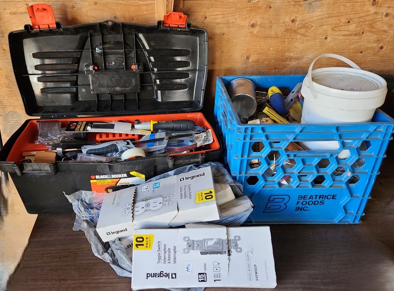 Toolbox 20 W, 9 D, 10 T and Milk Crate w/ Contents