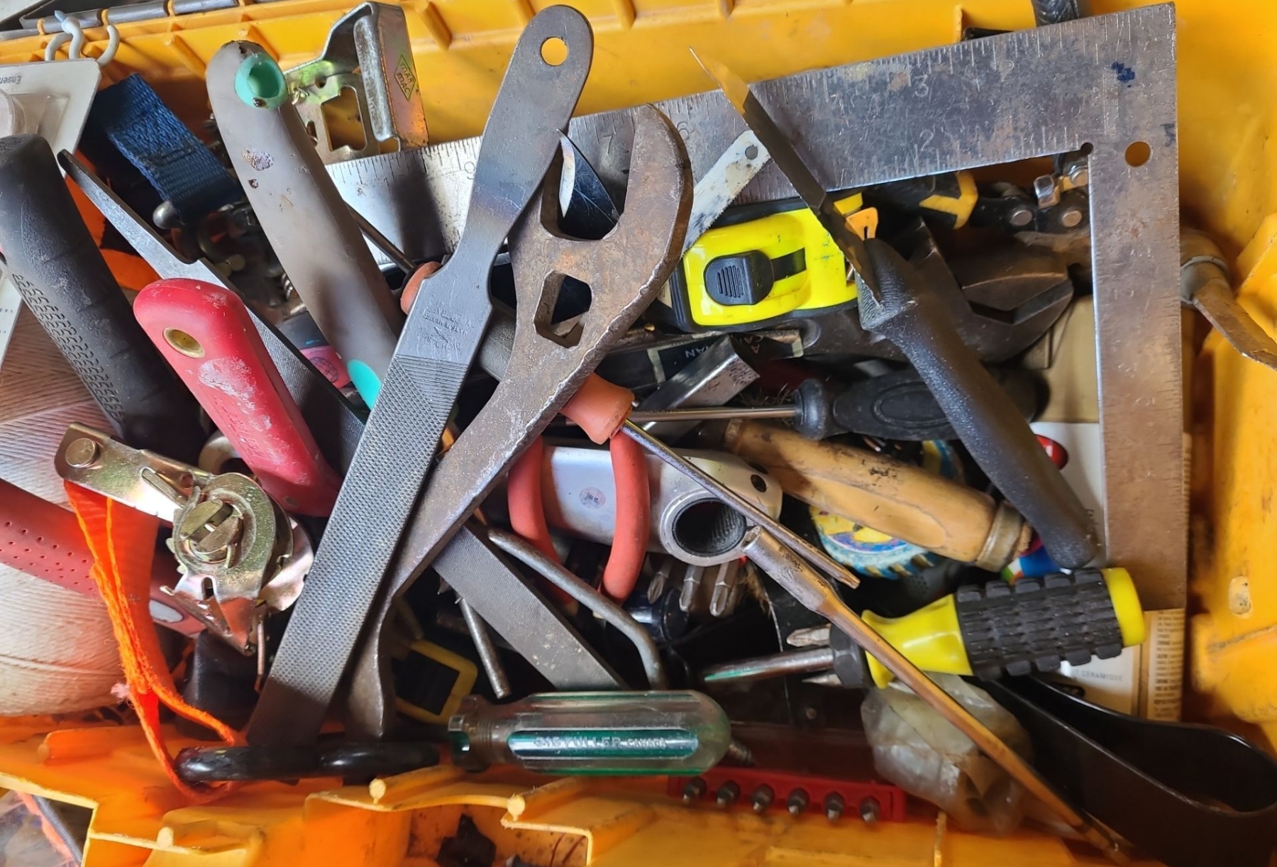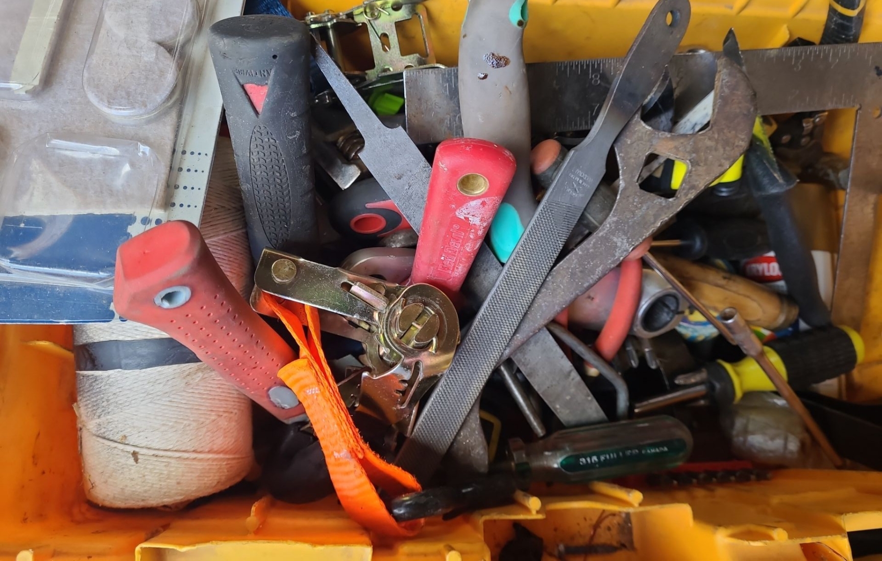 Toolbox 22 W, 12 D, 12 T Full of Hand Tools and Other Garage Items