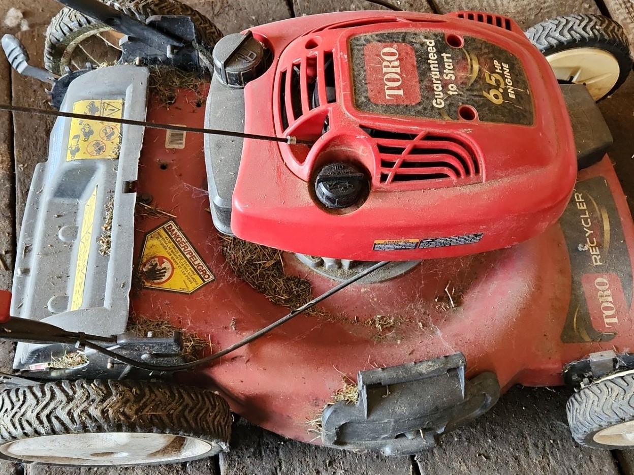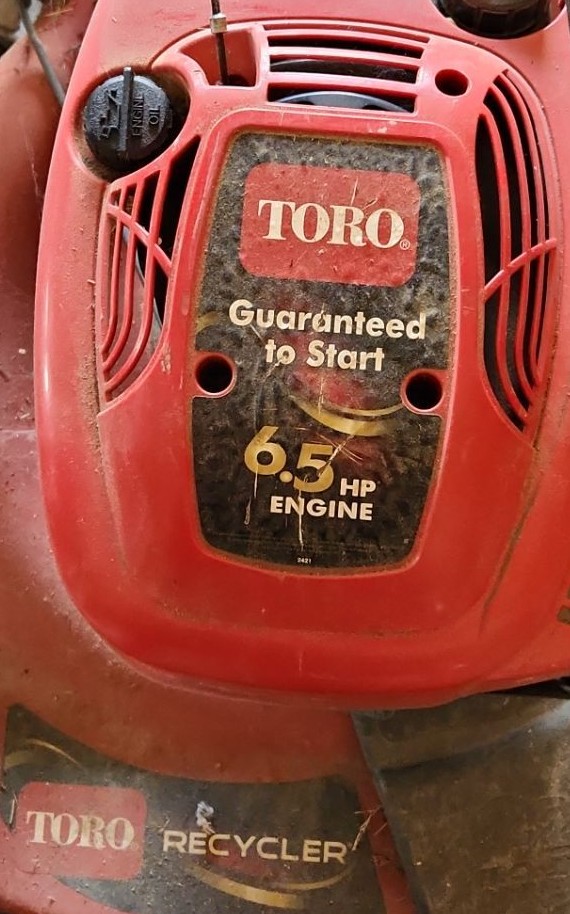 Toro 6.5 HP Engine Lawnmower, Grass Bag Has Some Frays as Shown, Could Not Locate Model Number