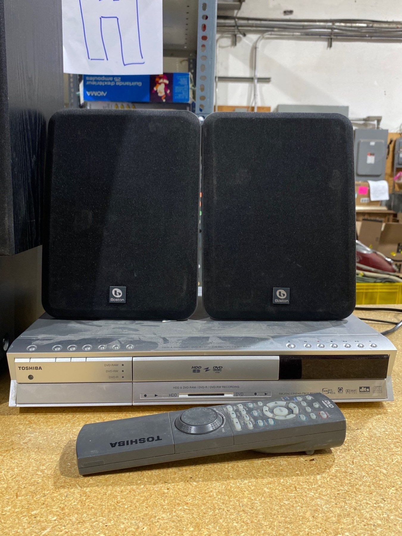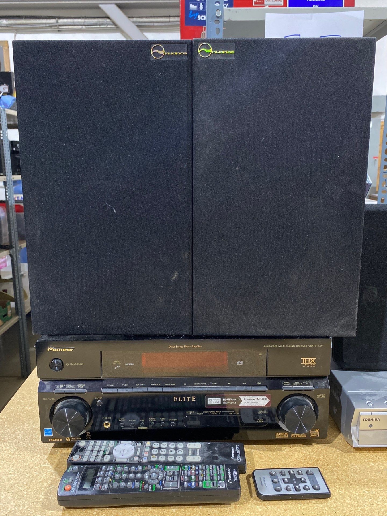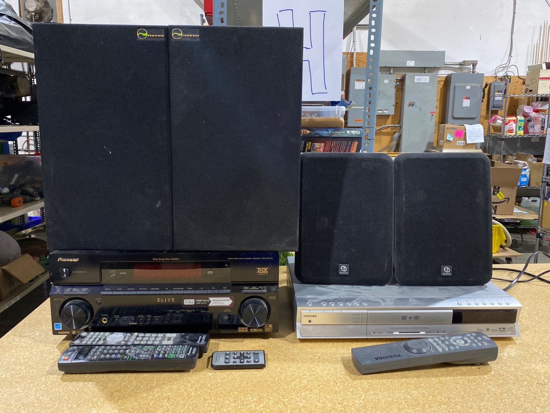 Toshiba DVD Player, Boston Speakers, Pioneer Amp, And Nuance Speakers.