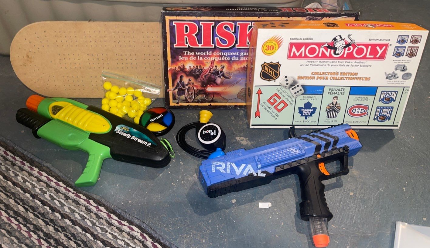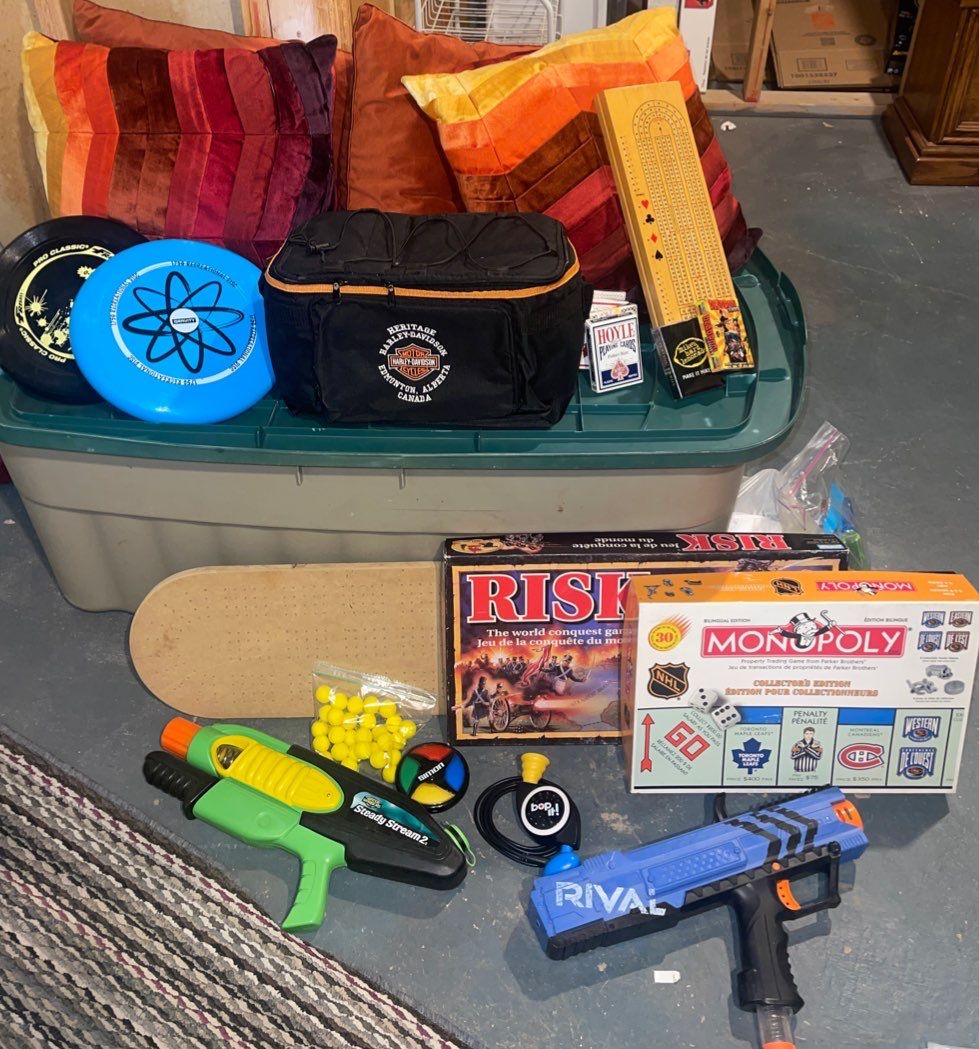 Tote Full Of Games Indoor & Outdoor- Crib, Baseball, Frisbee, & More