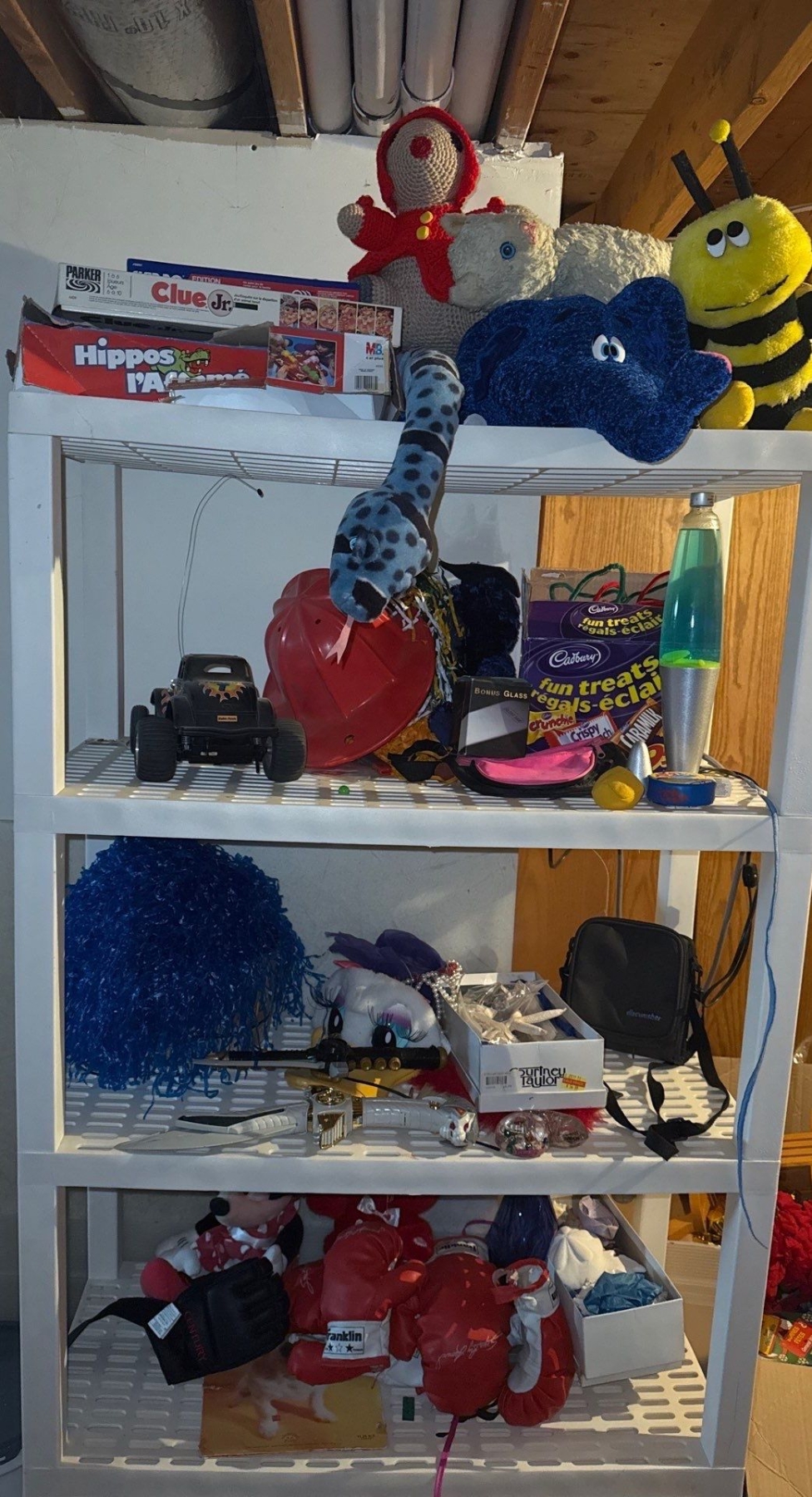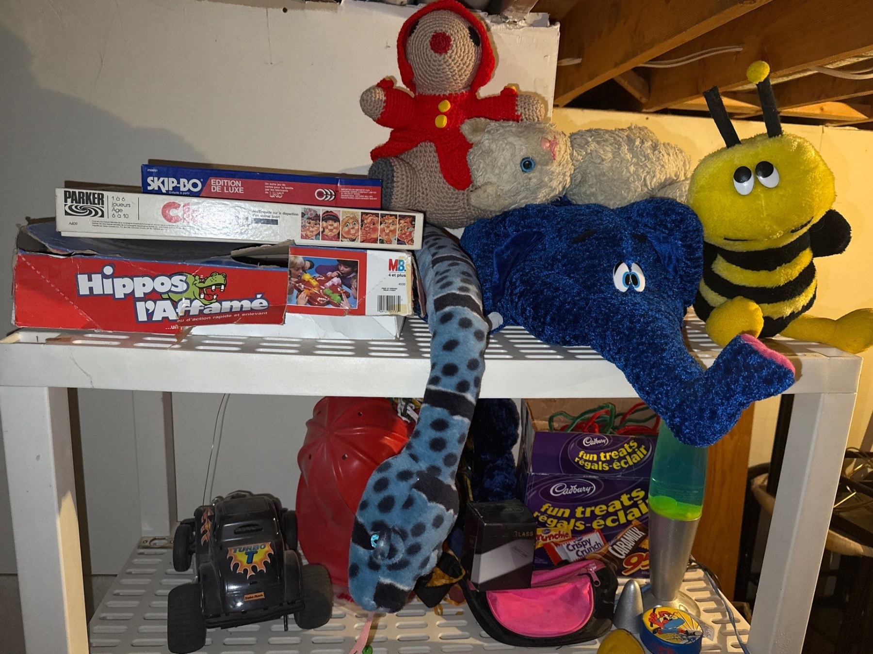 Toy Collection - Clue, Hippos, Toy Truck, Stuffed Animals, Seashells, Shelf (70T)