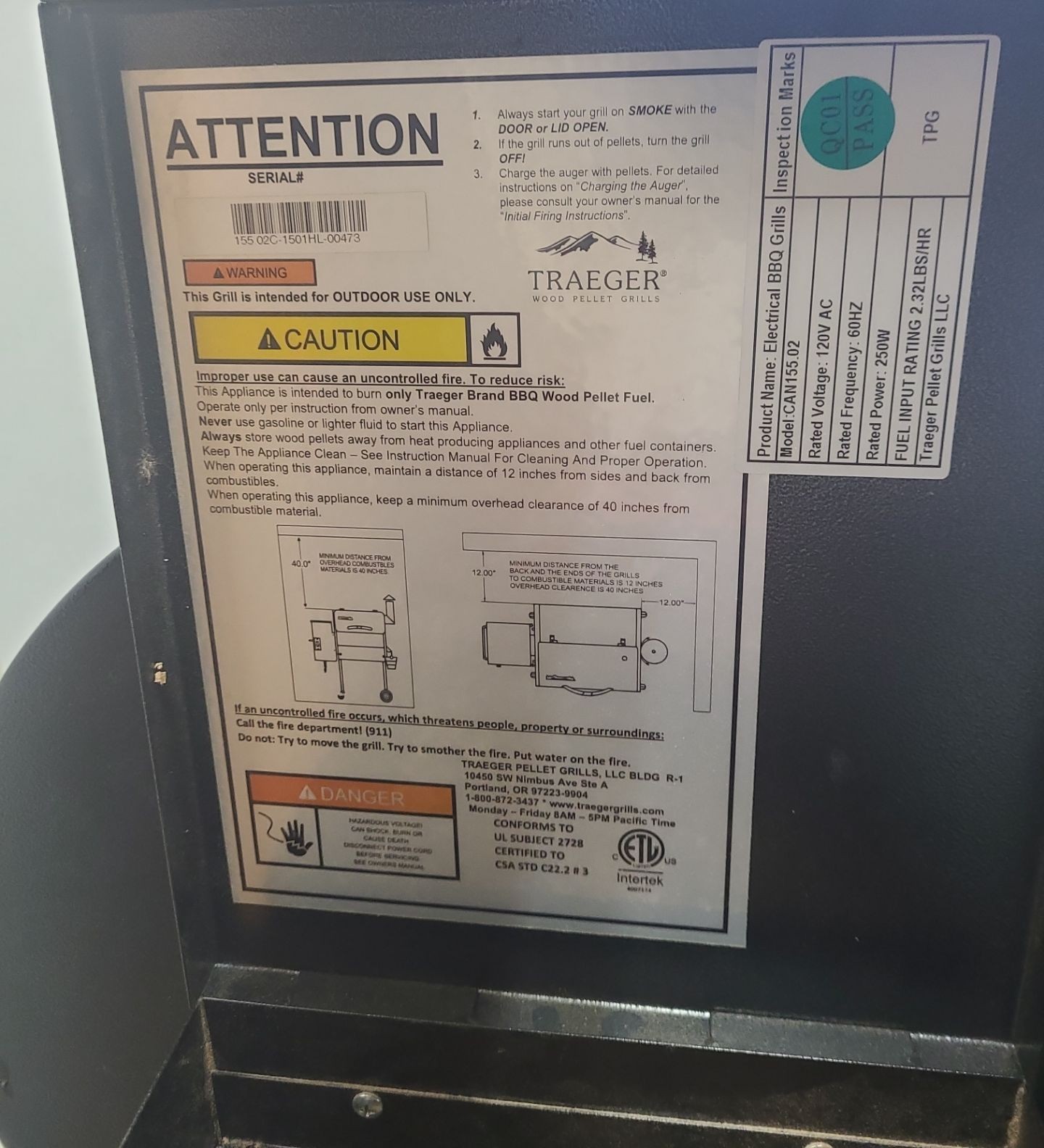 Traeger Wood Pellet Model CAN155-02 Grill 34 W, 18 D, 35 T, Includes Pellets, Cover, Cookbook