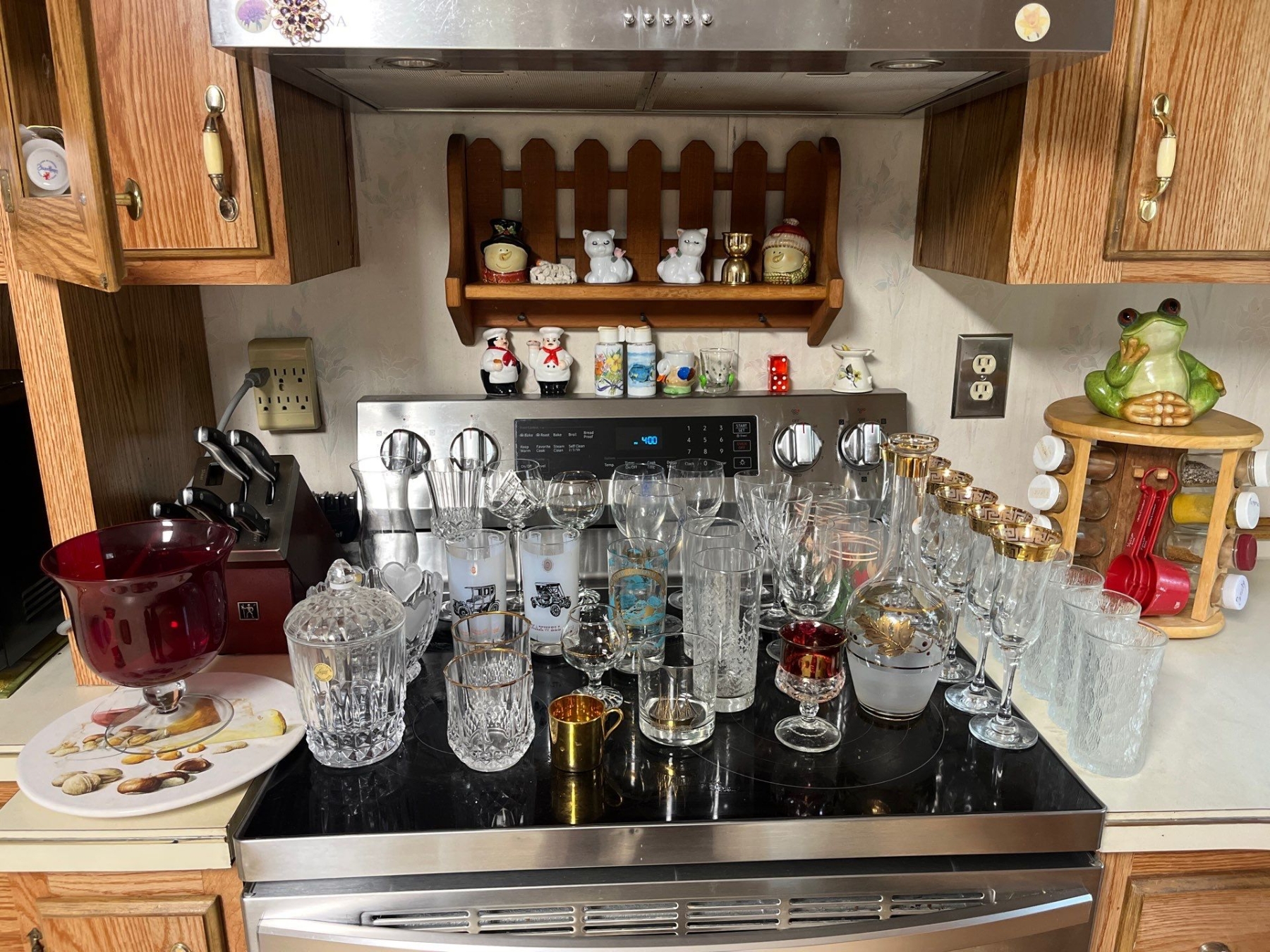 Treasure Hunters . All contents of kitchen selling all together . Crystal China Pyrex, Vintage glasses toaster Dishes Microwave Henckels Knives Corning ware Buyer must bring boxes to pack everything and remove . Amazing selection great selection .