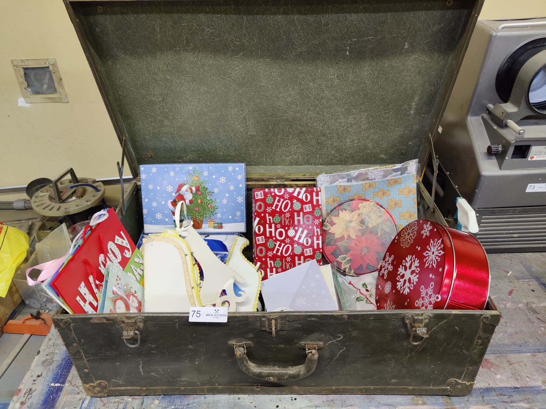 Trunk full of Christmas Gift Boxes and Tins
