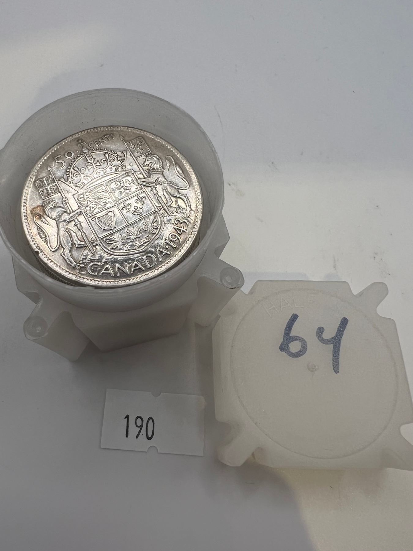Tube of Canadian Silver 50 Cent Pieces