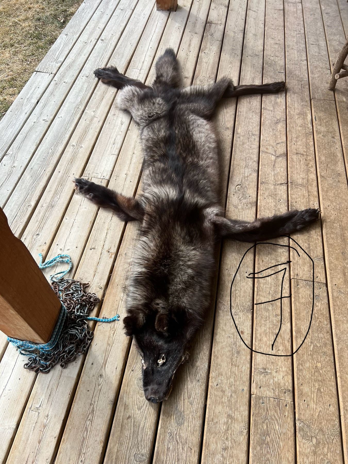 Tubed out Black and silver Wolf ready for a full mount Nose to tail 84" Width 42"