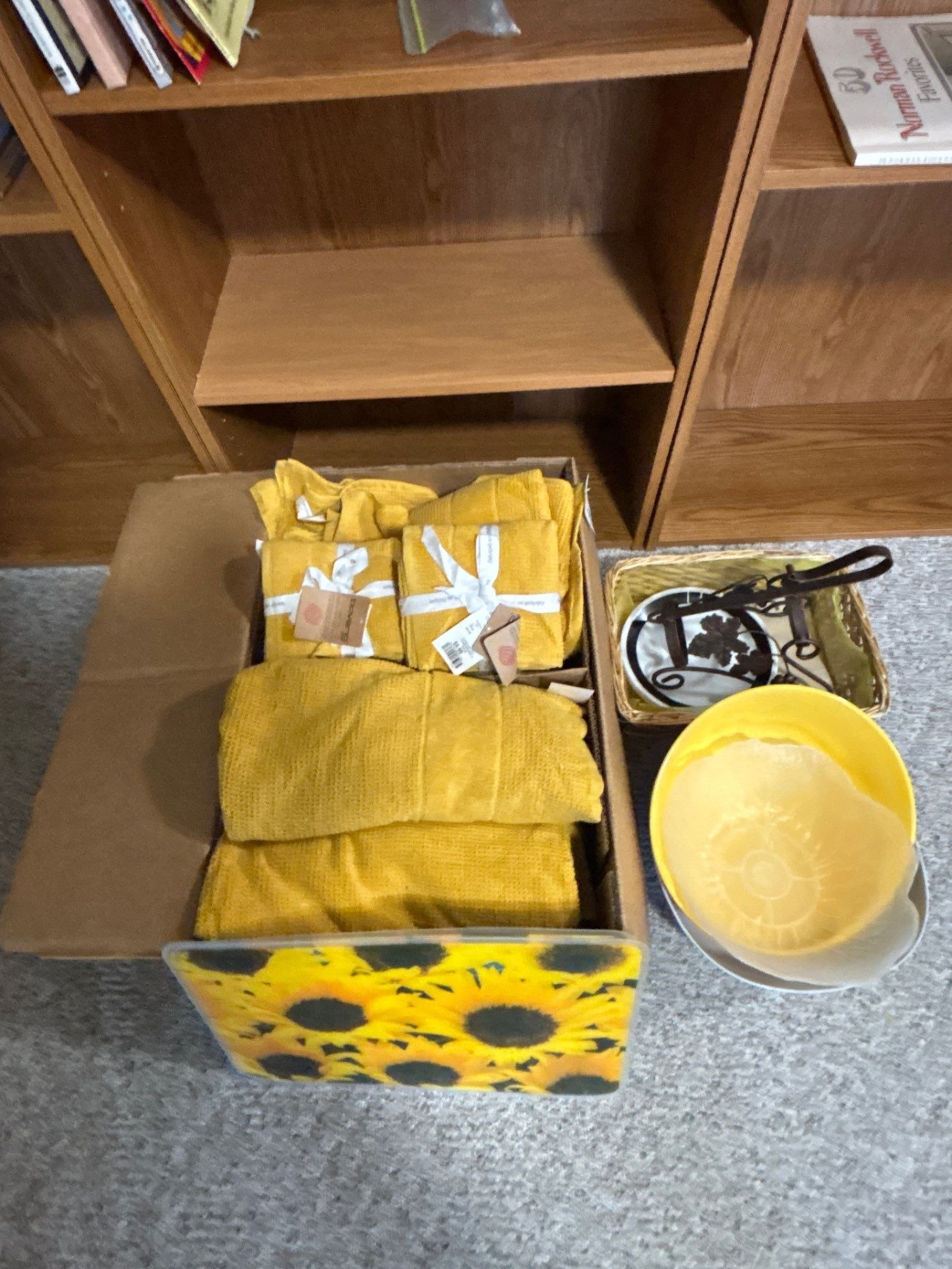 Turkish Yellow Cotton Towel 6Wash clothes 8 & hand Clothes 6 With SunFlower place mats & Yellow Bowls