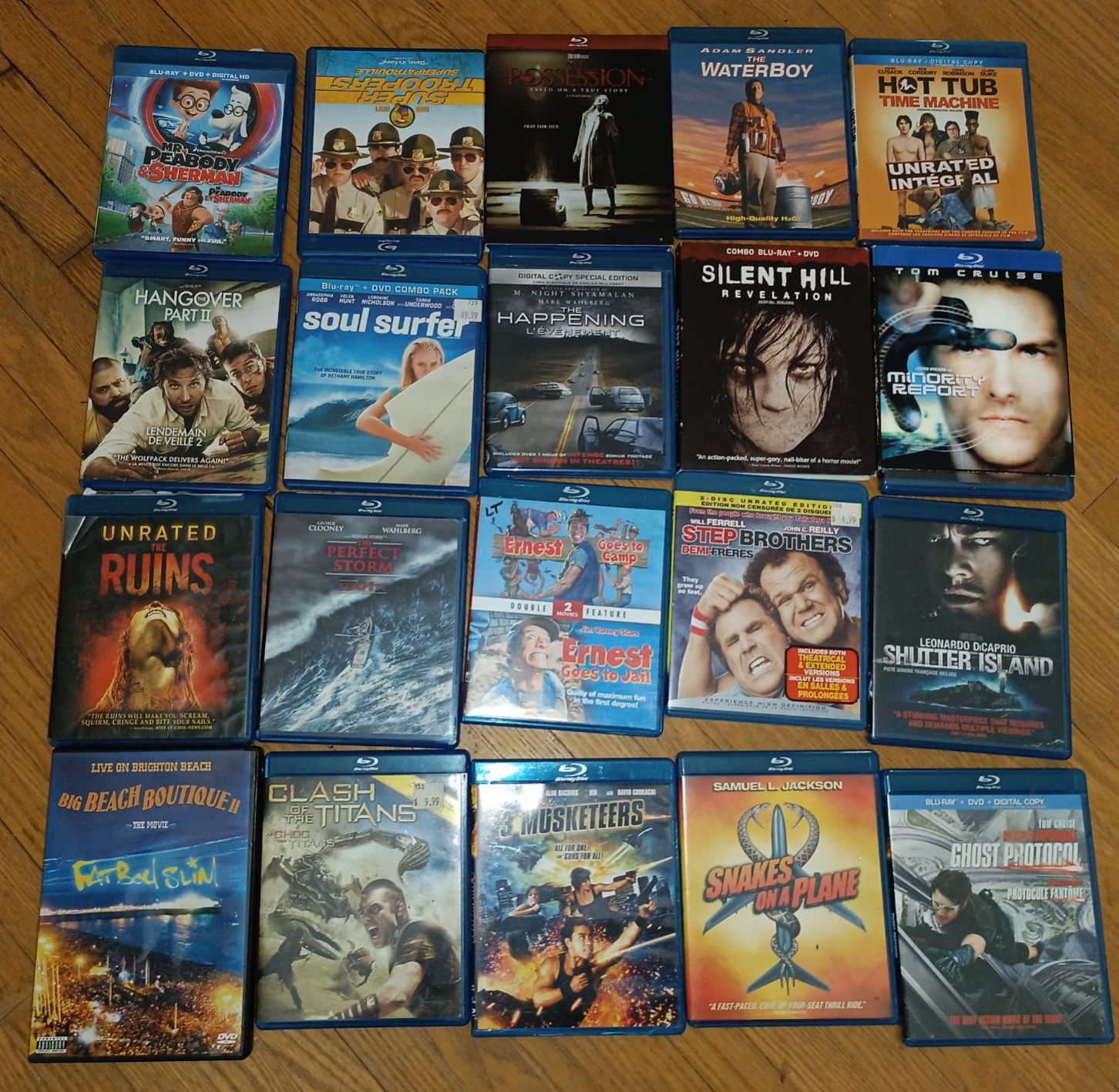 Twenty Assoted Blu-Ray Discs in Cases The Perfect Storm, Clash of the Titans, 3 Musketeers, Ernest Goes to Jail, Silent Hill, Stepbrothers, Shutter Island & More