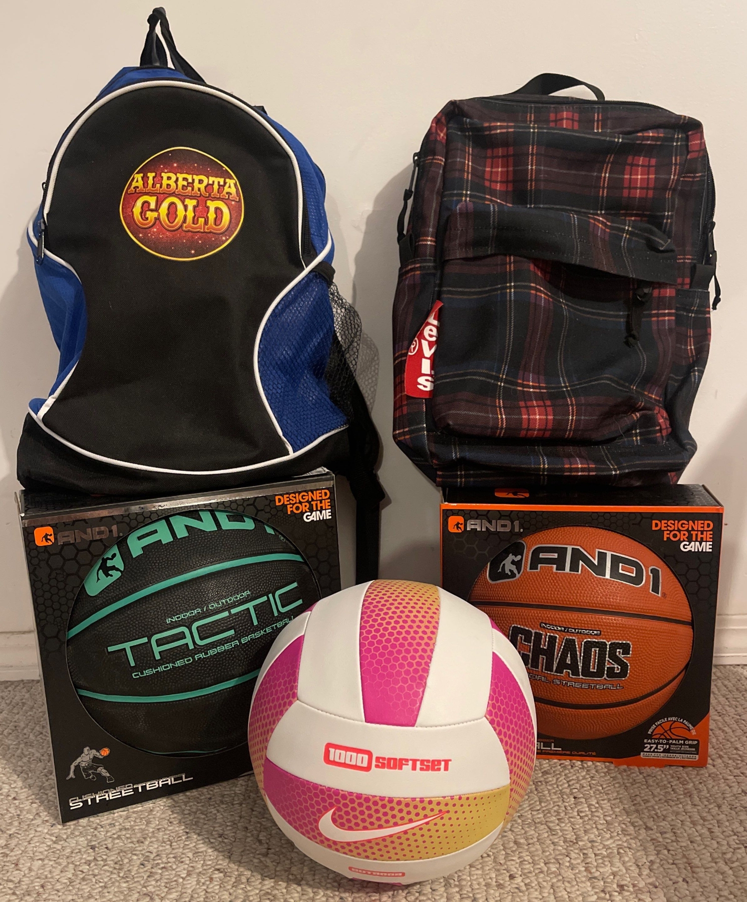Two AND1 StreetBall/ BasketBalls w/ Nike Soft Set Volley Ball 2 backpacks too