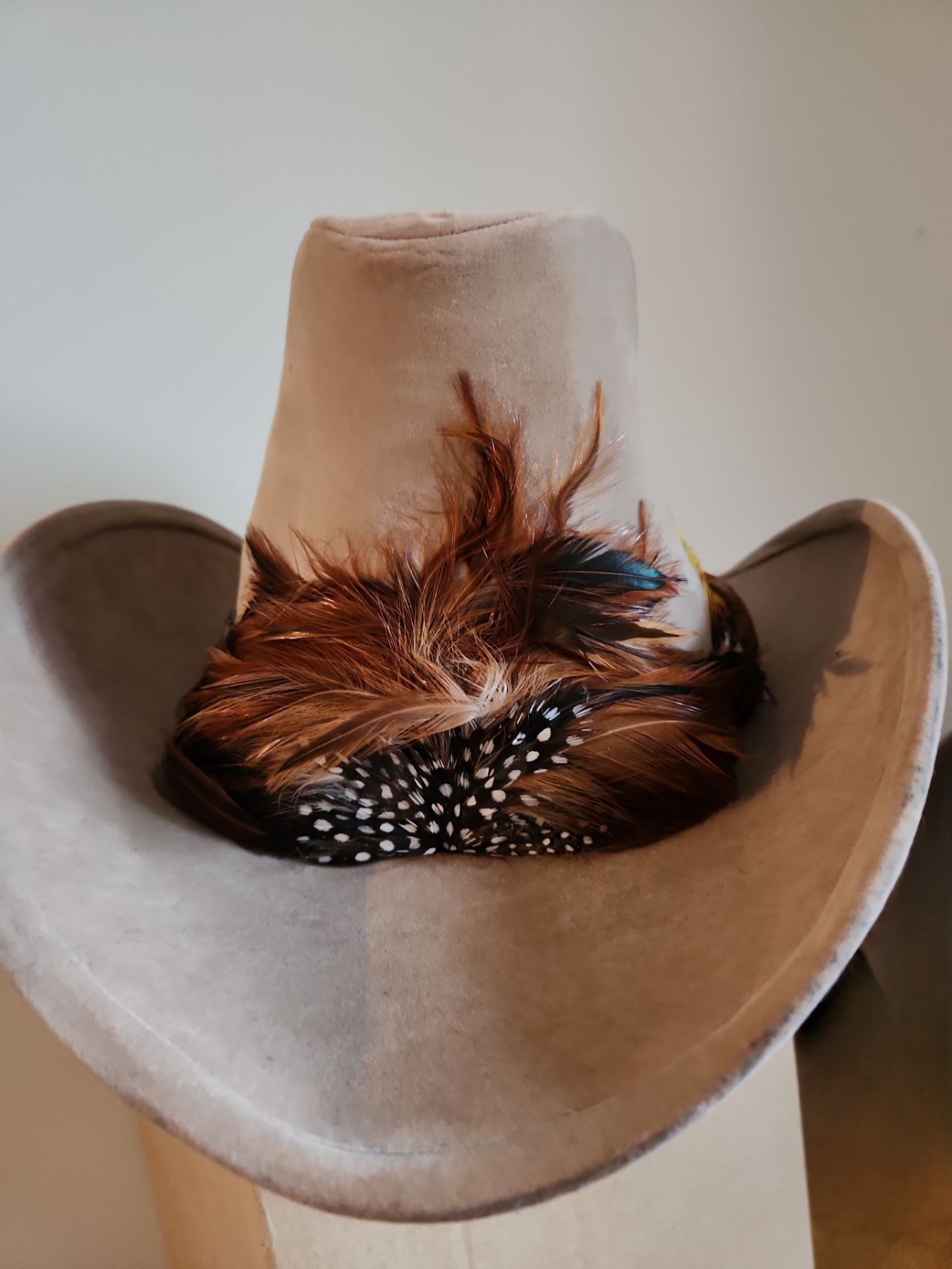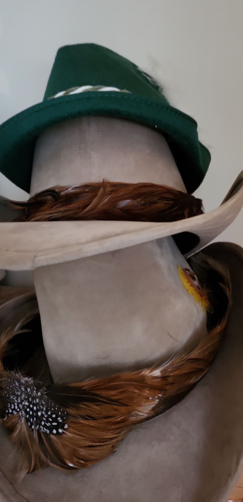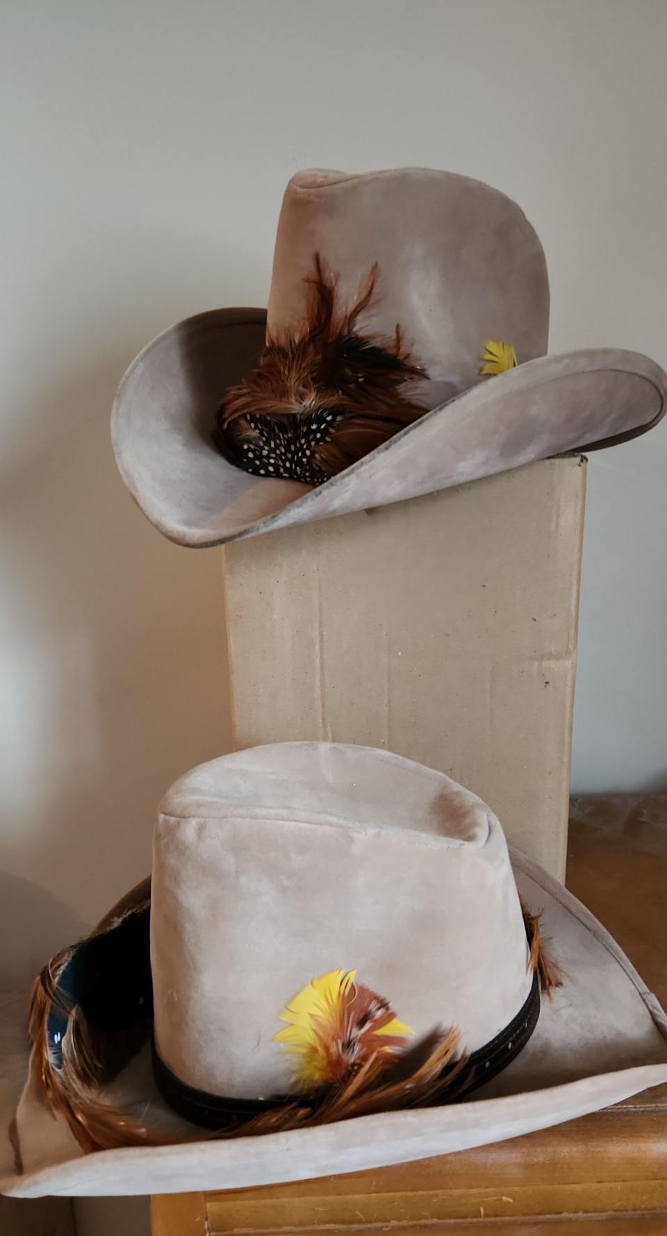 Two Bailey Cowboy Hats, Sizes 7 and 6 3/4 (Feathers on Size 7 Need to be Reattached), German Hat