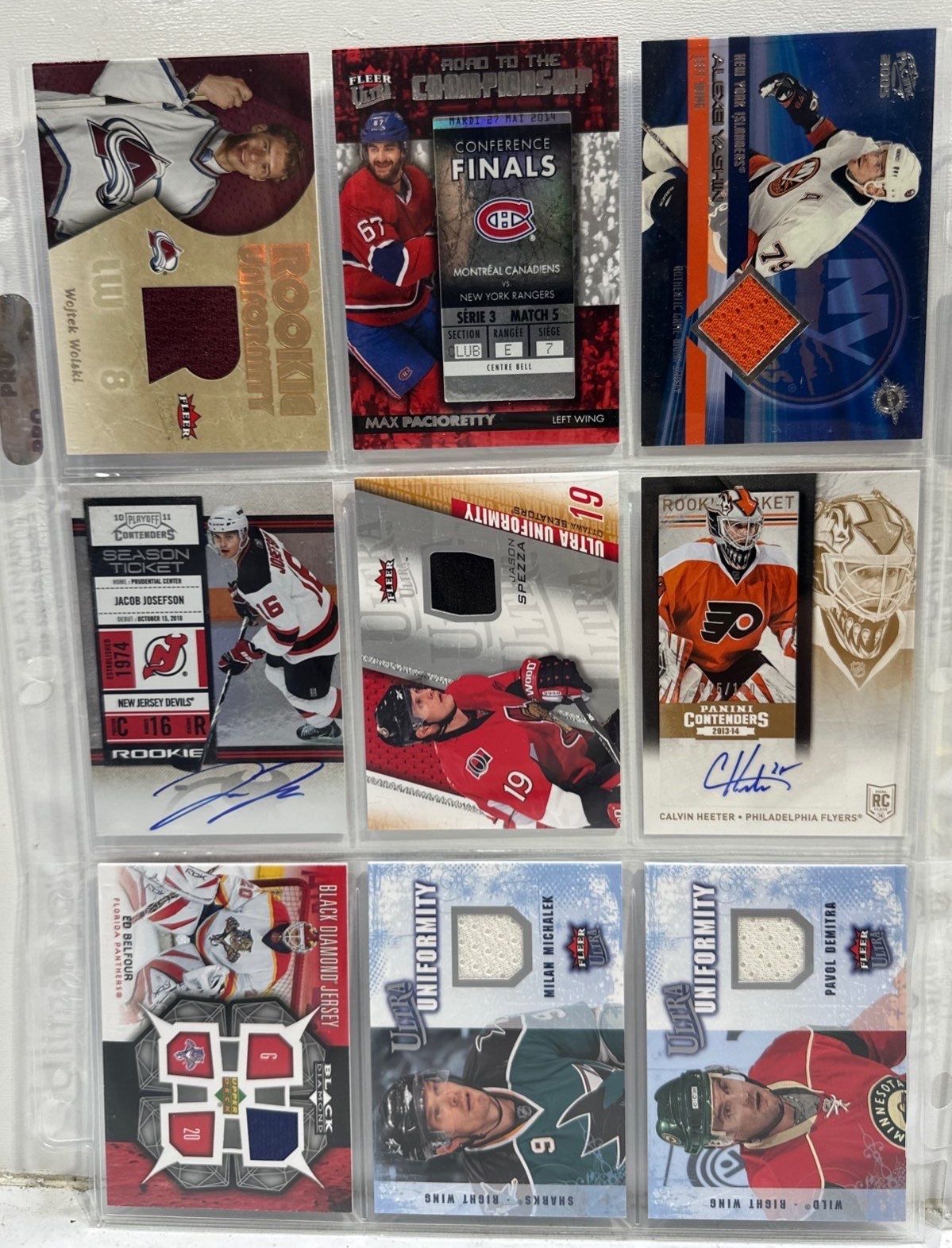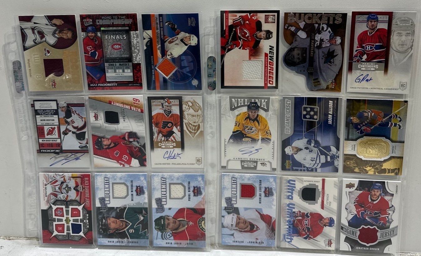Two Binder Pages of Hockey Memorabilia Collector Cards