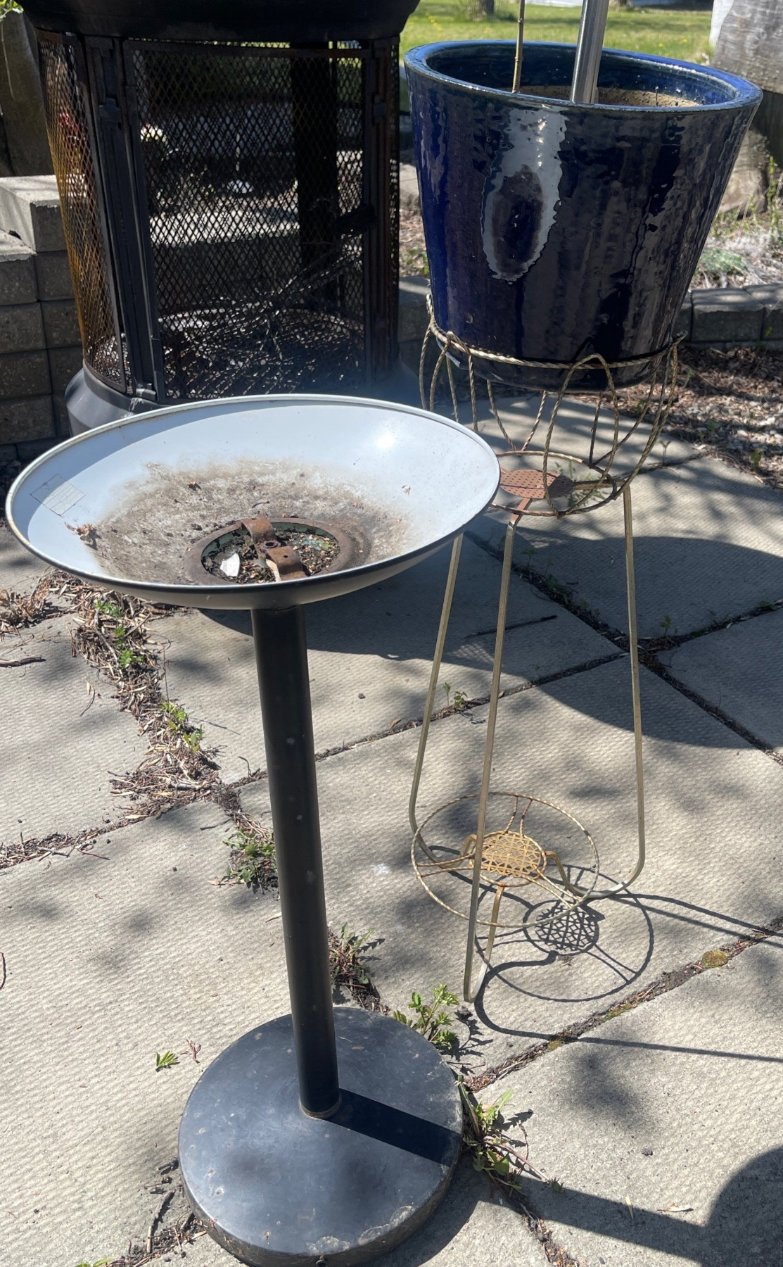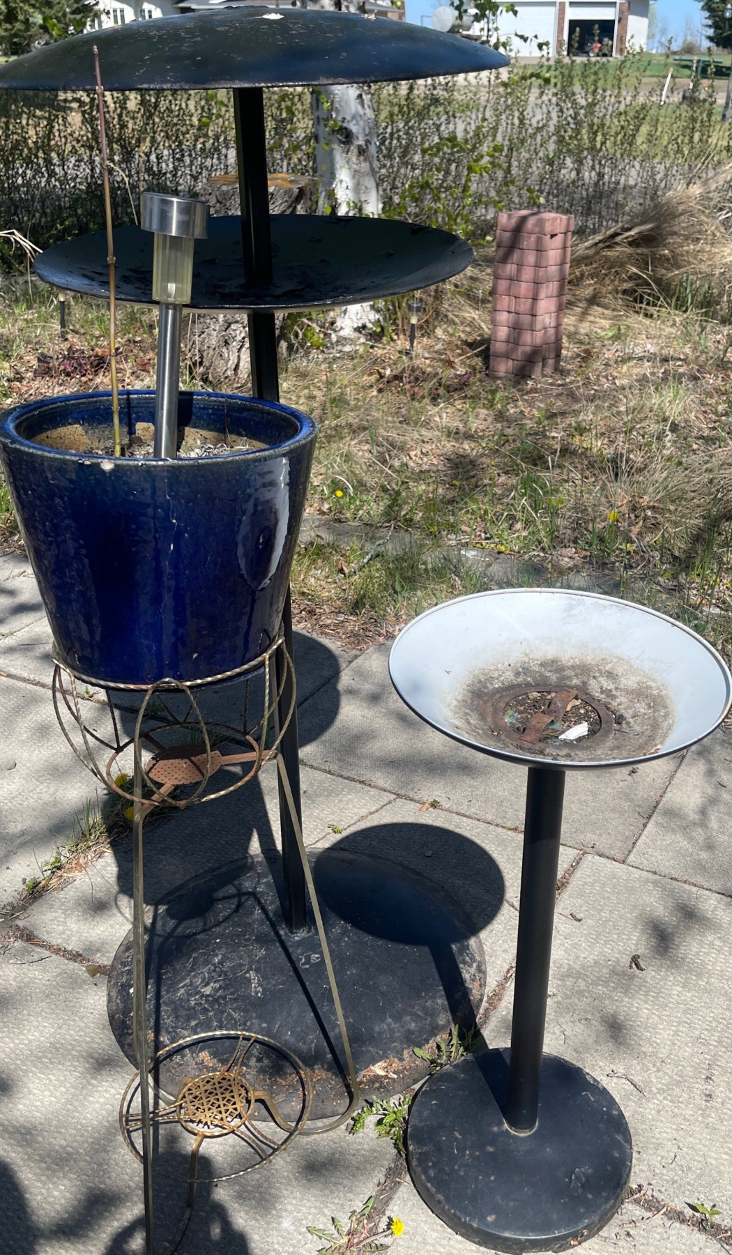 Two Bird Bath Like Structures w/ planter & stand 68"tallestr