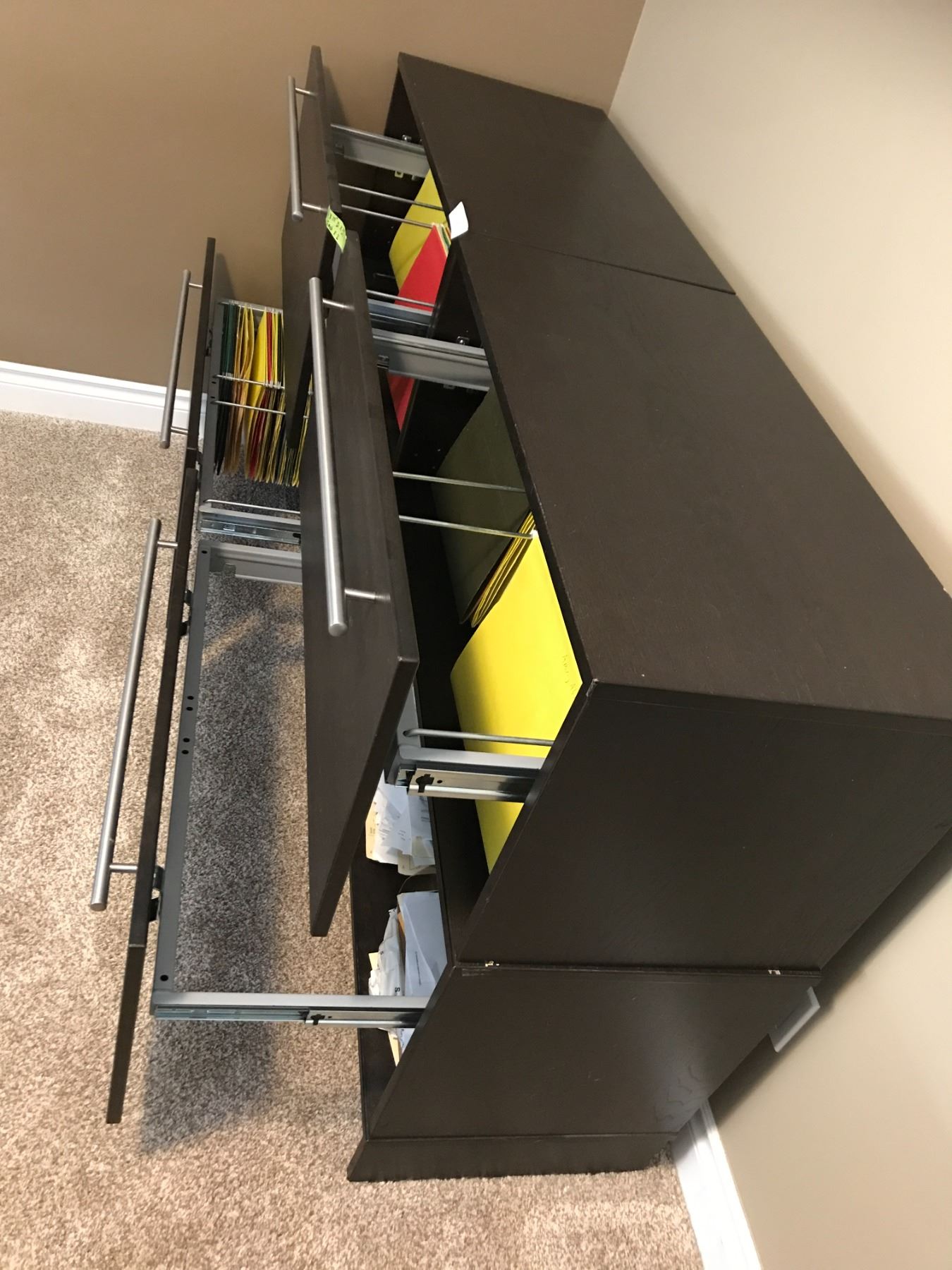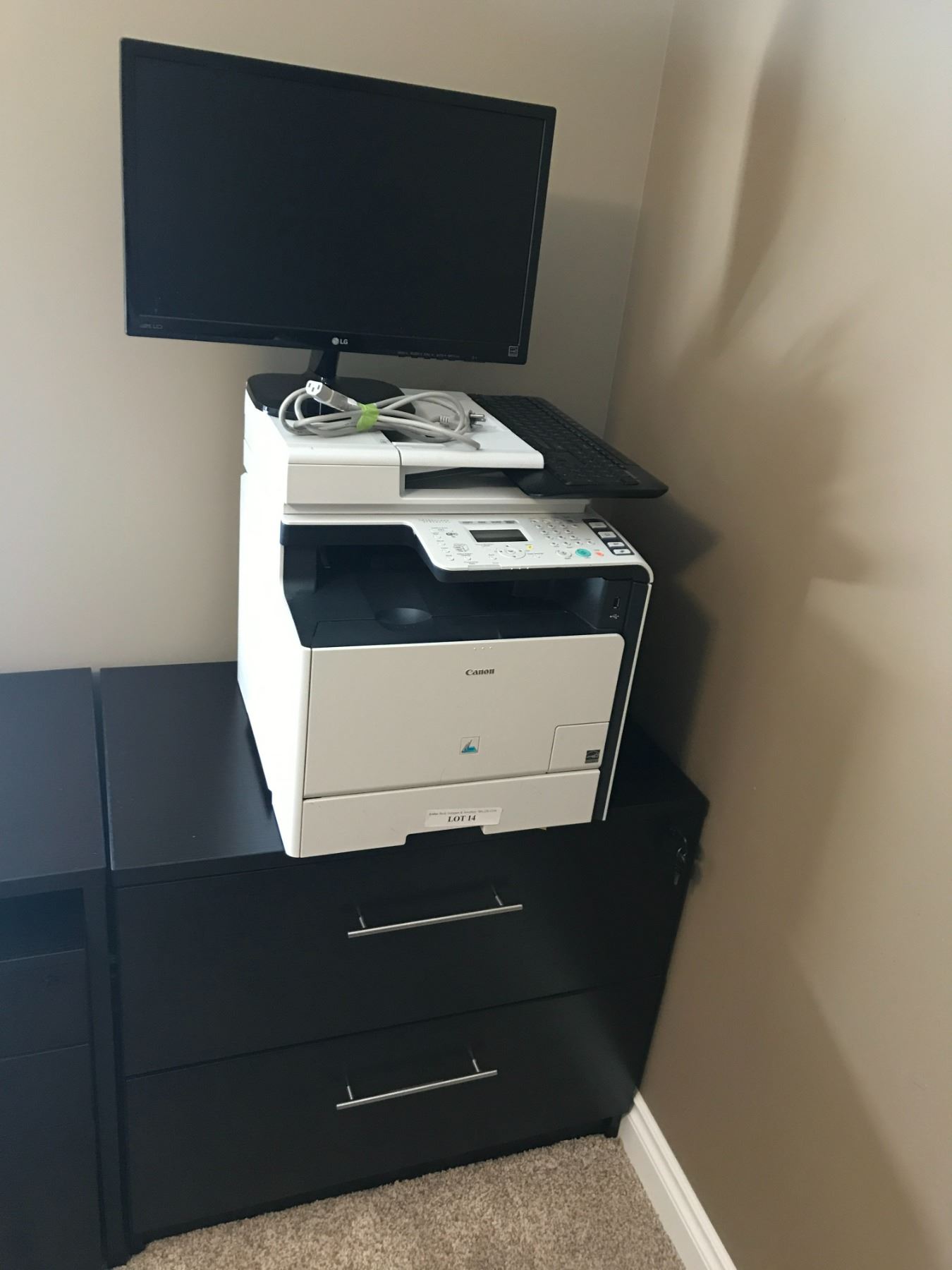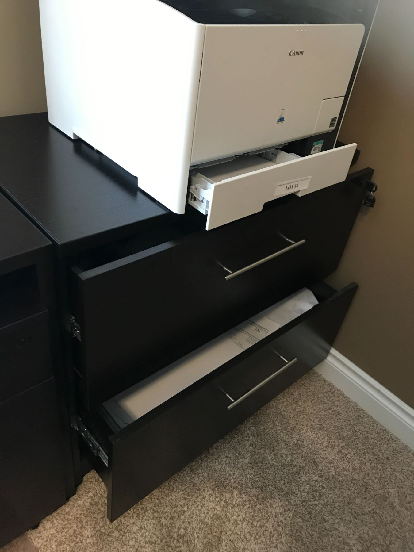 Two Black Wood Filing Cabinets & Canon Color Imageclass Photocopier